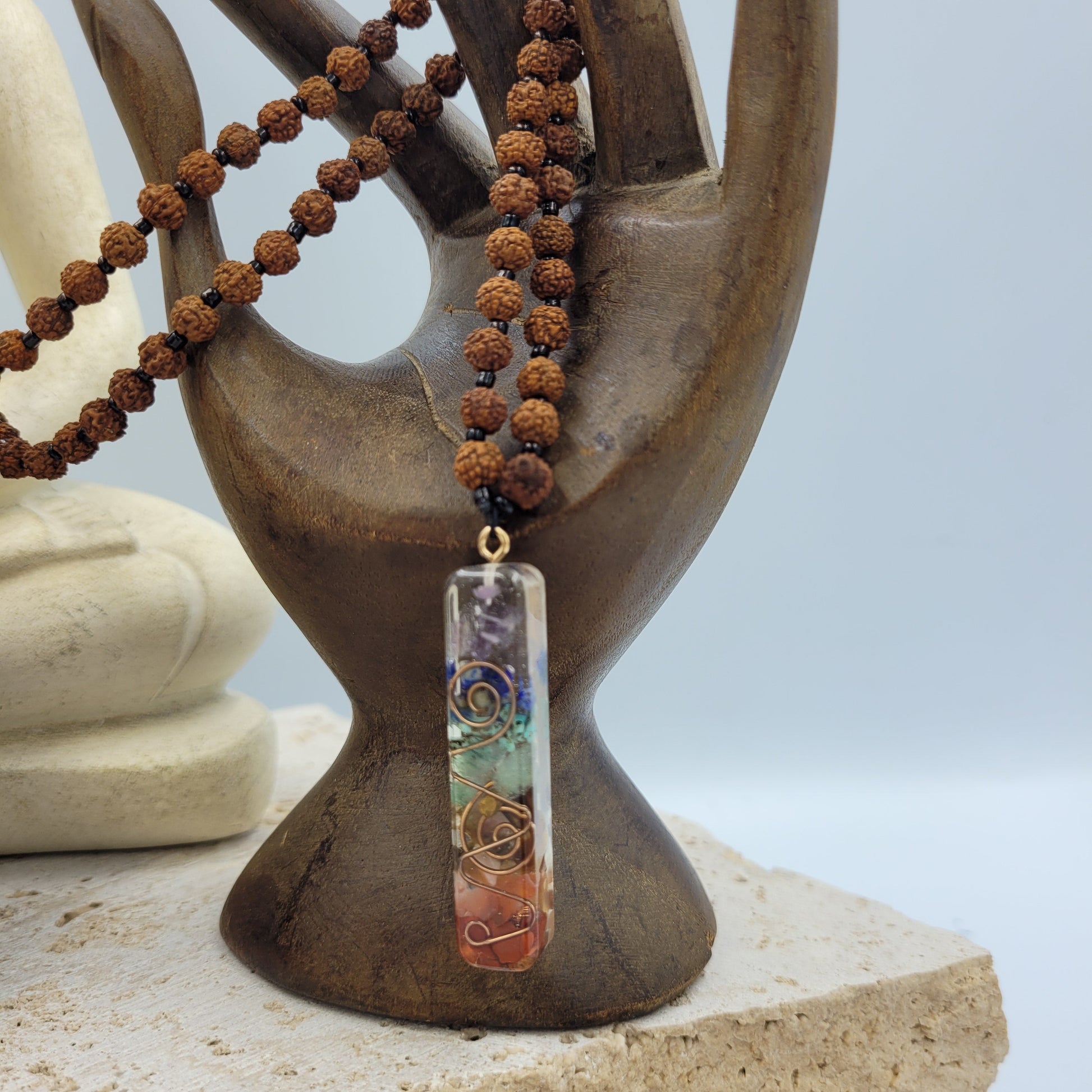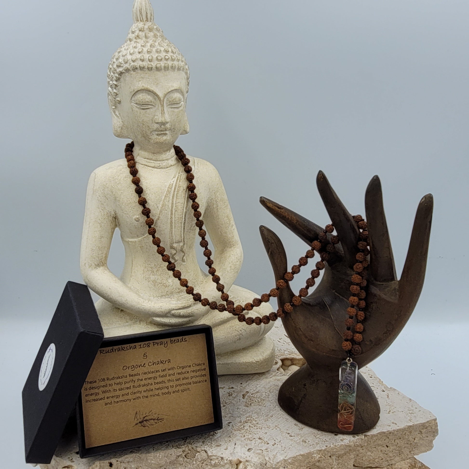 108 Rudraksha Prey Beads/Long Orgone Chakra Necklace