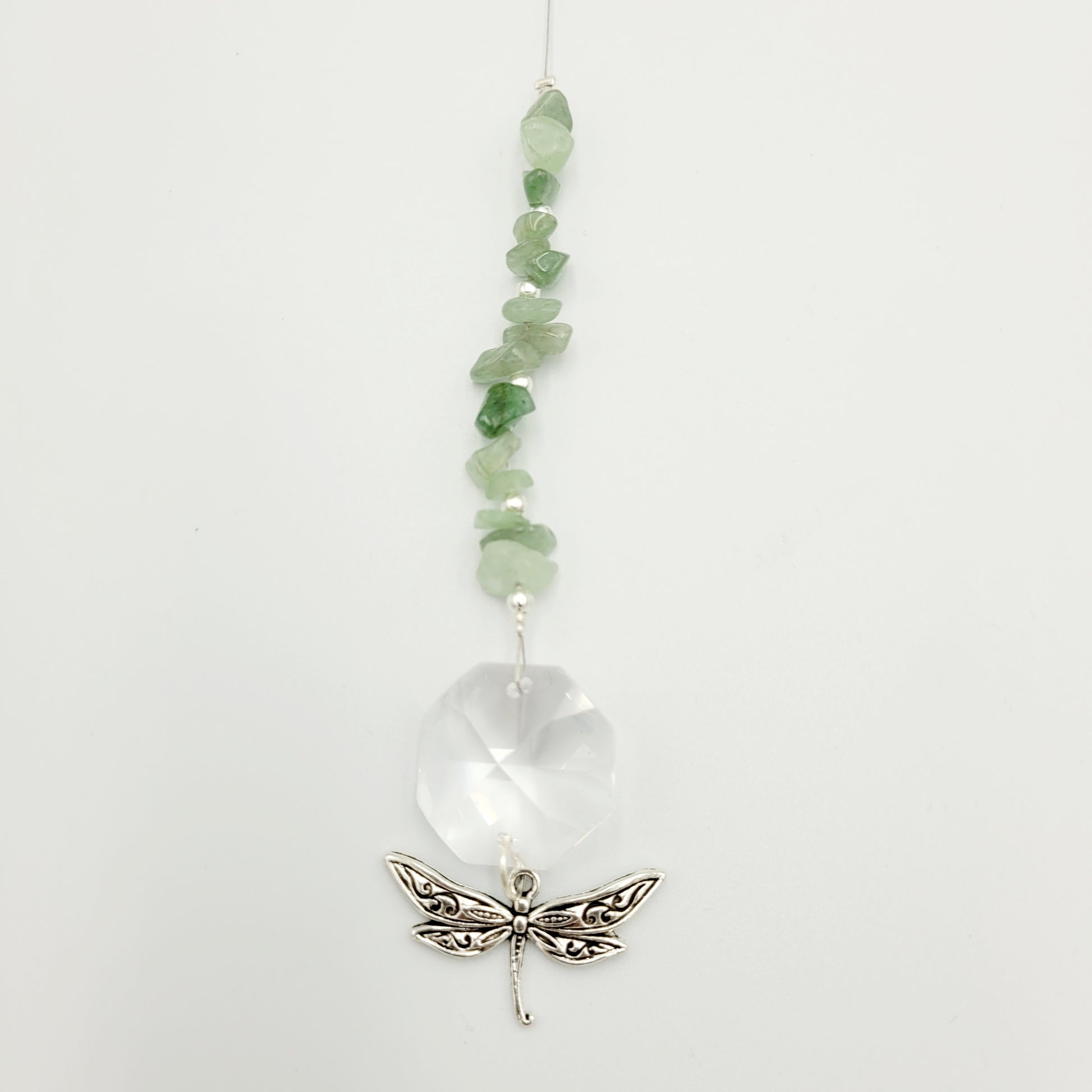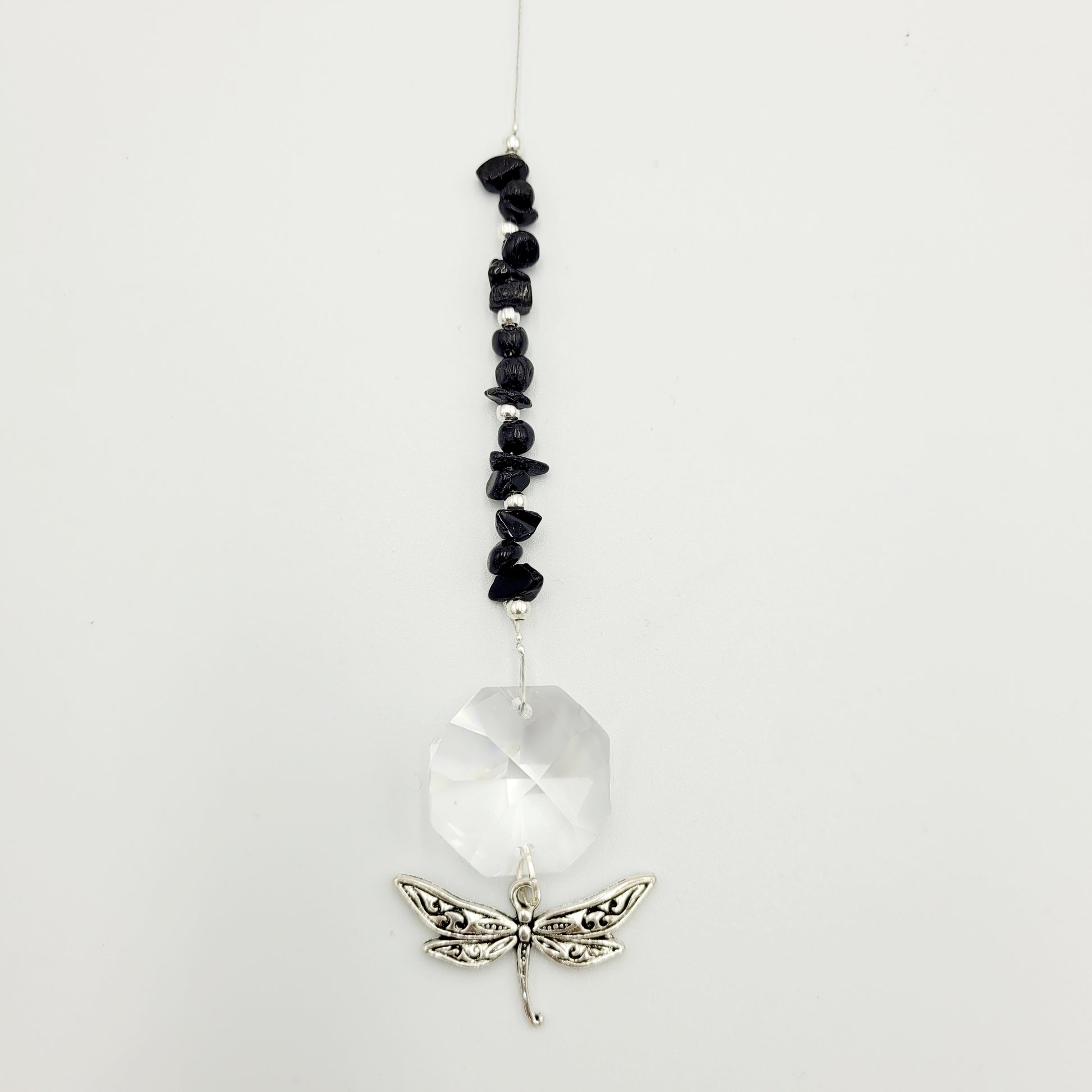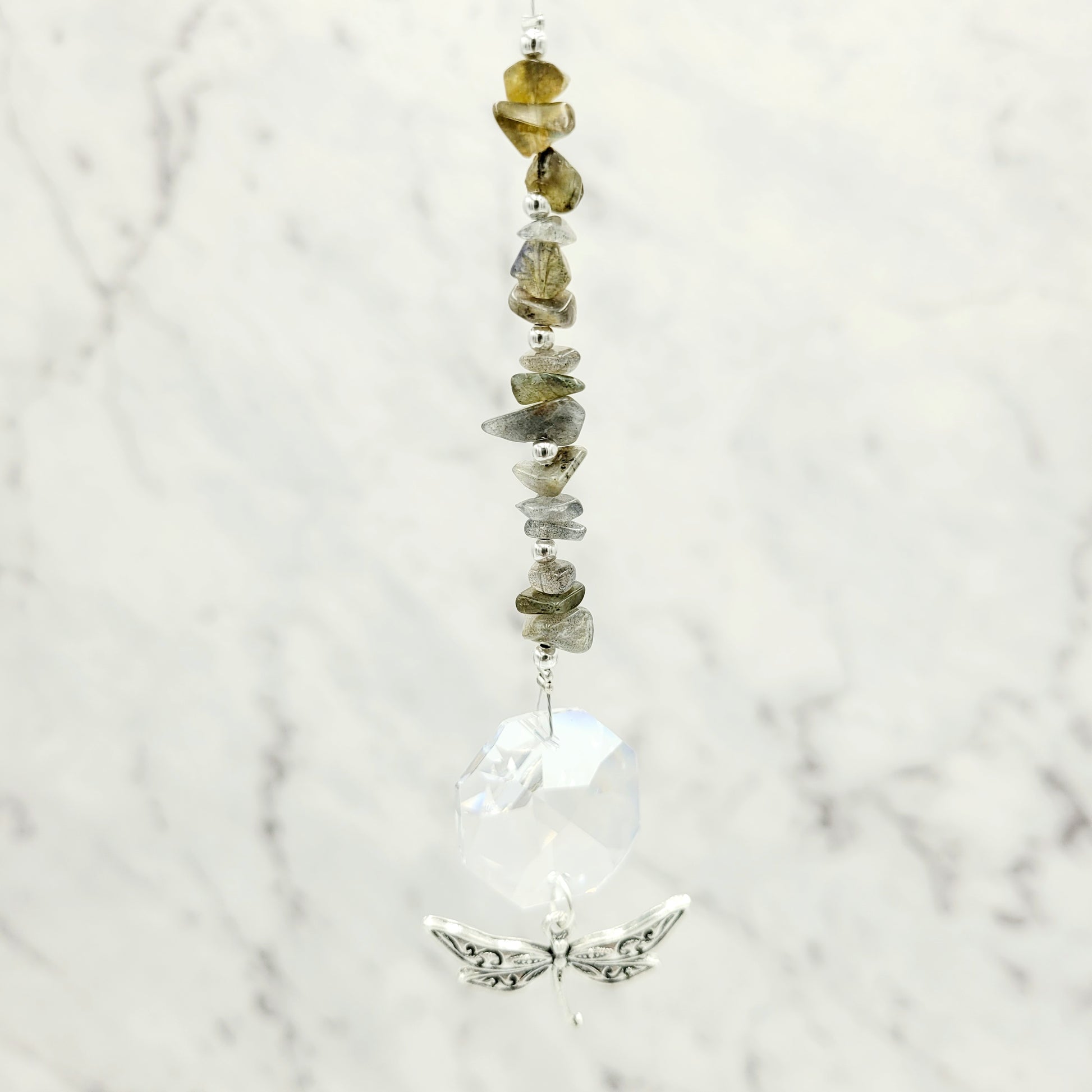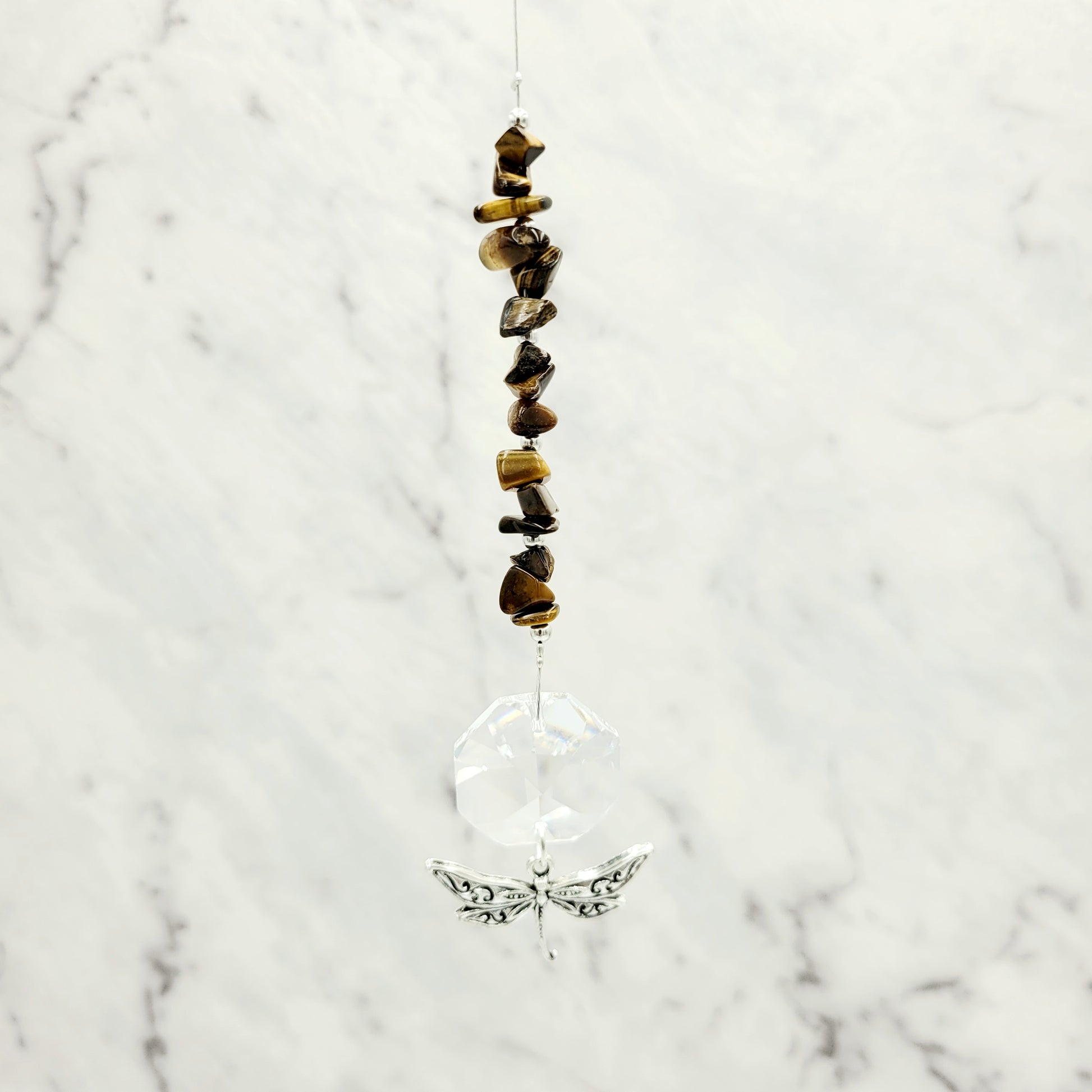 Bring transformation, adaptability, and self-realization to your home with our Dragonfly Octagonal Crystal Charm Suncatcher. Hang this beautiful piece of craftsmanship inside or outdoors and select your favorite stones for your desired purpose. Made with a large teardrop crystal, enjoy its beauty today!