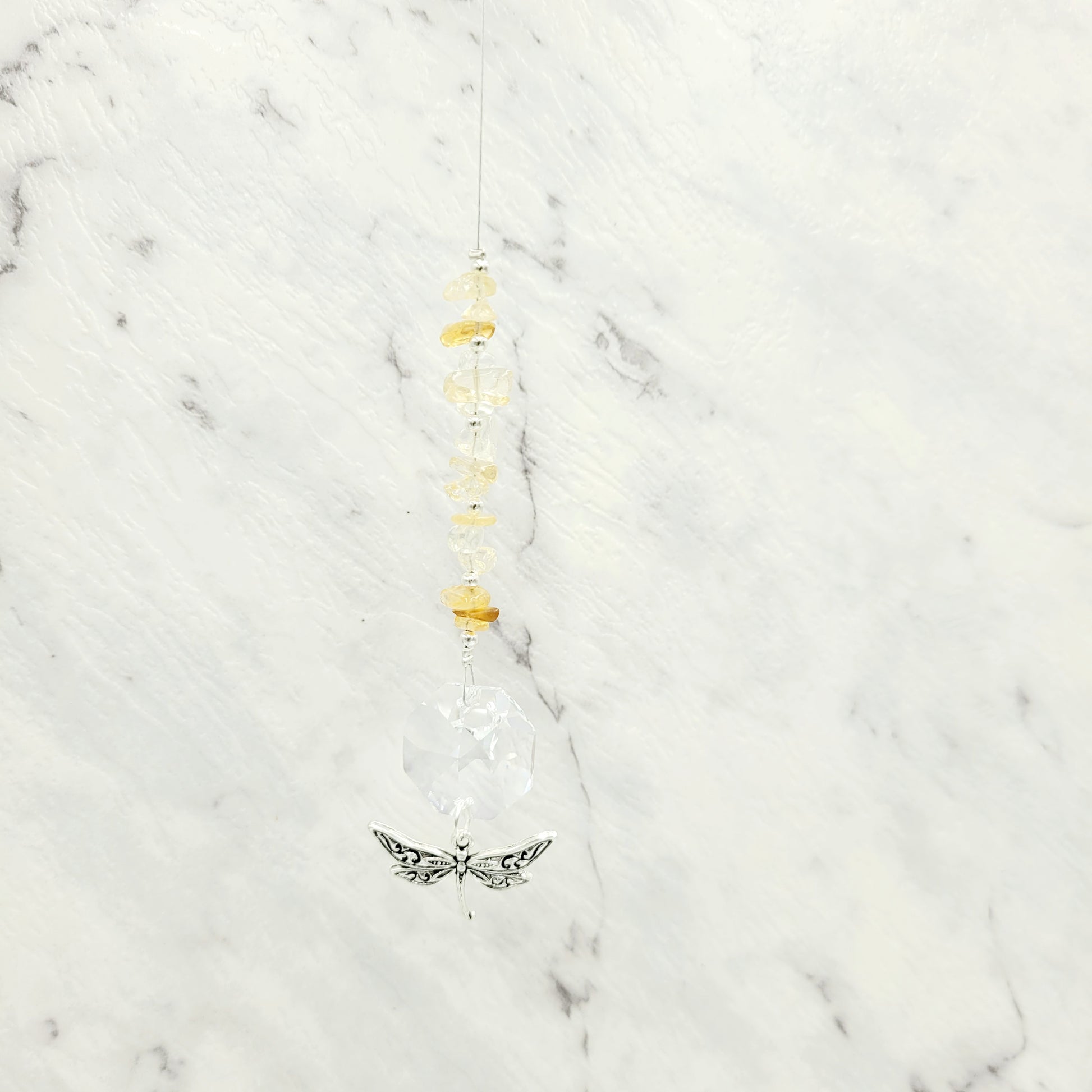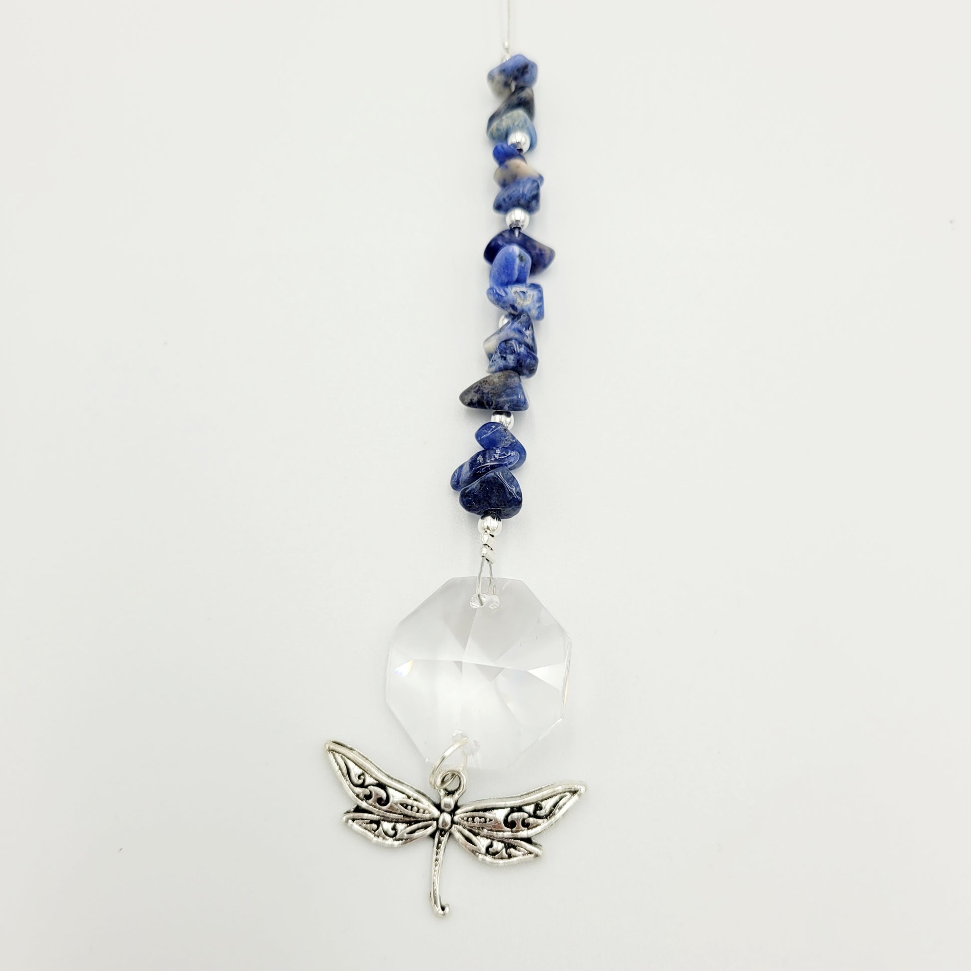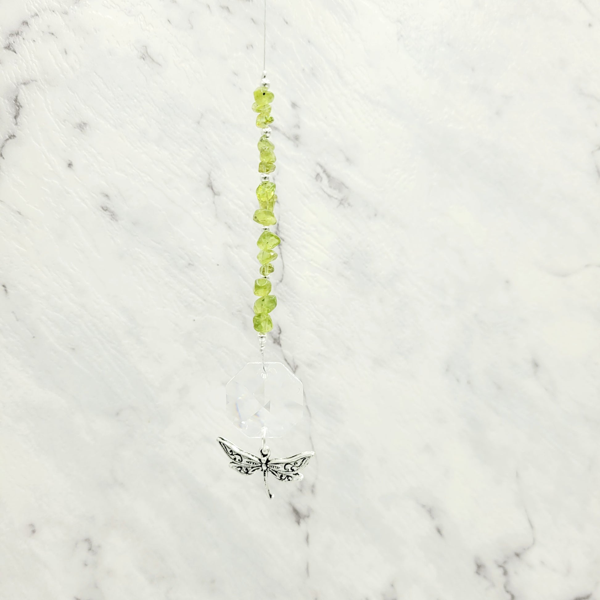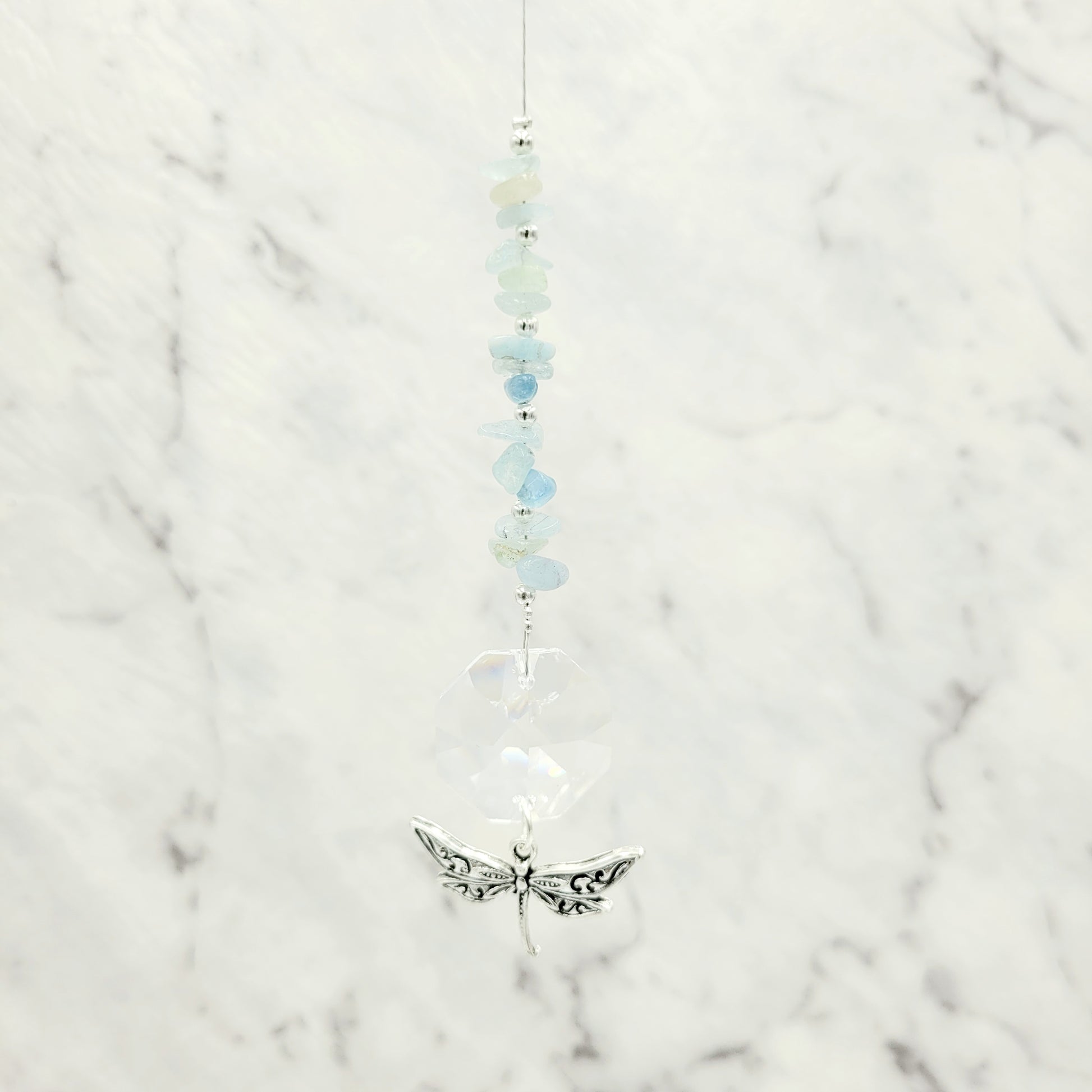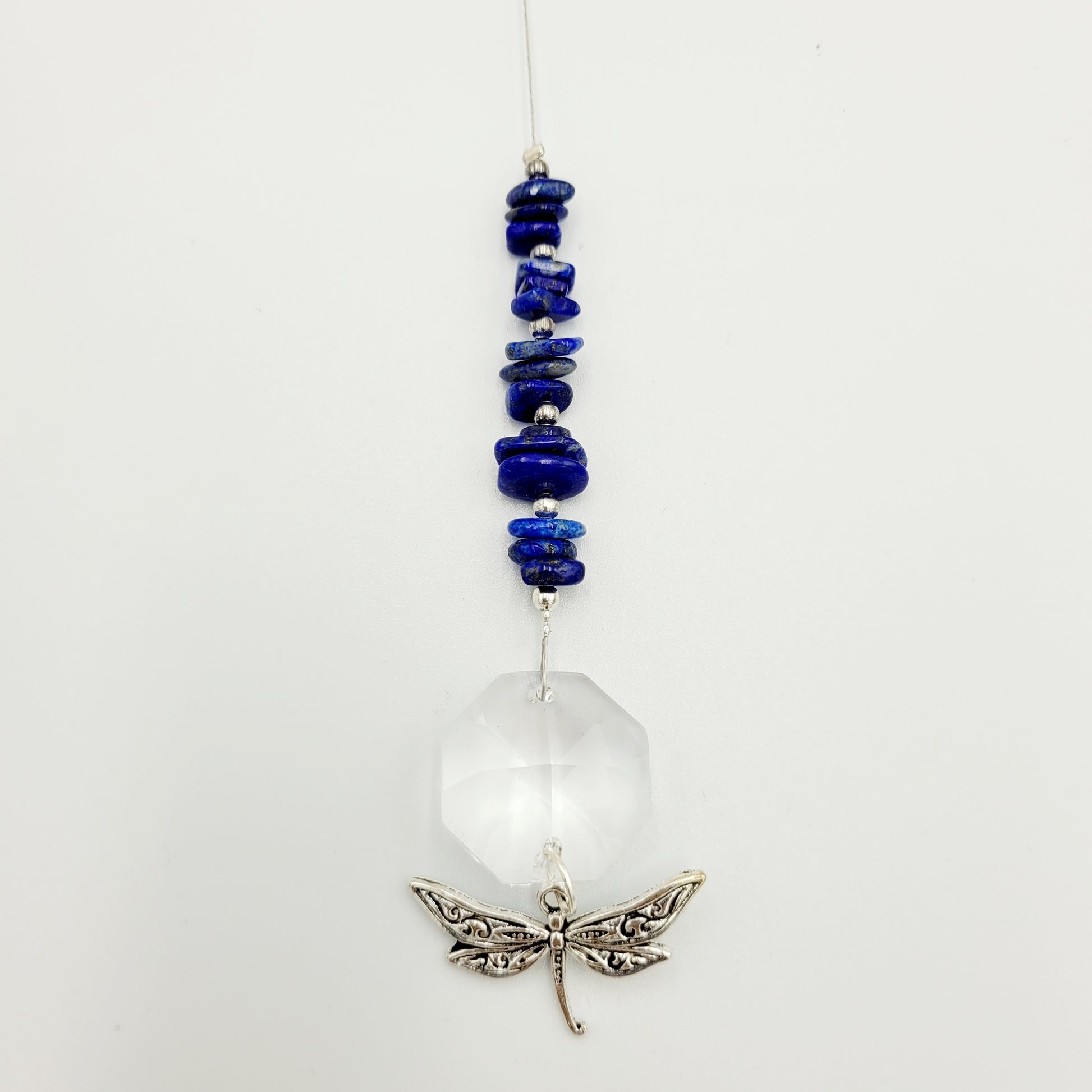 Bring transformation, adaptability, and self-realization to your home with our Dragonfly Octagonal Crystal Charm Suncatcher. Hang this beautiful piece of craftsmanship inside or outdoors and select your favorite stones for your desired purpose. Made with a large teardrop crystal, enjoy its beauty today!