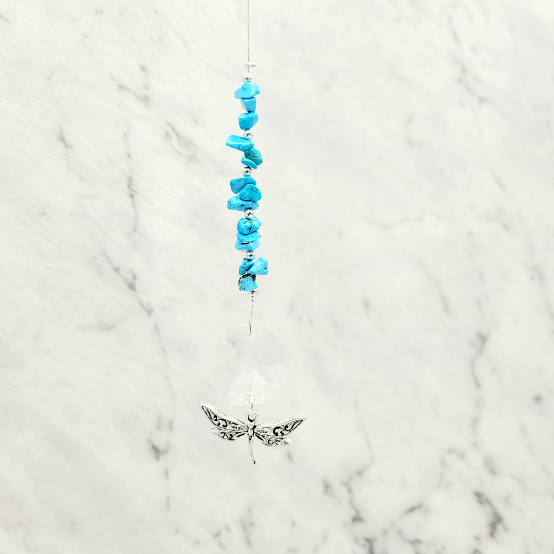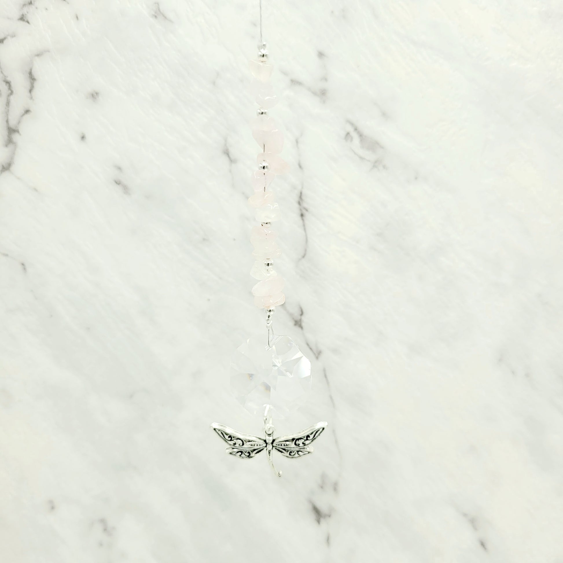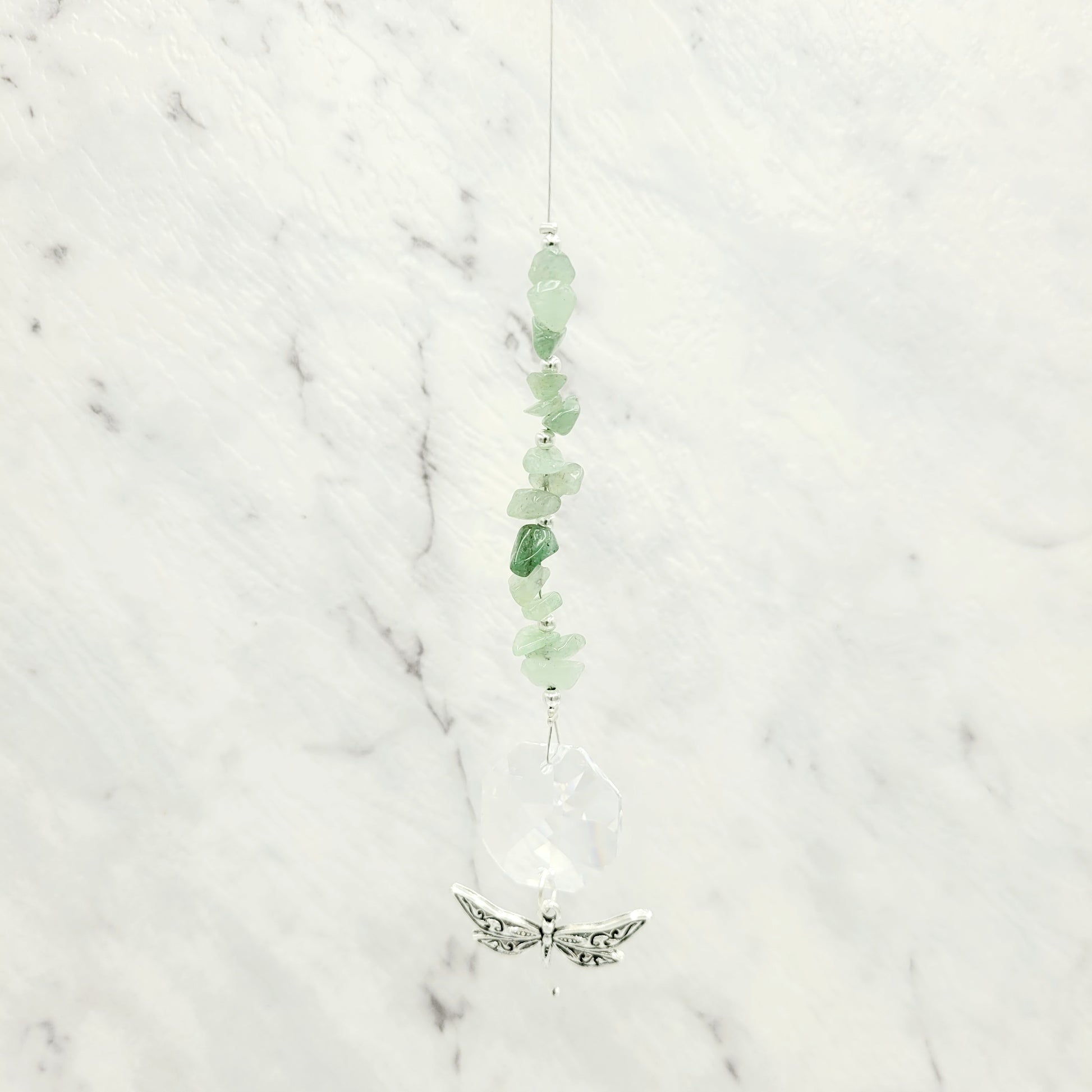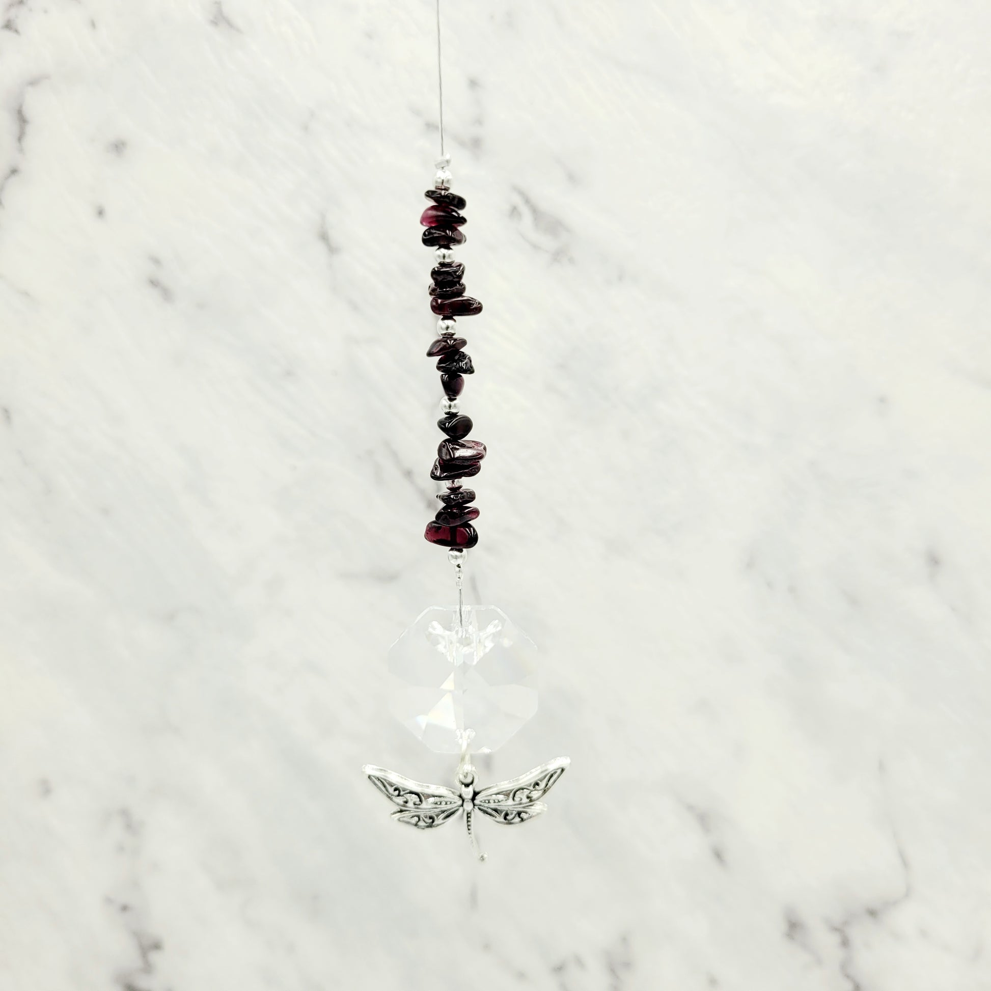 Bring transformation, adaptability, and self-realization to your home with our Dragonfly Octagonal Crystal Charm Suncatcher. Hang this beautiful piece of craftsmanship inside or outdoors and select your favorite stones for your desired purpose. Made with a large teardrop crystal, enjoy its beauty today!