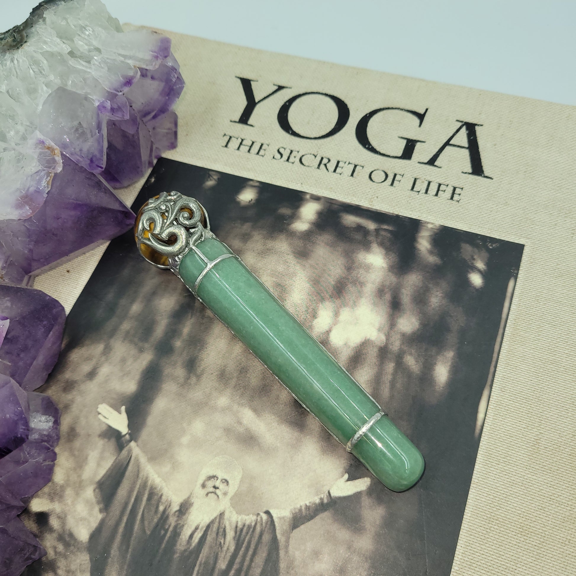 Experience a sense of calm and protection with our Excluive Wand - Om. Crafted with a tiger eye talisman for protection and aventurine for a feeling of wellbeing and serenity. Let this wand guide you towards a peaceful and positive energy.