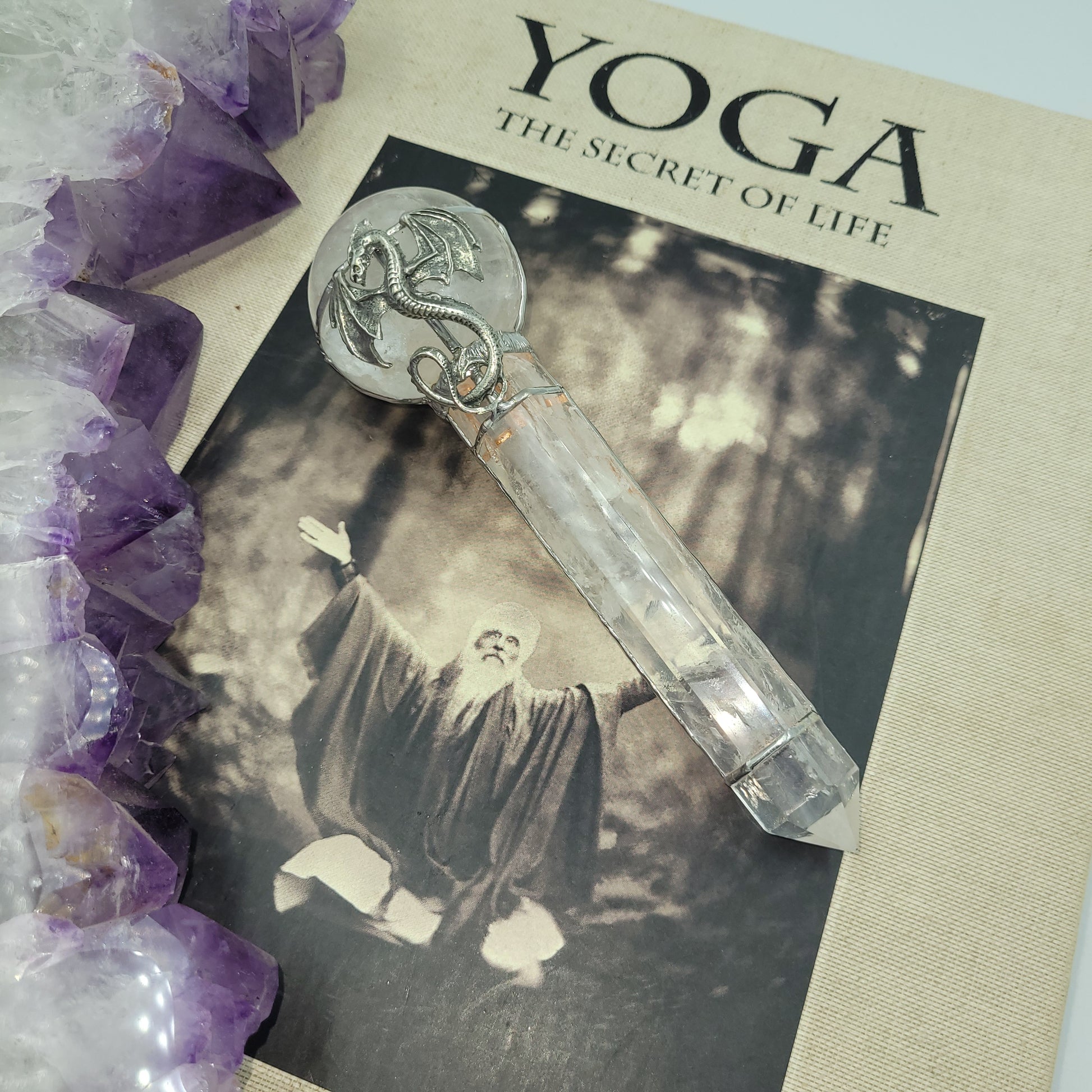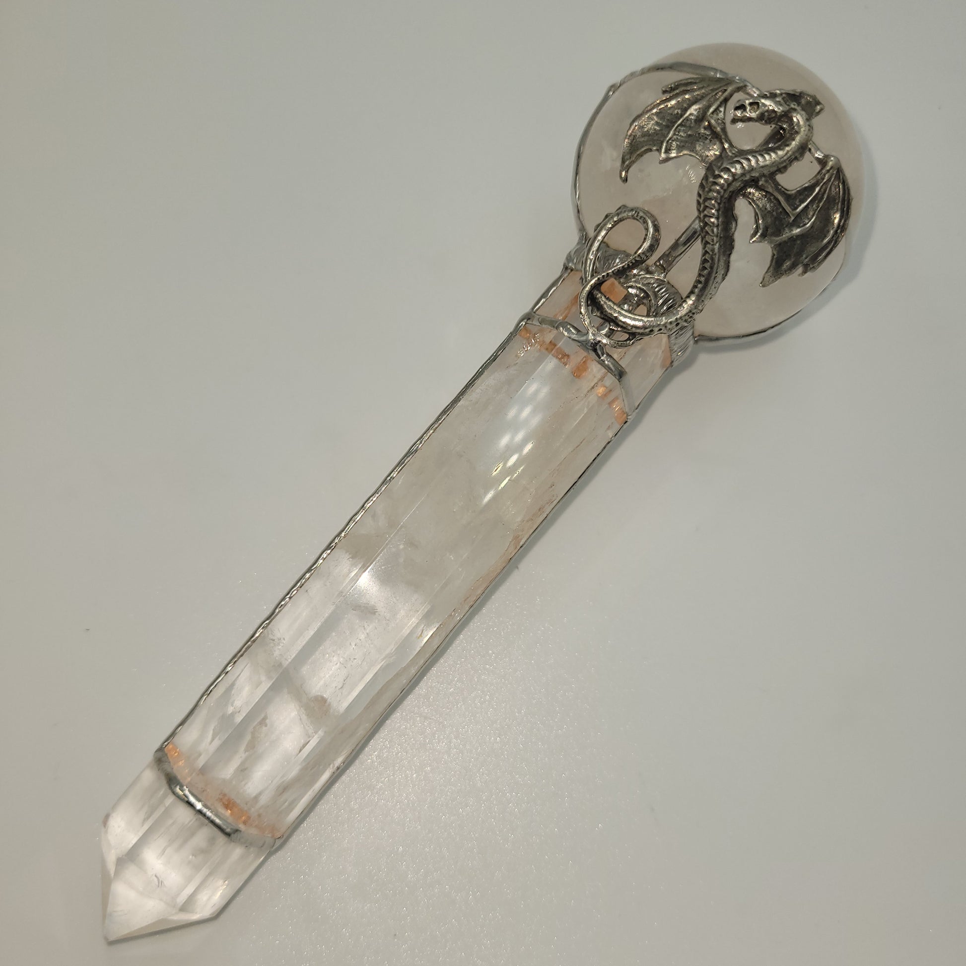 This exclusive wand is crafted with clear quartz, perfect for harnessing the power of positive energy in your life. The intricate dragon design adds an extra boost of strength and protection to your spiritual practices. Empower yourself with this unique wand.