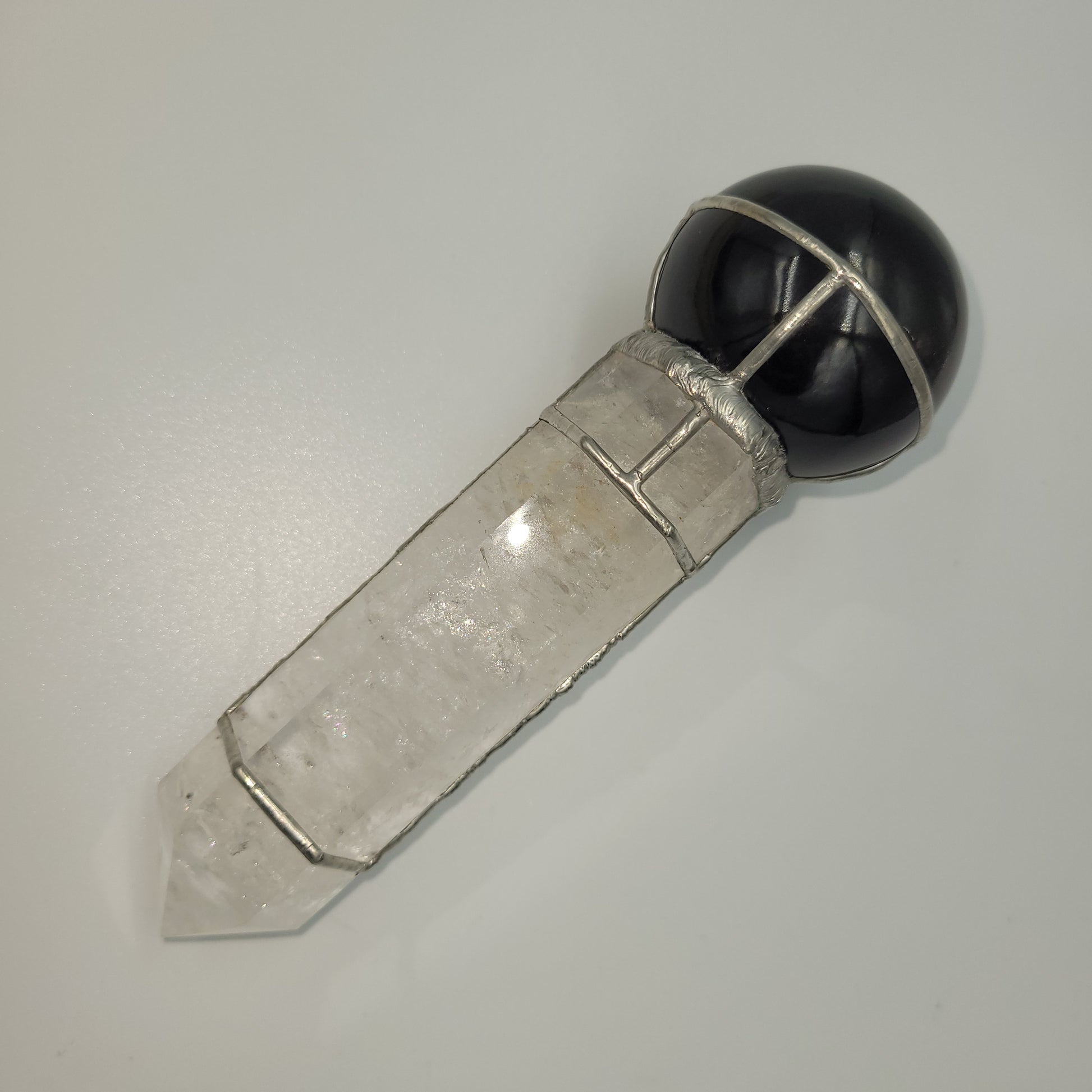 Enhance your energy and protect yourself with our Exclusive Wand- Dragon. The combination of clear quartz and obsidian is perfect for boosting your body's energy and providing stability against external and internal forces. Empower yourself with this powerful wand.