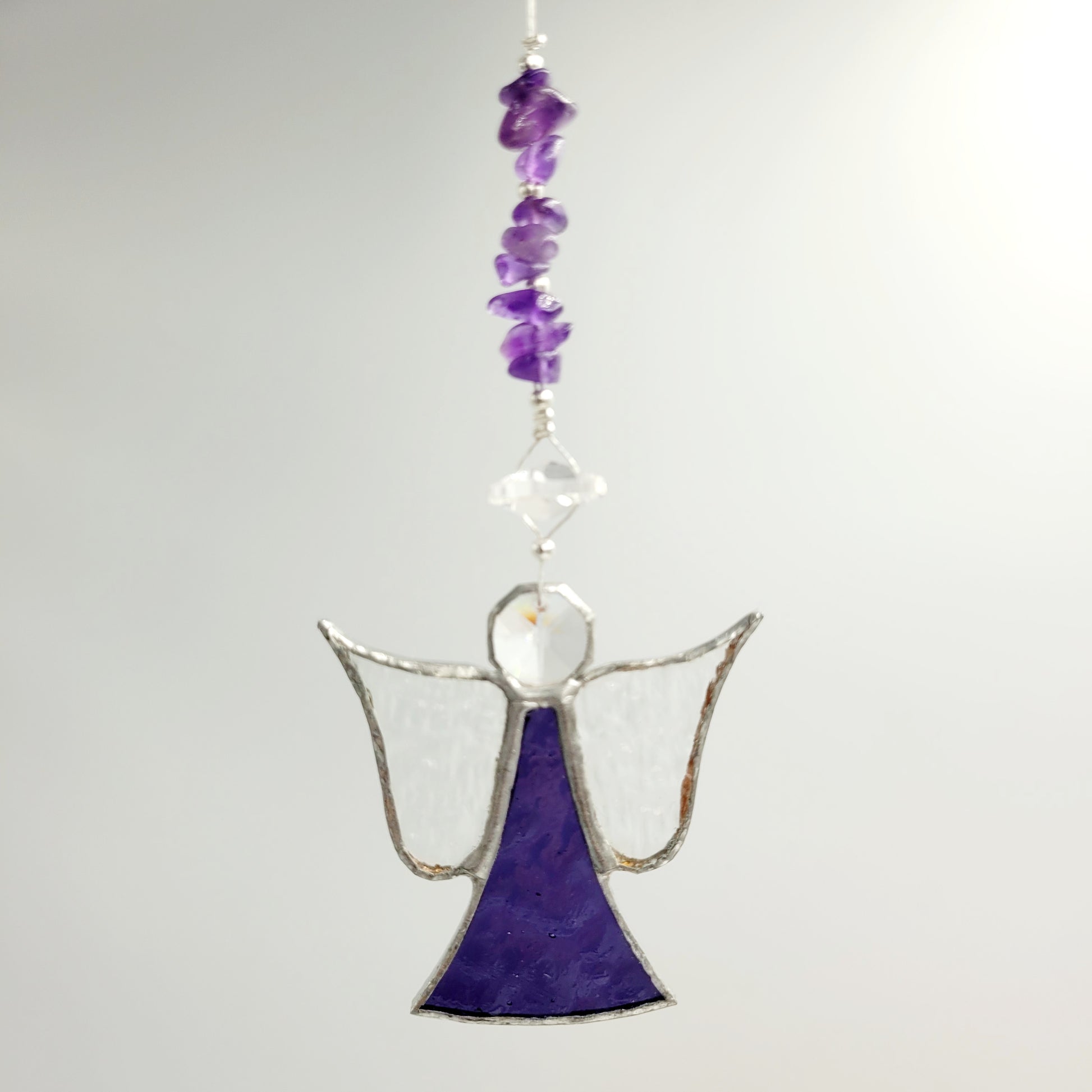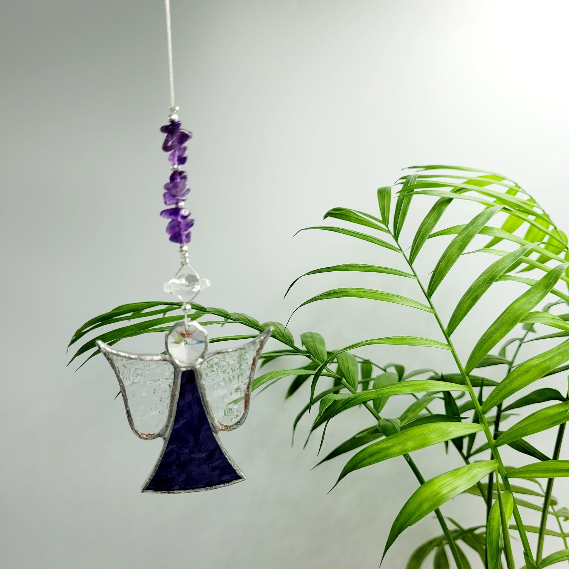 This Hanging Angel Stained Glass brings a peaceful atmosphere to any space. It captures the serene beauty of a guardian angel, and brings a calming, tranquil feeling to your home. Enjoy the tranquil aura of angelic love and peace in any room.