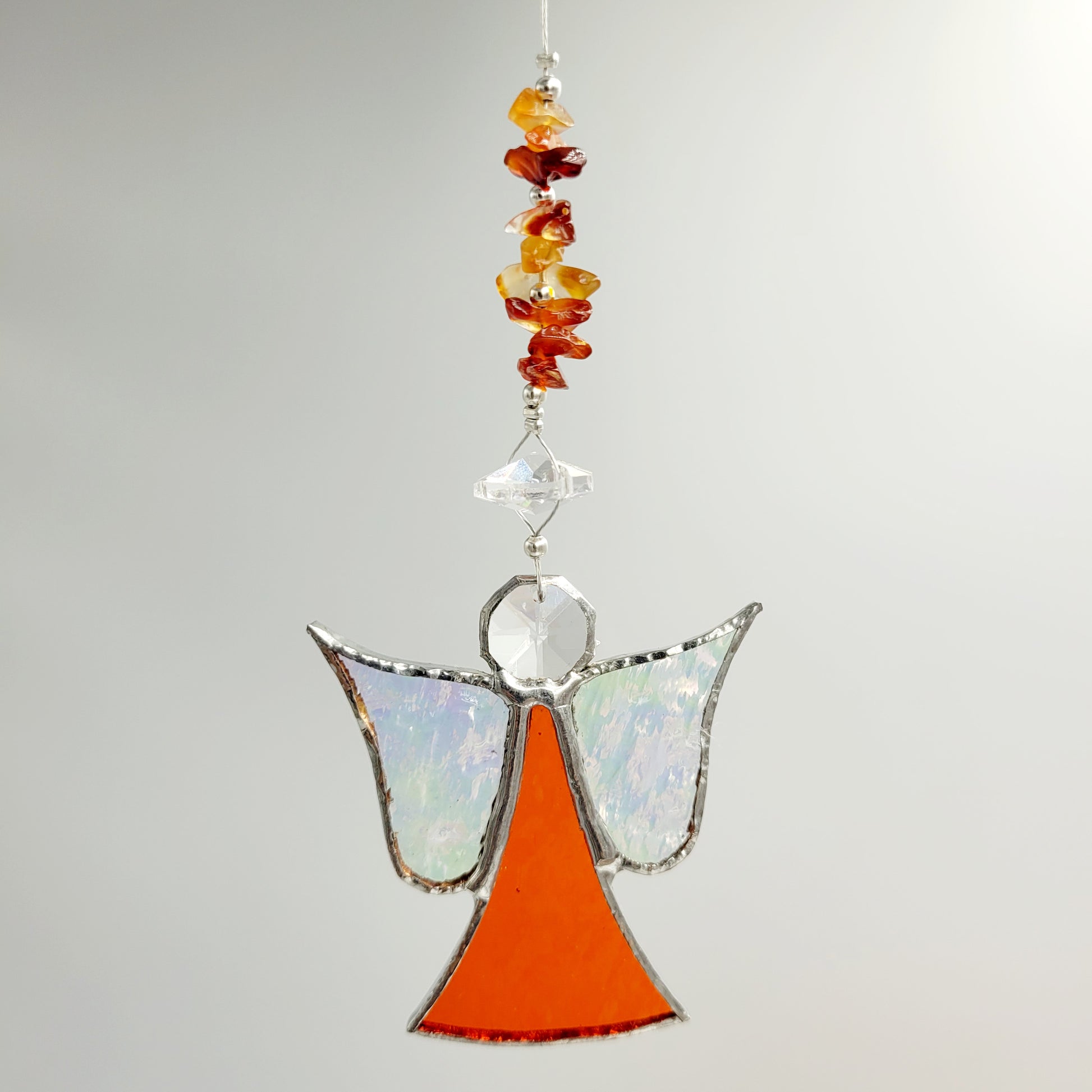 This Hanging Angel Stained Glass brings a peaceful atmosphere to any space. It captures the serene beauty of a guardian angel, and brings a calming, tranquil feeling to your home. Enjoy the tranquil aura of angelic love and peace in any room.