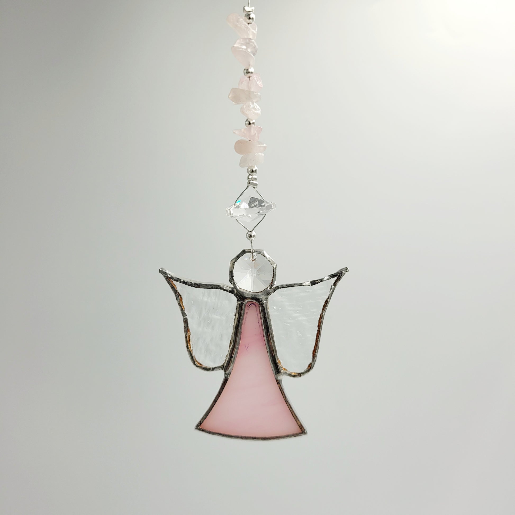 Hanging Angel Stained Glass Pink/ Rose Quartz