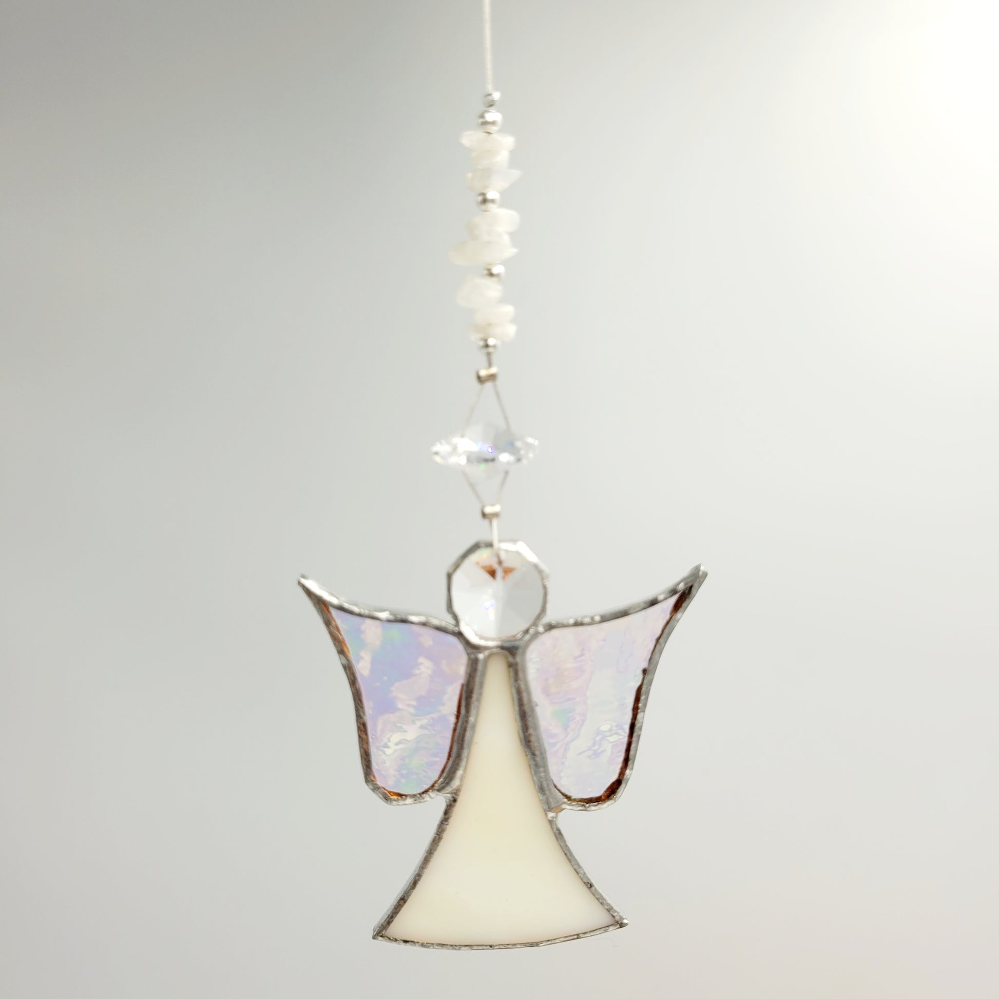 This Hanging Angel Stained Glass brings a peaceful atmosphere to any space. It captures the serene beauty of a guardian angel, and brings a calming, tranquil feeling to your home. Enjoy the tranquil aura of angelic love and peace in any room.