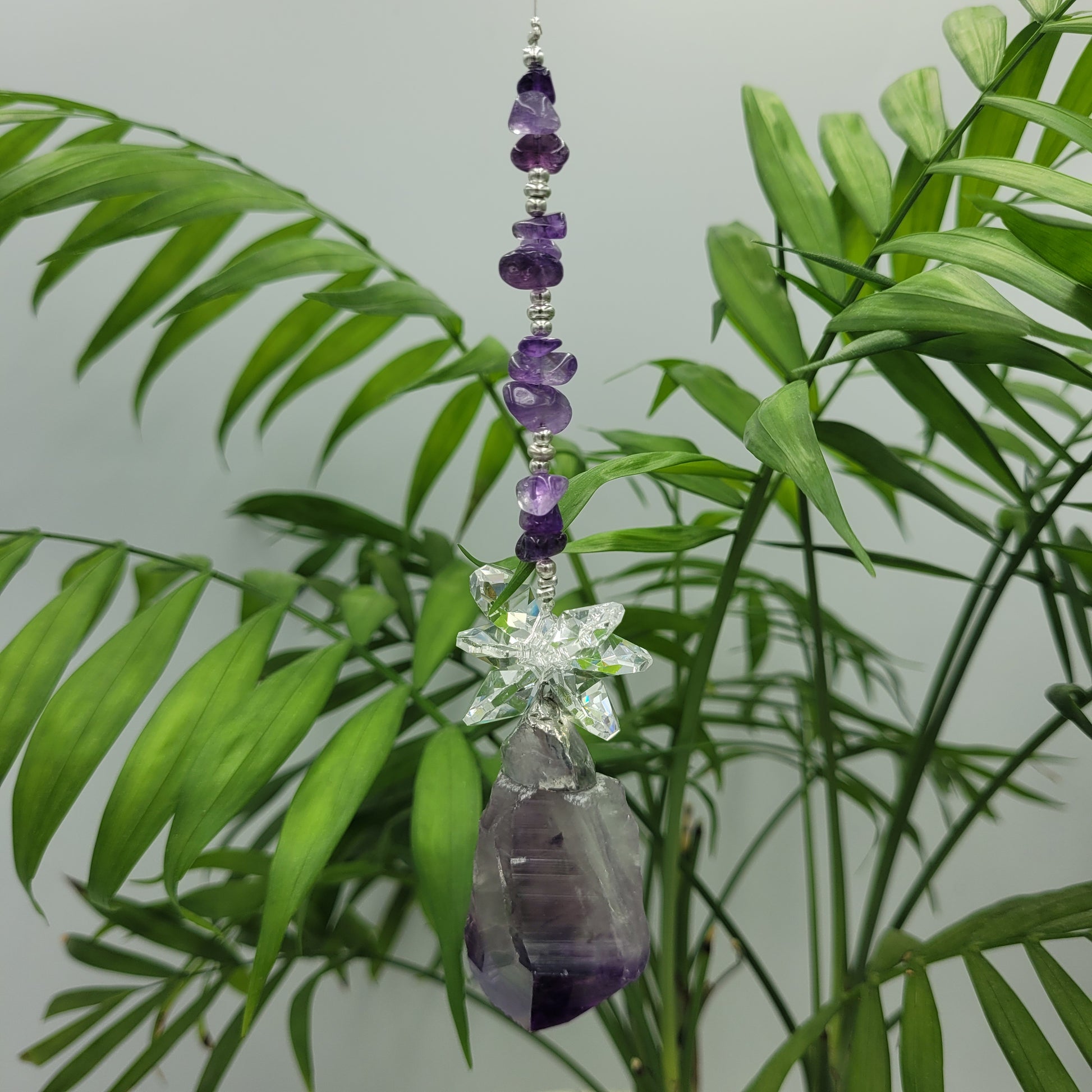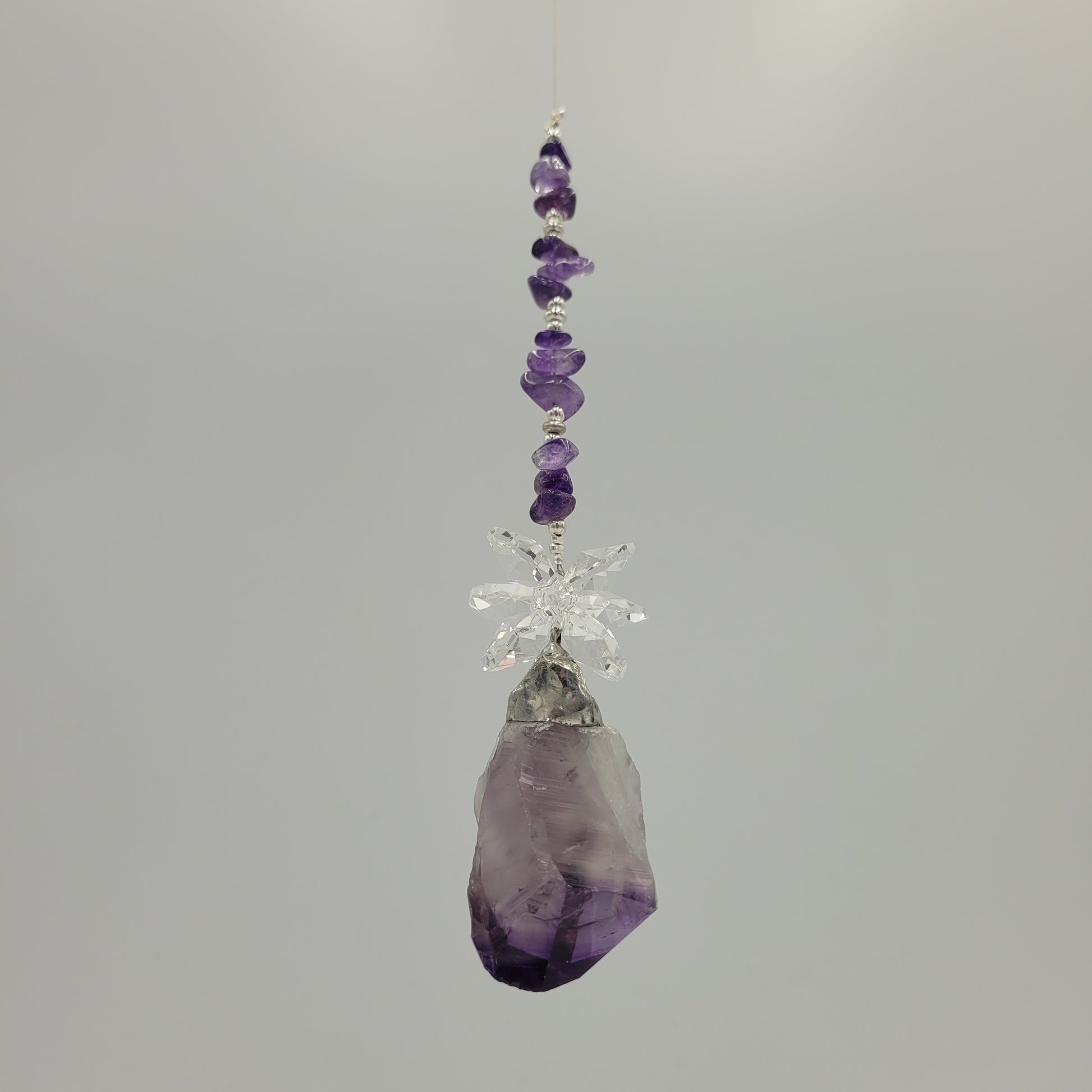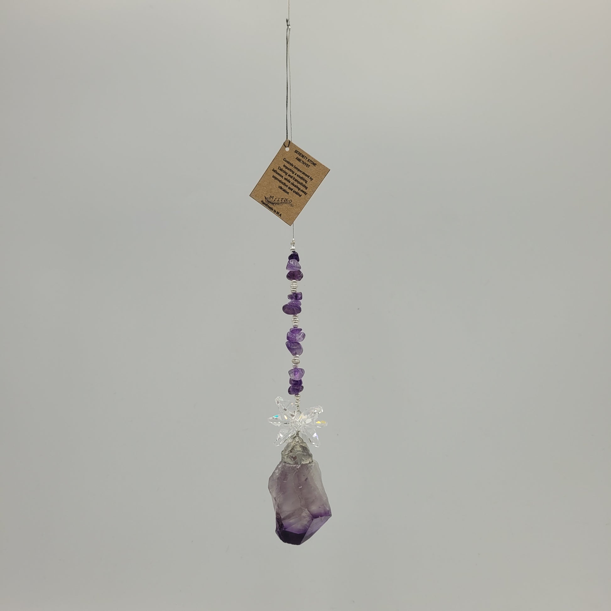 Enhance your living space with the Hanging Cluster Amethyst Stone. Combining calming, tranquilizing properties of real amethyst, this piece of décor creates an atmosphere of serenity and helps to control your temper. Add a touch of elegance and some spiritual healing to your home.