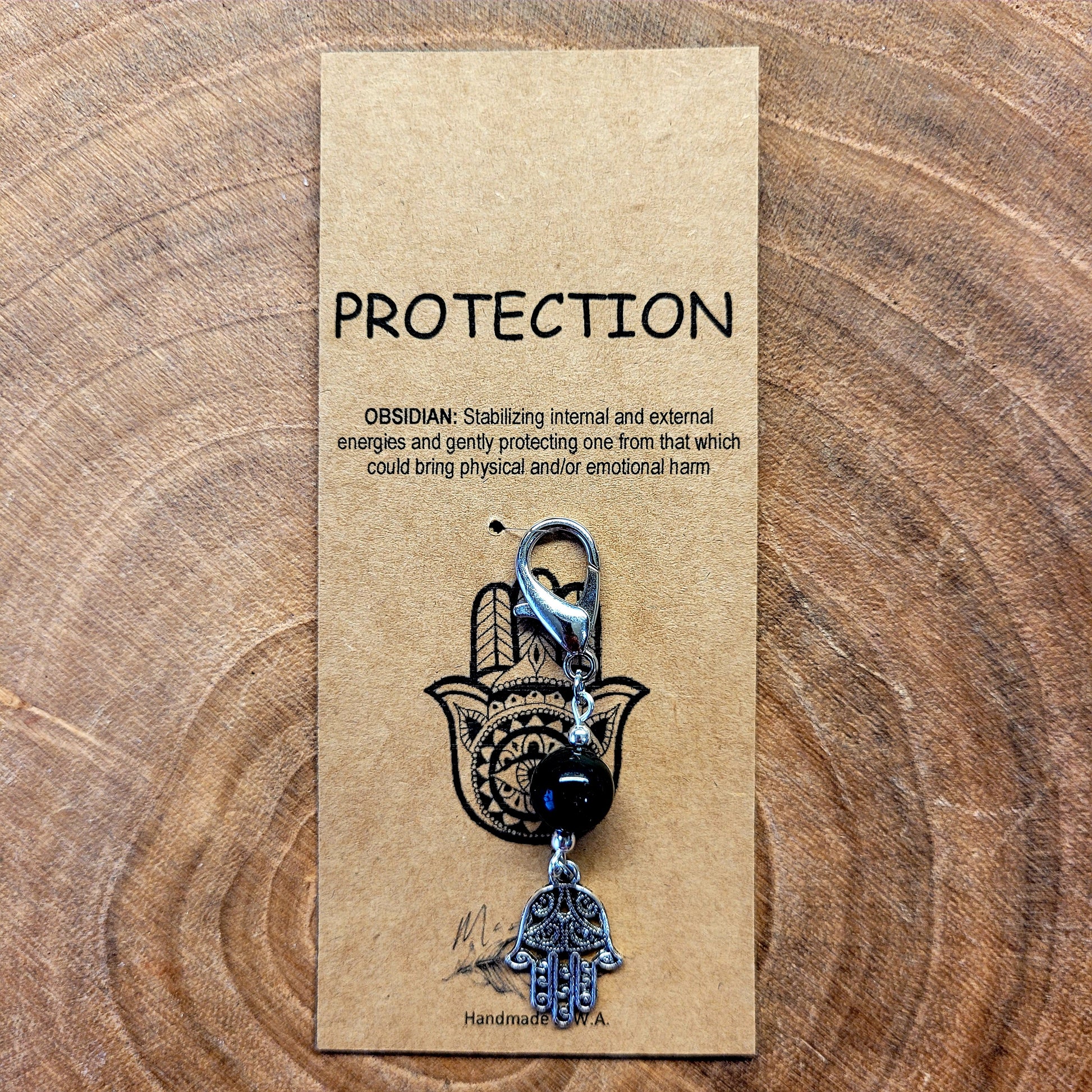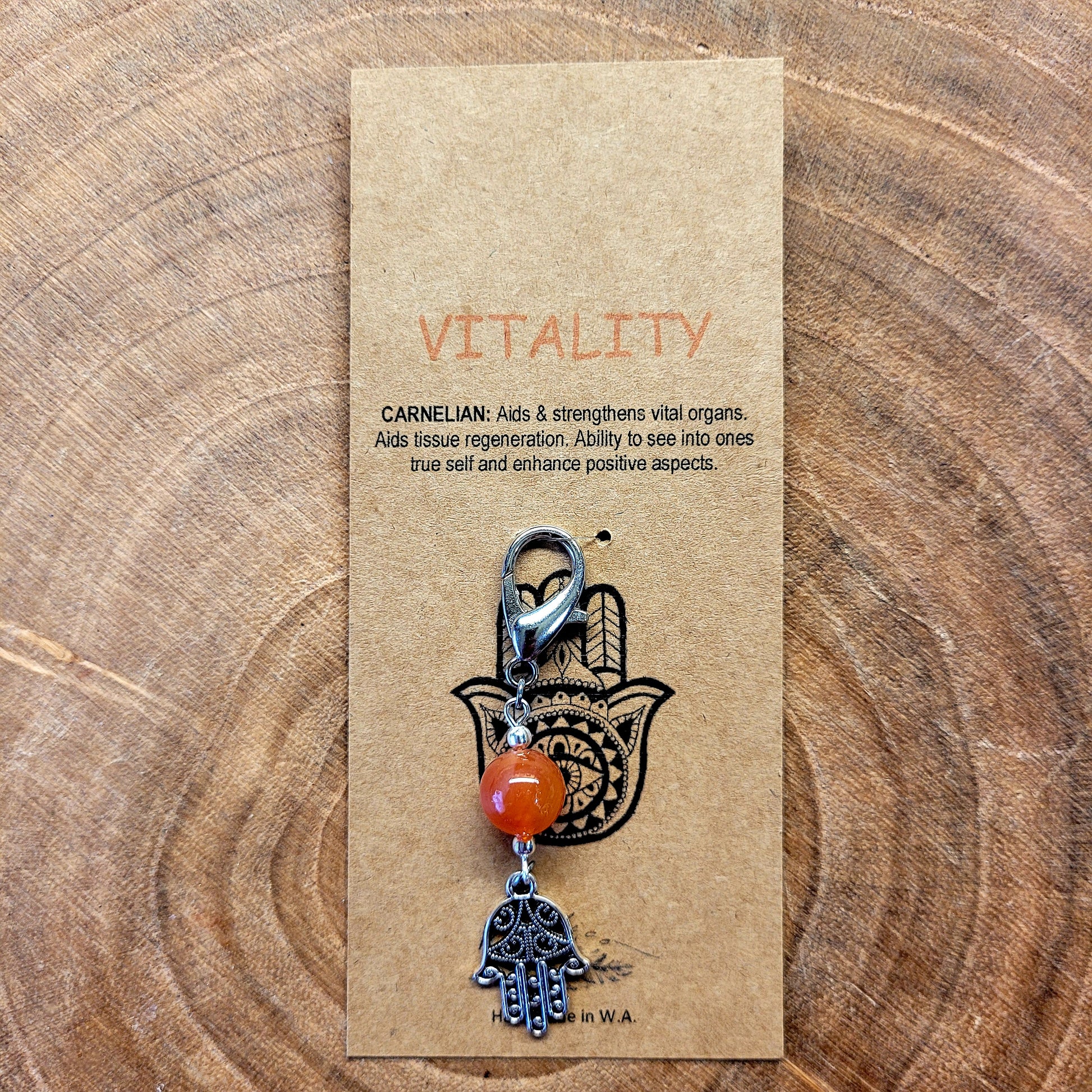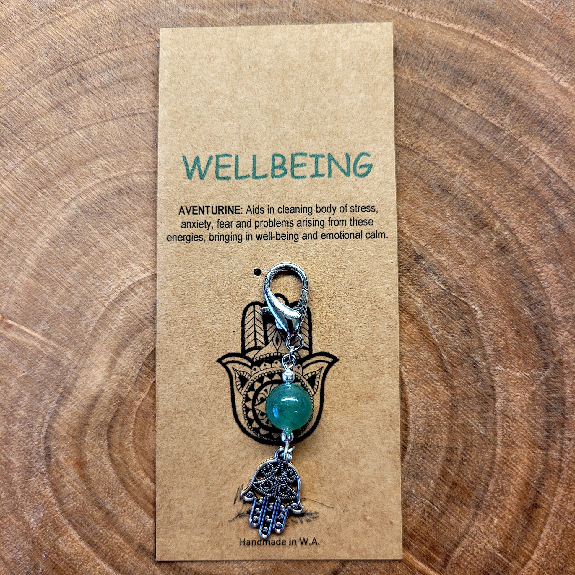 Take your stone therapy on the go with this Healing Stones Charm - Hamsa, made with natural stones! Easy to attach to your favorite bag or keychain, it's the perfect way to bring your favorite healing stone with you wherever you go! and so take some time to meditate with your stone (in your pocket).