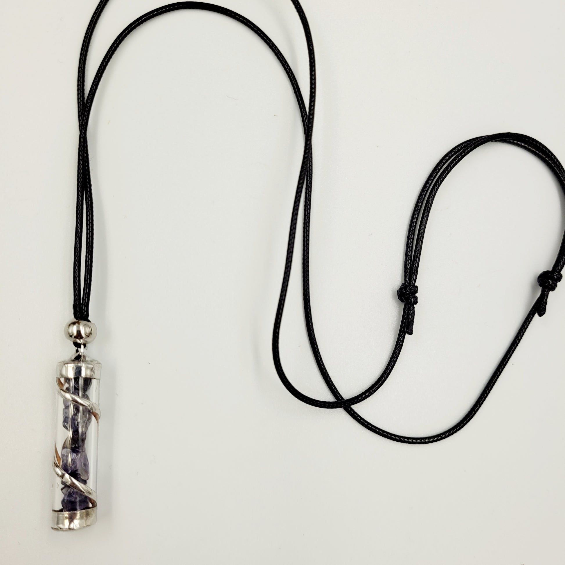 Our Crystal Filled Tube Necklaces are a beautiful piece that you can wear to promote healing and protection wherever you go. With its beautiful crystals encased in a tube necklace pendant, it is a powerful accessory for those looking for daily support from their chosen stone. Put on this necklace and feel surrounded by calming, protective energies.