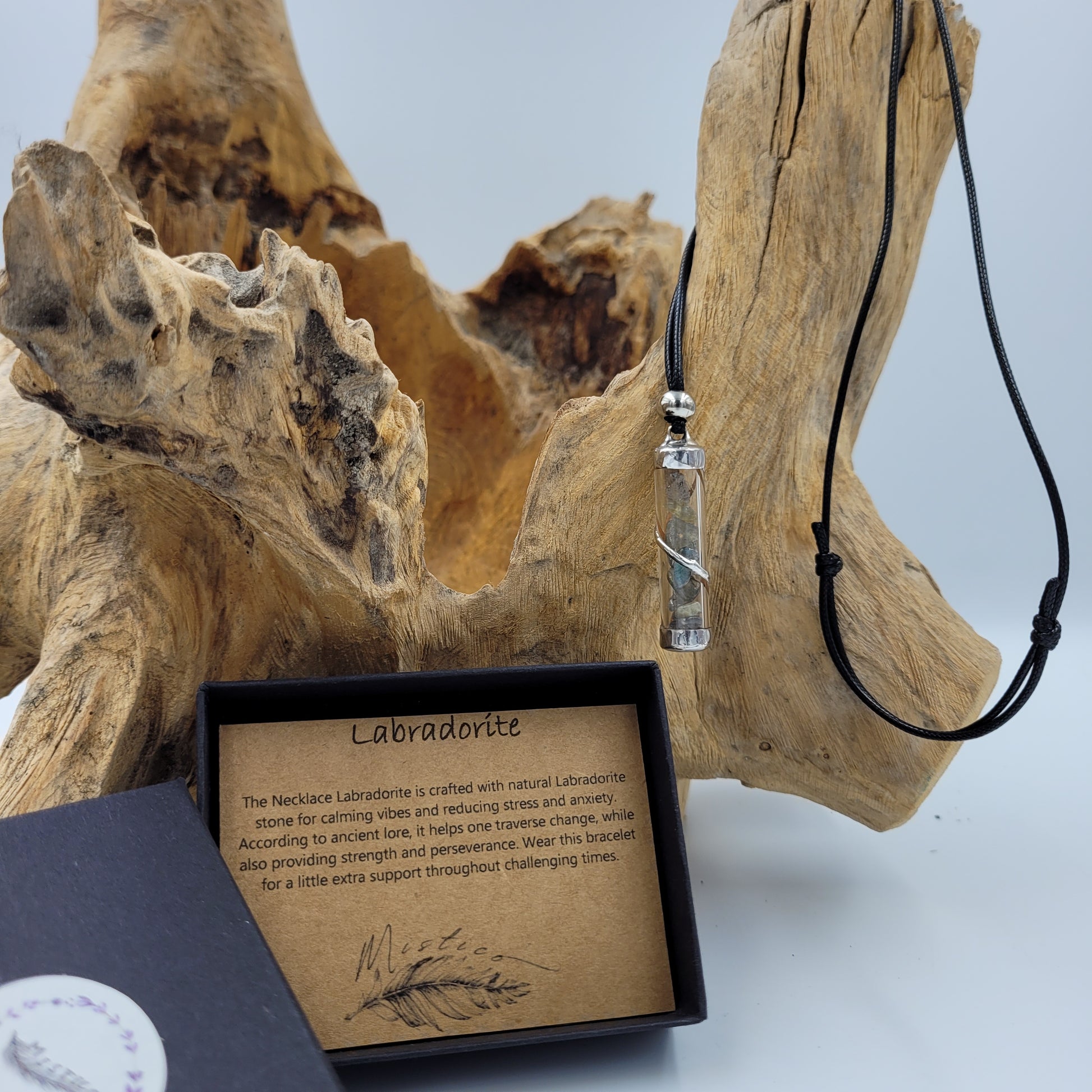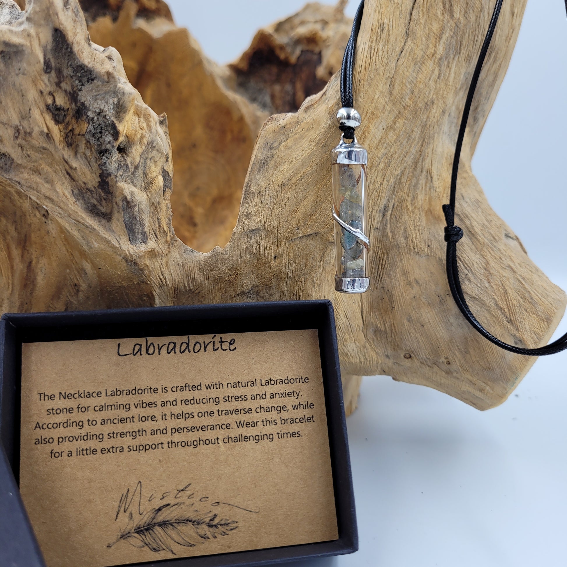 Our Crystal Filled Tube Necklaces are a beautiful piece that you can wear to promote healing and protection wherever you go. With its beautiful crystals encased in a tube necklace pendant, it is a powerful accessory for those looking for daily support from their chosen stone. Put on this necklace and feel surrounded by calming, protective energies.