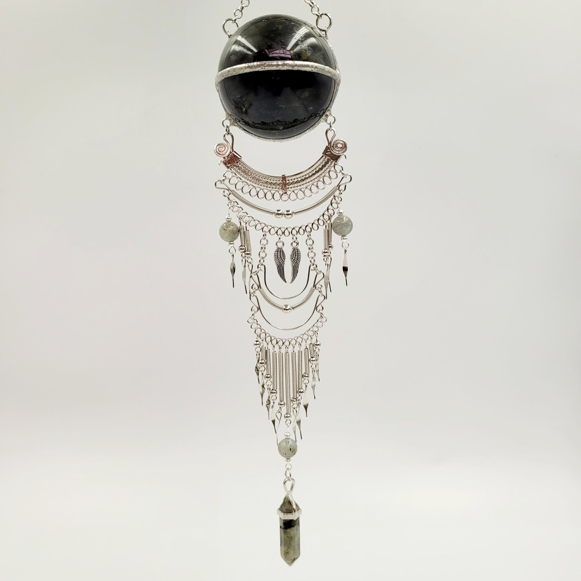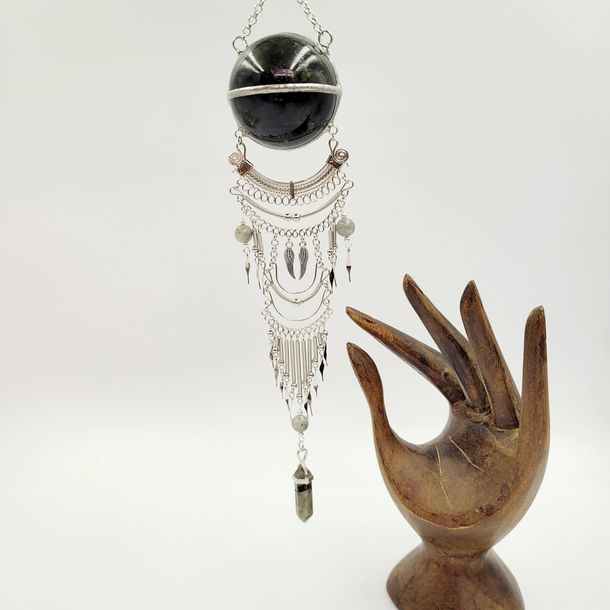 The Labradorite Hanging Sphere is believed to promote perseverance and strength. Its calming vibes are perfect for any home or office. Hang it for a touch of natural beauty.