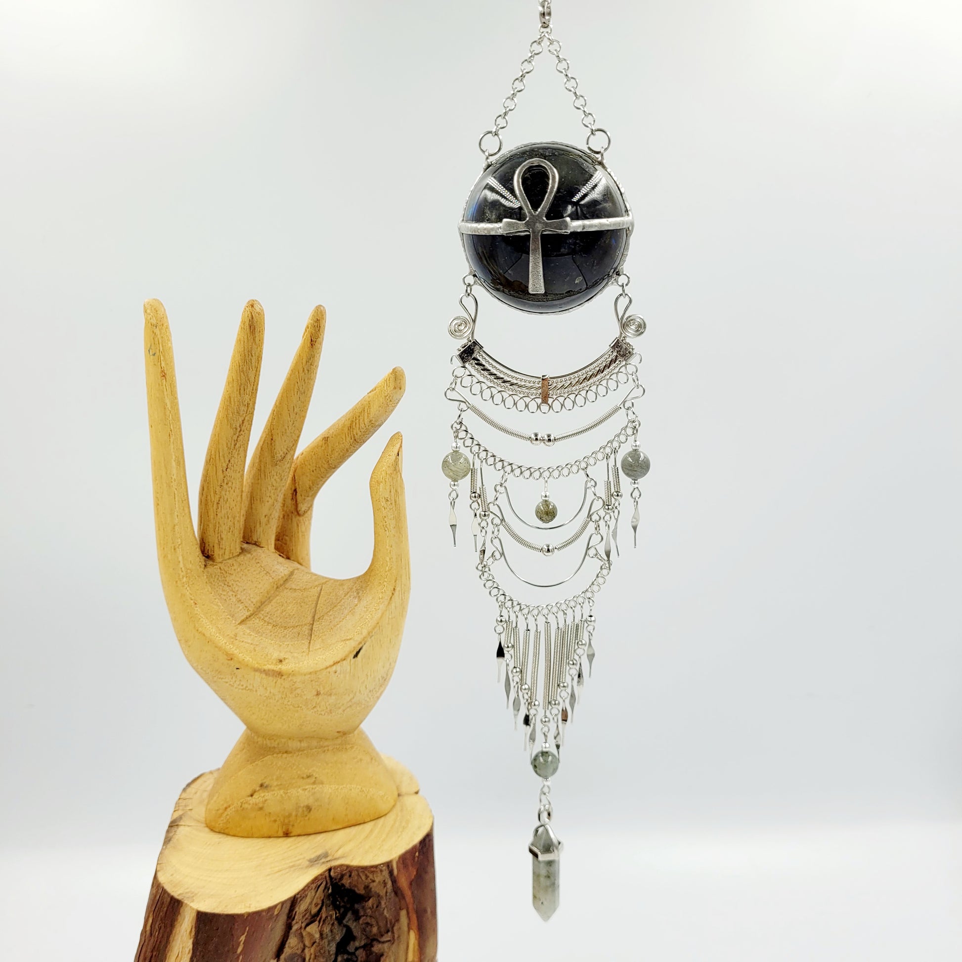 The Labradorite Hanging Sphere is believed to promote perseverance and strength. Its calming vibes are perfect for any home or office. Hang it for a touch of natural beauty.