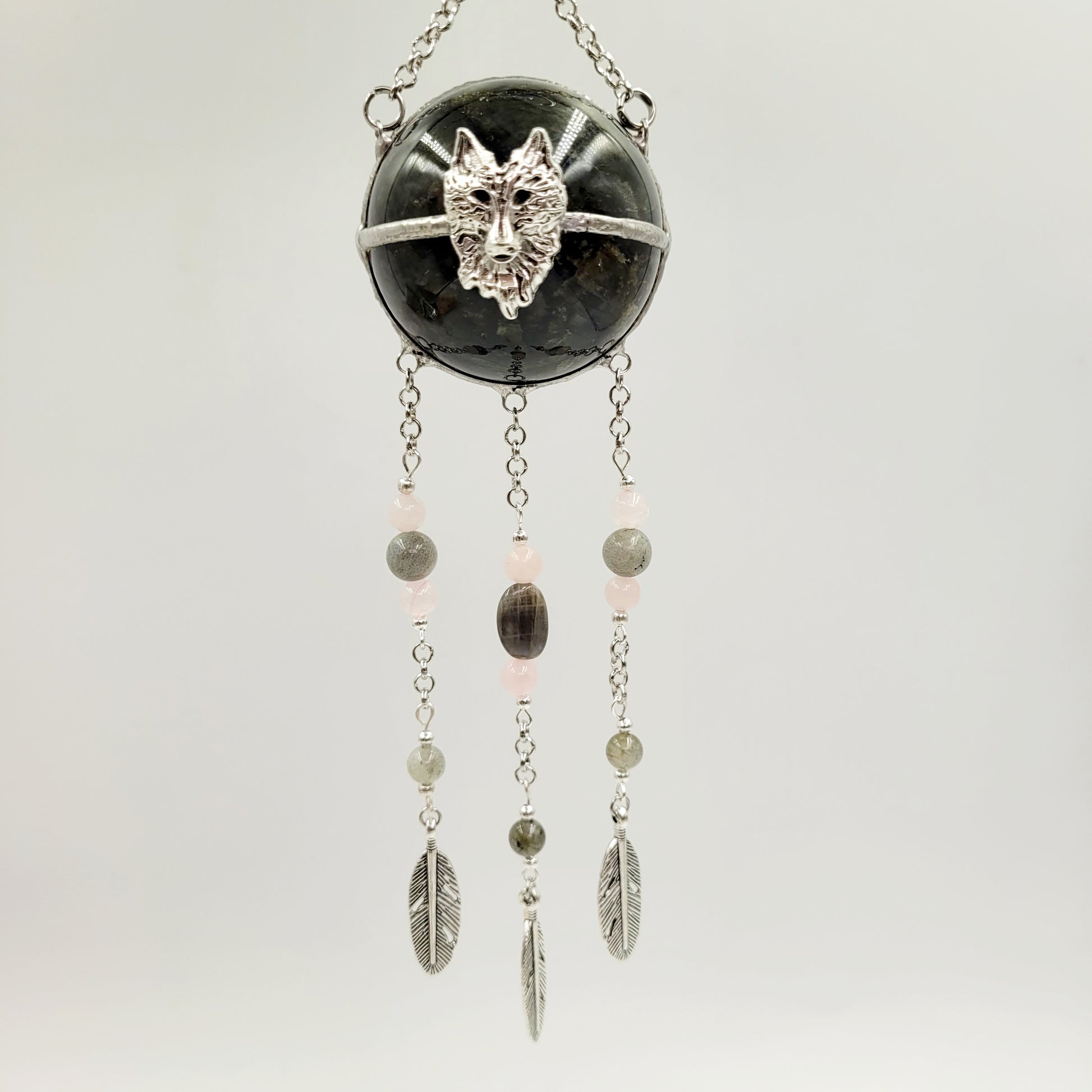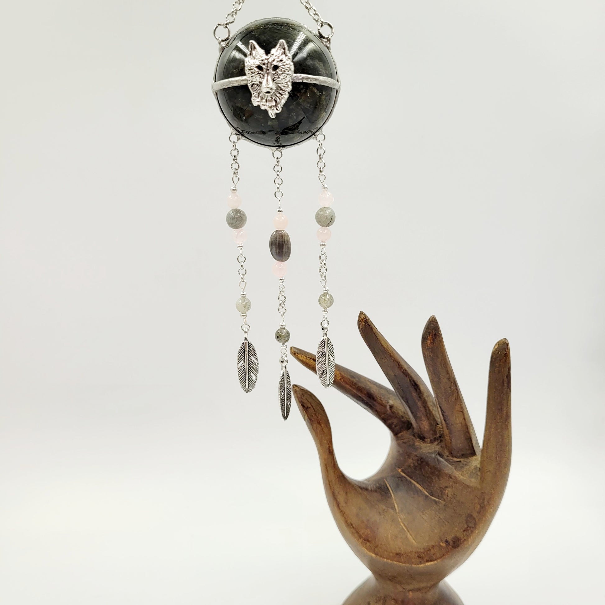 The Labradorite Hanging Sphere is believed to promote perseverance and strength. Its calming vibes are perfect for any home or office. Hang it for a touch of natural beauty.