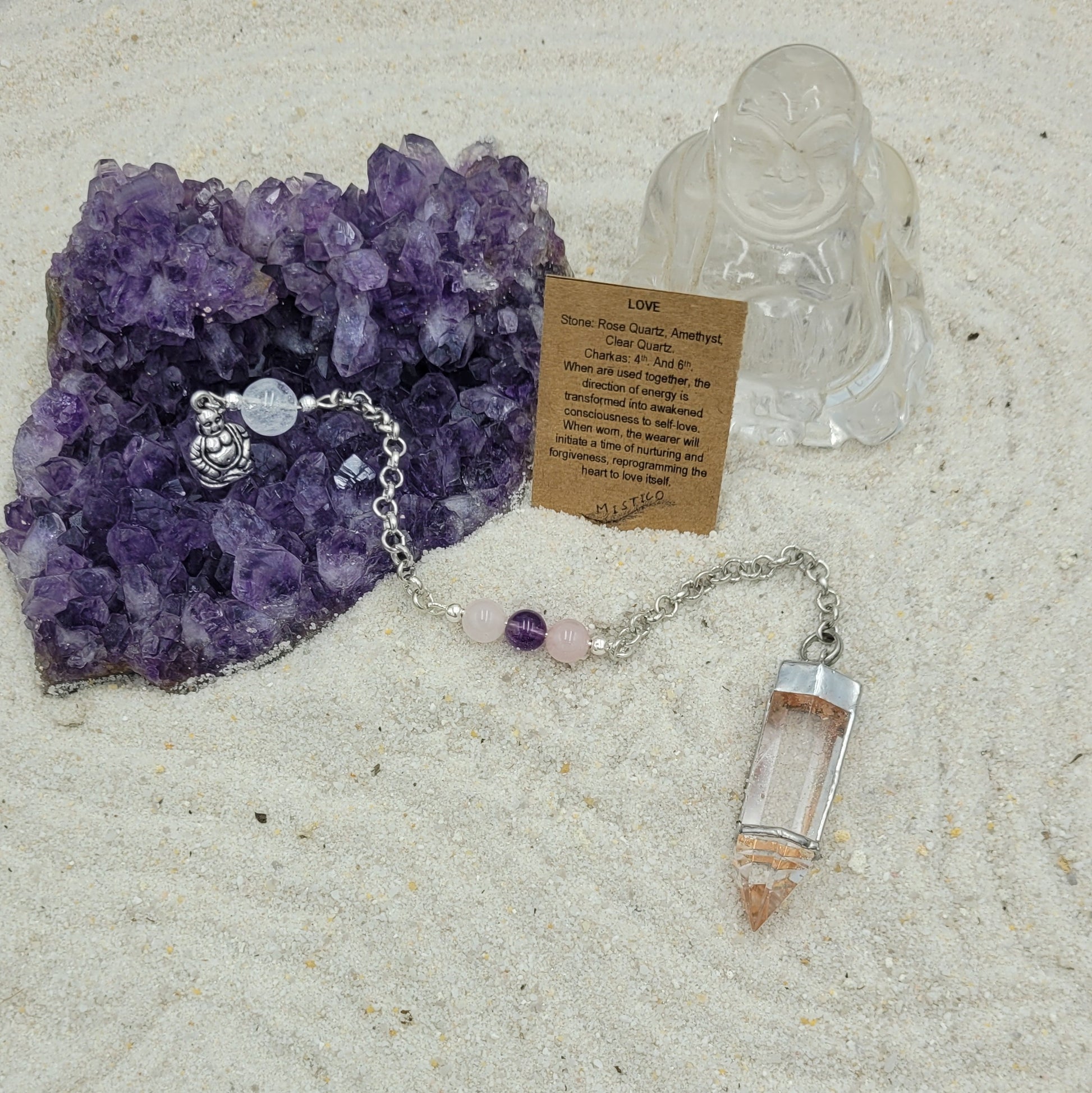 A combination of Rose Quartz, Amethyst, and Clear Quartz has been said to promote physical and emotional healing. These three stones activate the 4th and 6th Chakras, resulting in a transformation of energy into awakening and self-love. Said to bring about a period of nurturing and forgiveness, this trio of stones could help reprogram the heart to focus on loving itself.