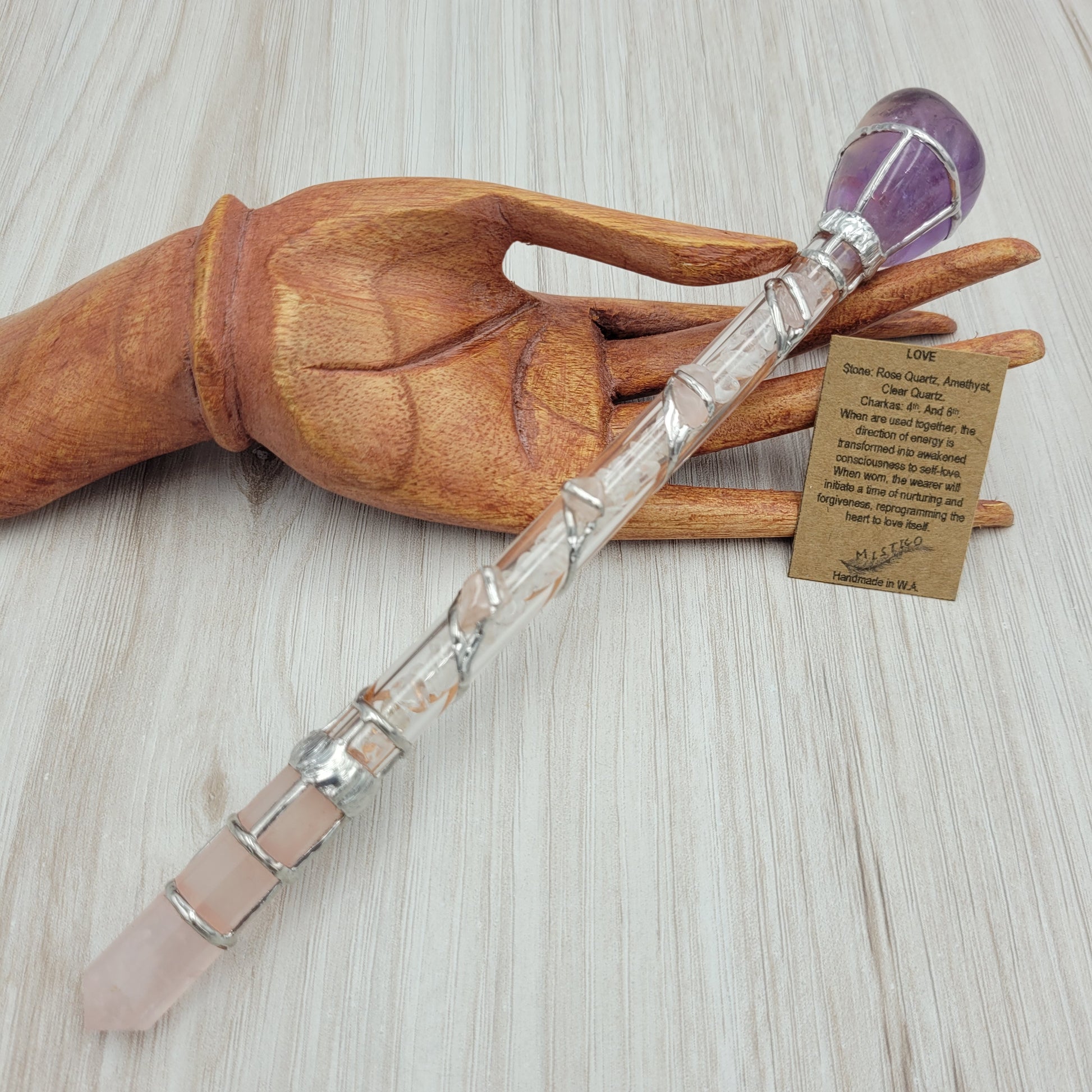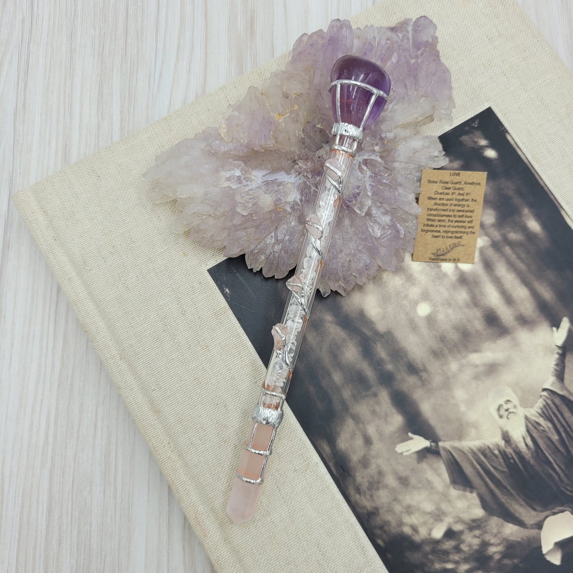 A combination of Rose Quartz, Amethyst, and Clear Quartz has been said to promote physical and emotional healing. These three stones activate the 4th and 6th Chakras, resulting in a transformation of energy into awakening and self-love. Said to bring about a period of nurturing and forgiveness, this trio of stones could help reprogram the heart to focus on loving itself.