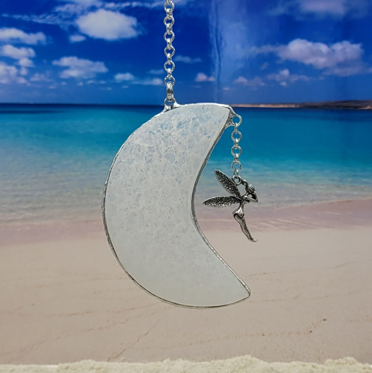 The Moon Selenite Hanging is a powerful, spiritual aid crafted from selenite stone that helps you access angelic consciousness. With it, you can enjoy the calming effects of mediation and deepen your spiritual practices. Selenite is also said to radiate energy to amplify your meditation and prayer journeys.