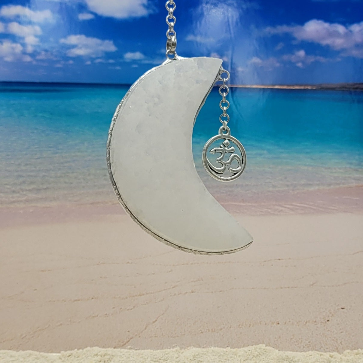 The Moon Selenite Hanging is a powerful, spiritual aid crafted from selenite stone that helps you access angelic consciousness. With it, you can enjoy the calming effects of mediation and deepen your spiritual practices. Selenite is also said to radiate energy to amplify your meditation and prayer journeys.