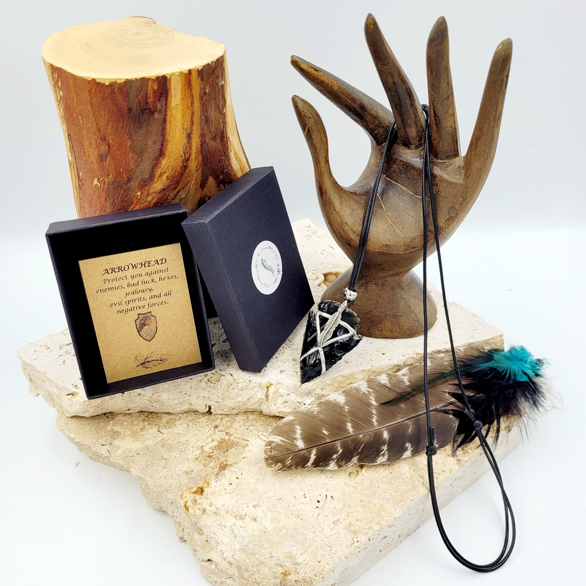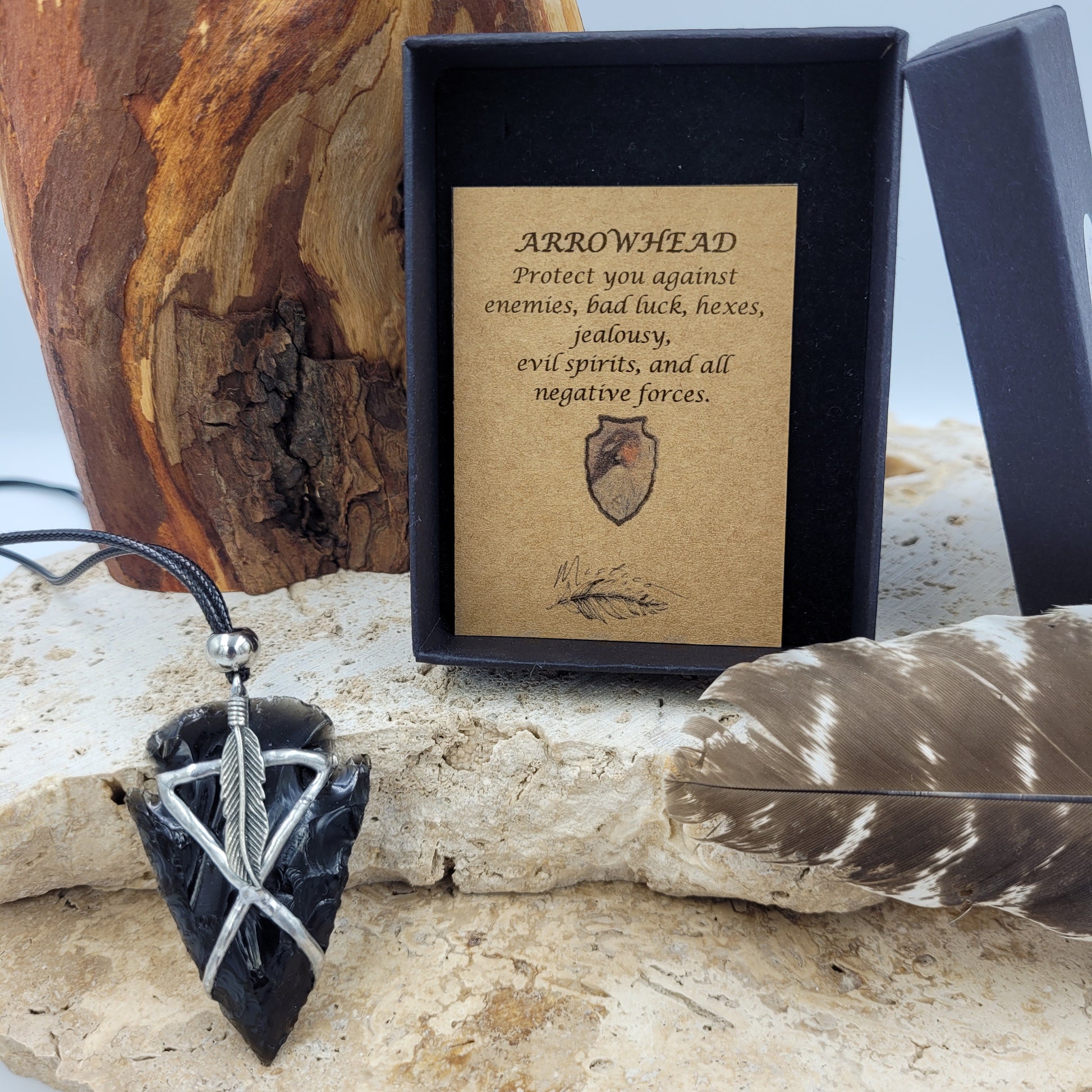 Obsidian Arrowhead Necklace - Feather