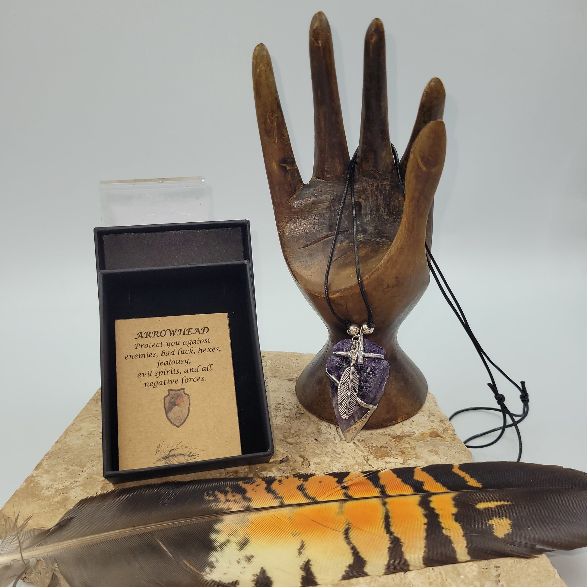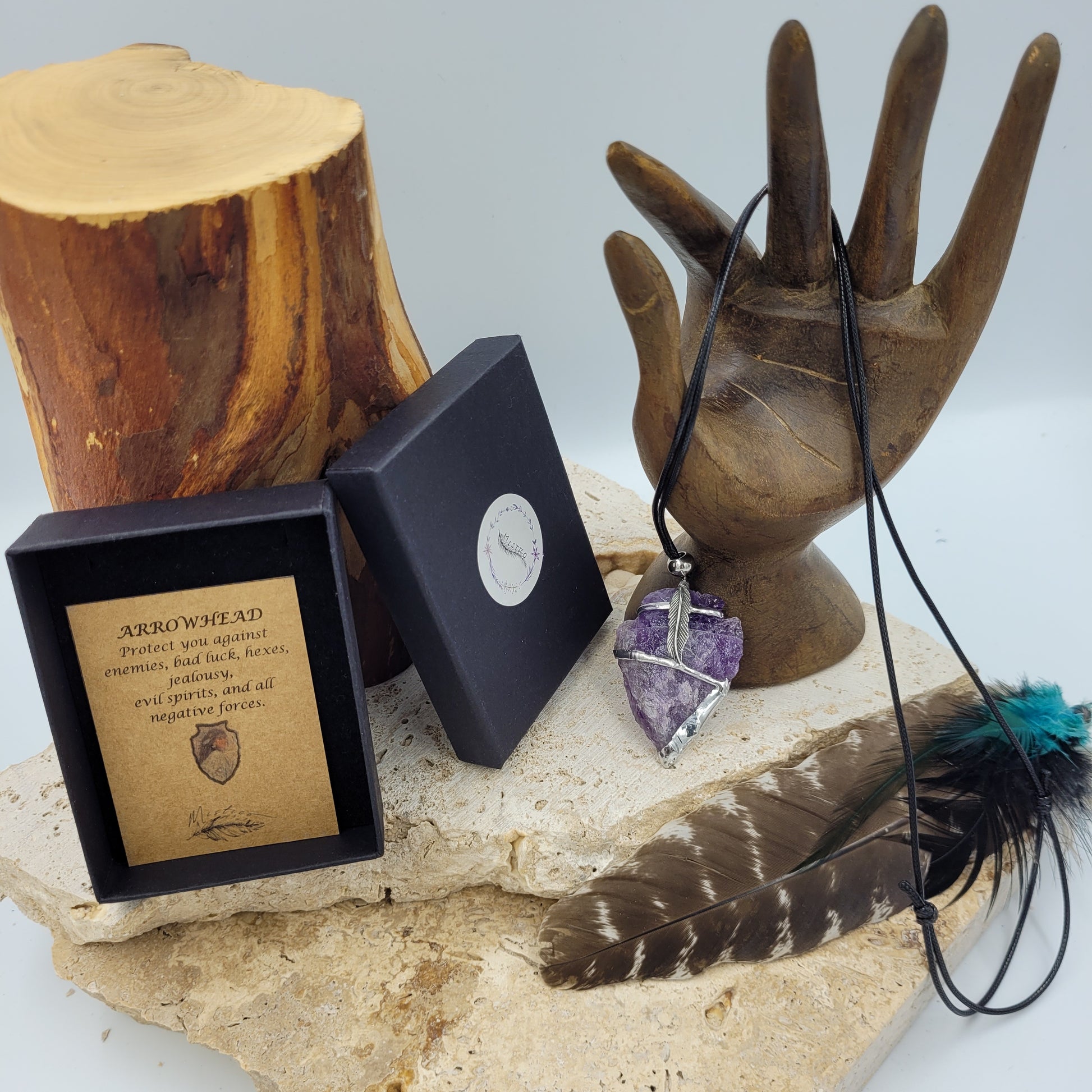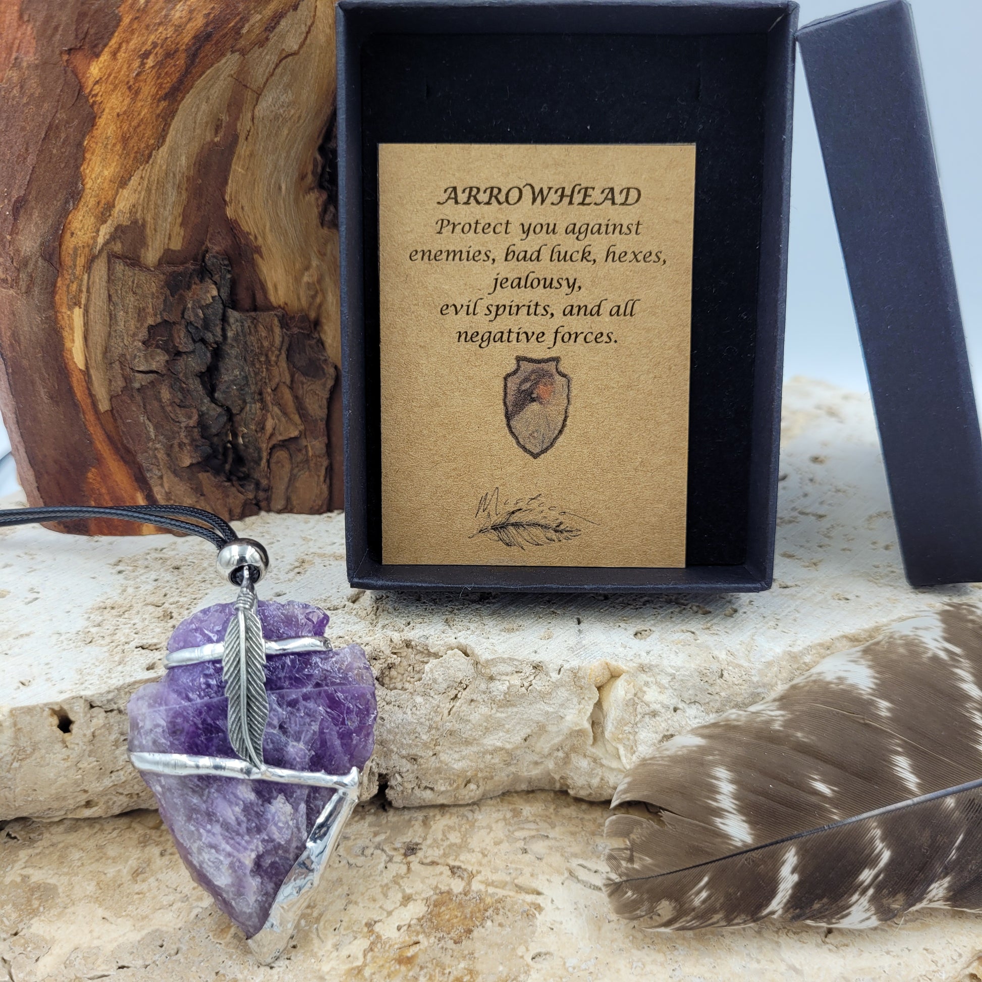 Our Amethyst Arrowhead Necklace will safeguard you against the most negative forces, providing a sense of peace and protection. Crafted from natural amethyst, it will enhance your intuition and meditation practice, calming your mind and spirit. An ideal companion while traveling, it will ward off nightmares and boost your immune system.