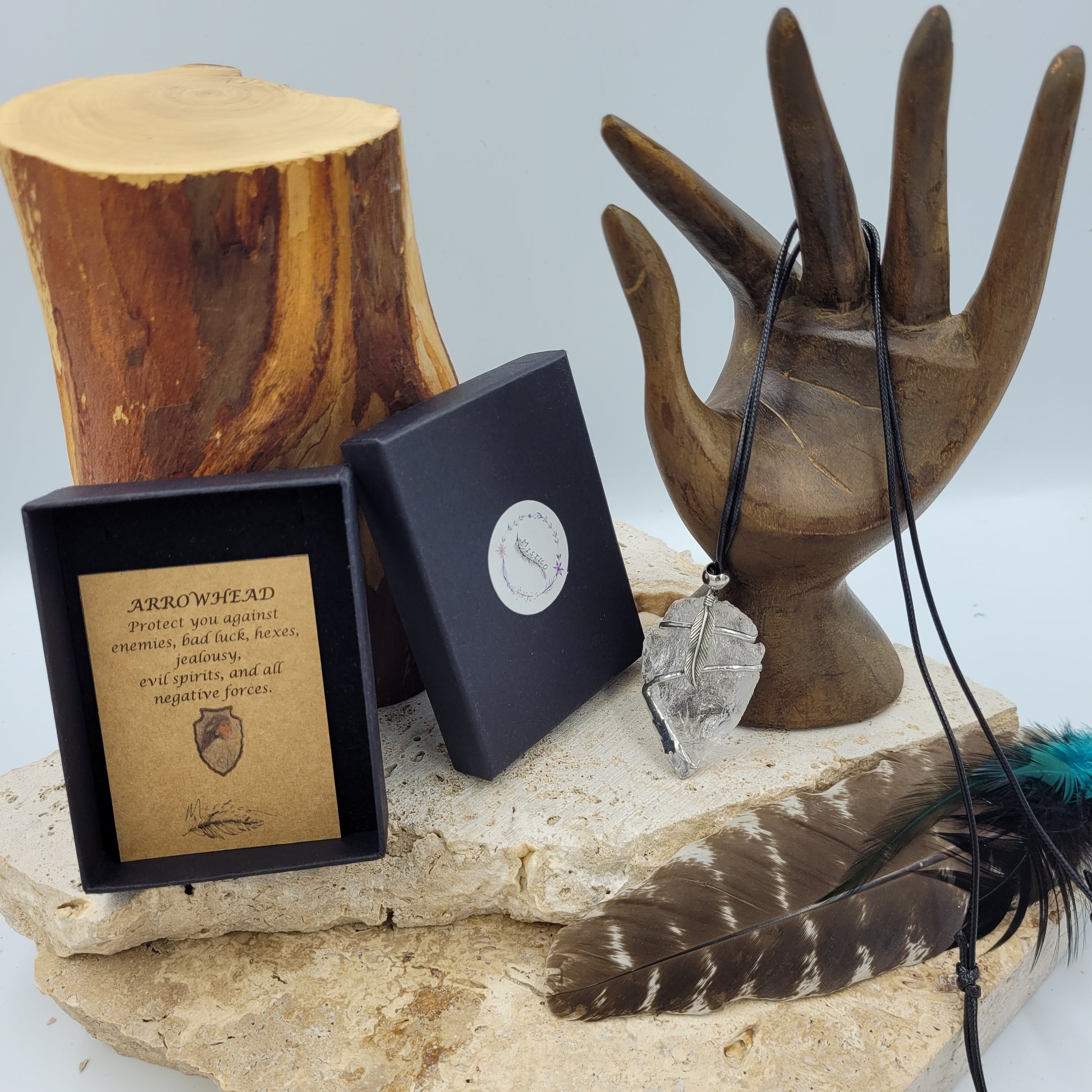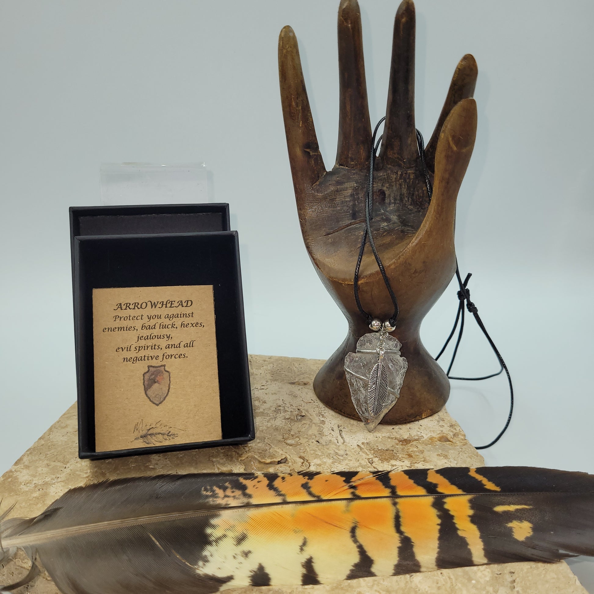 Crafted from clear quartz, this Arrowhead necklace is a powerful guardian, shielding you from all negative energies and offering spiritual balance and healing. An ideal talisman, it offers protection from enemies, bad luck, hexes, jealousy and evil spirits.