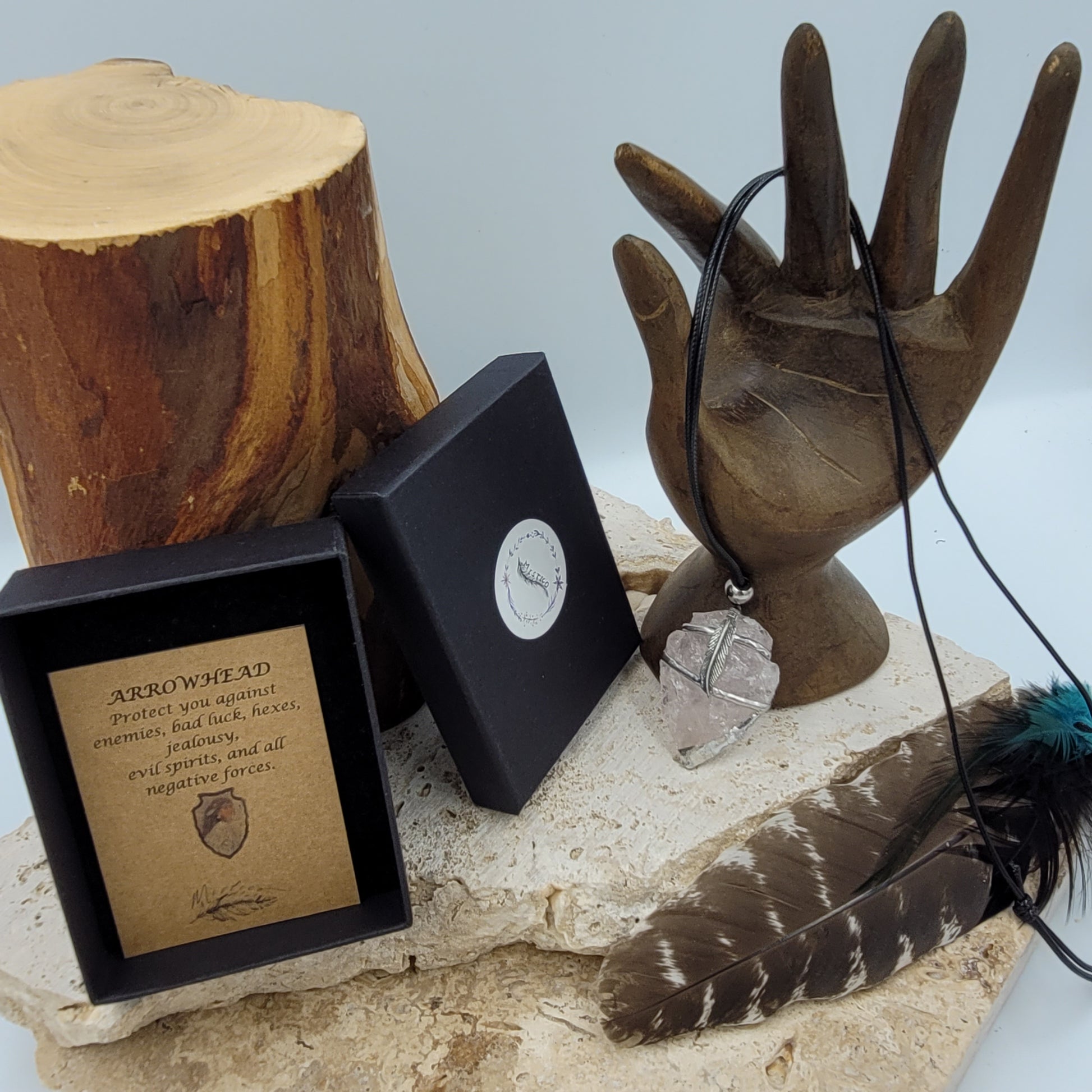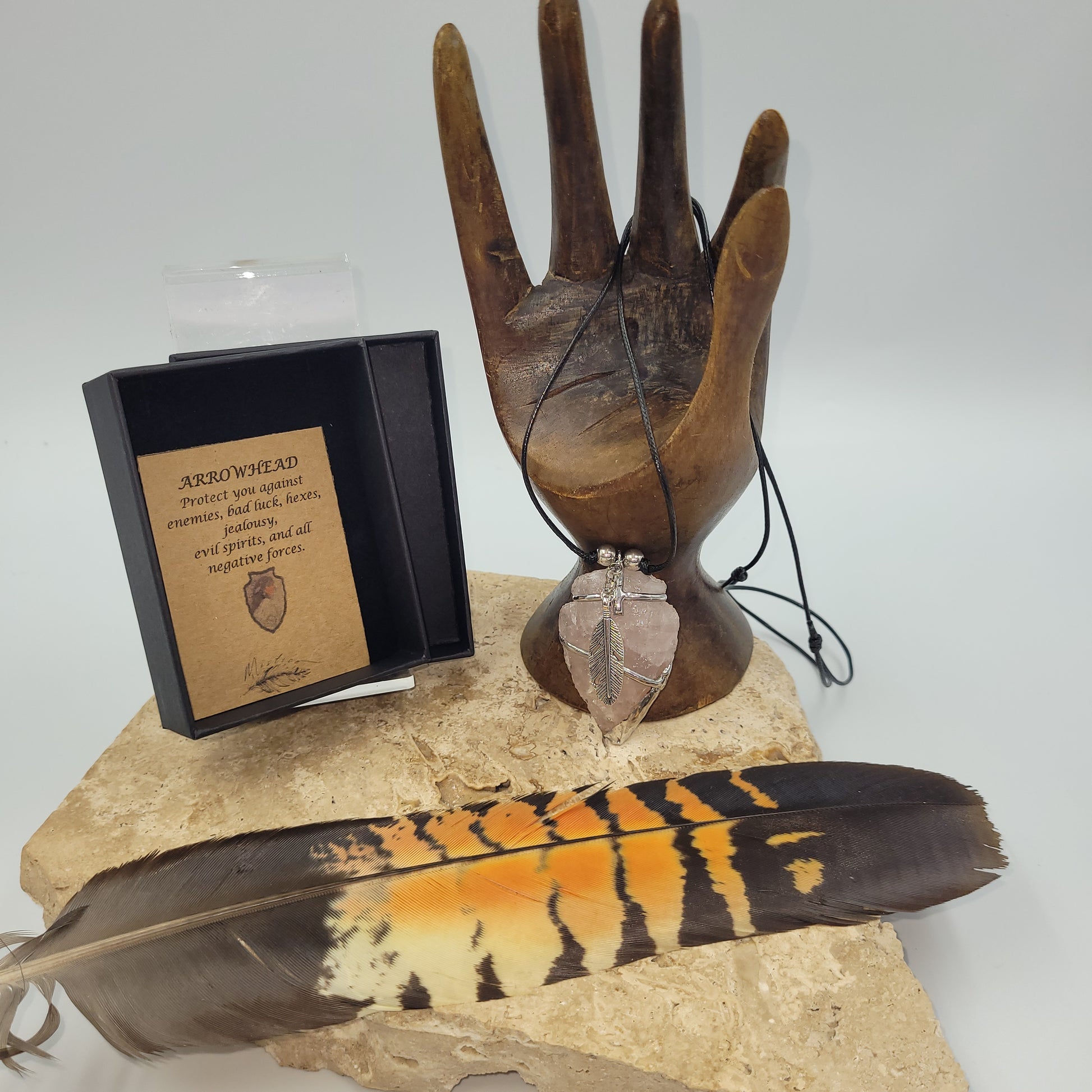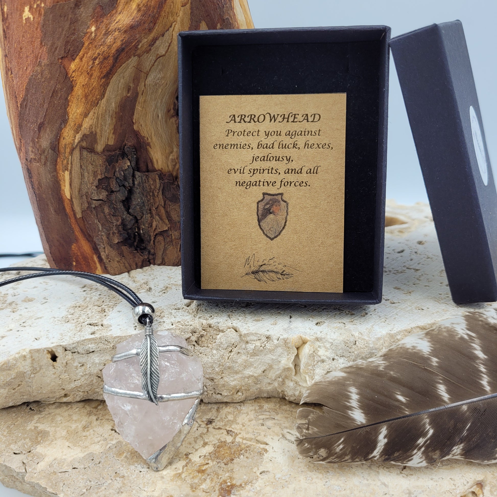 Say goodbye to negative energy with this Rose Quartz Arrowhead Necklace. Crafted from the highest quality gemstone and carefully carved with skilful precision, this stunningly beautiful necklace is believed to provide powerful protection against curses, hexes, bad luck and evil spirits. Meanwhile, the subtle energy of Rose Quartz invites creative inspiration, emotional healing, abundance and self-love.