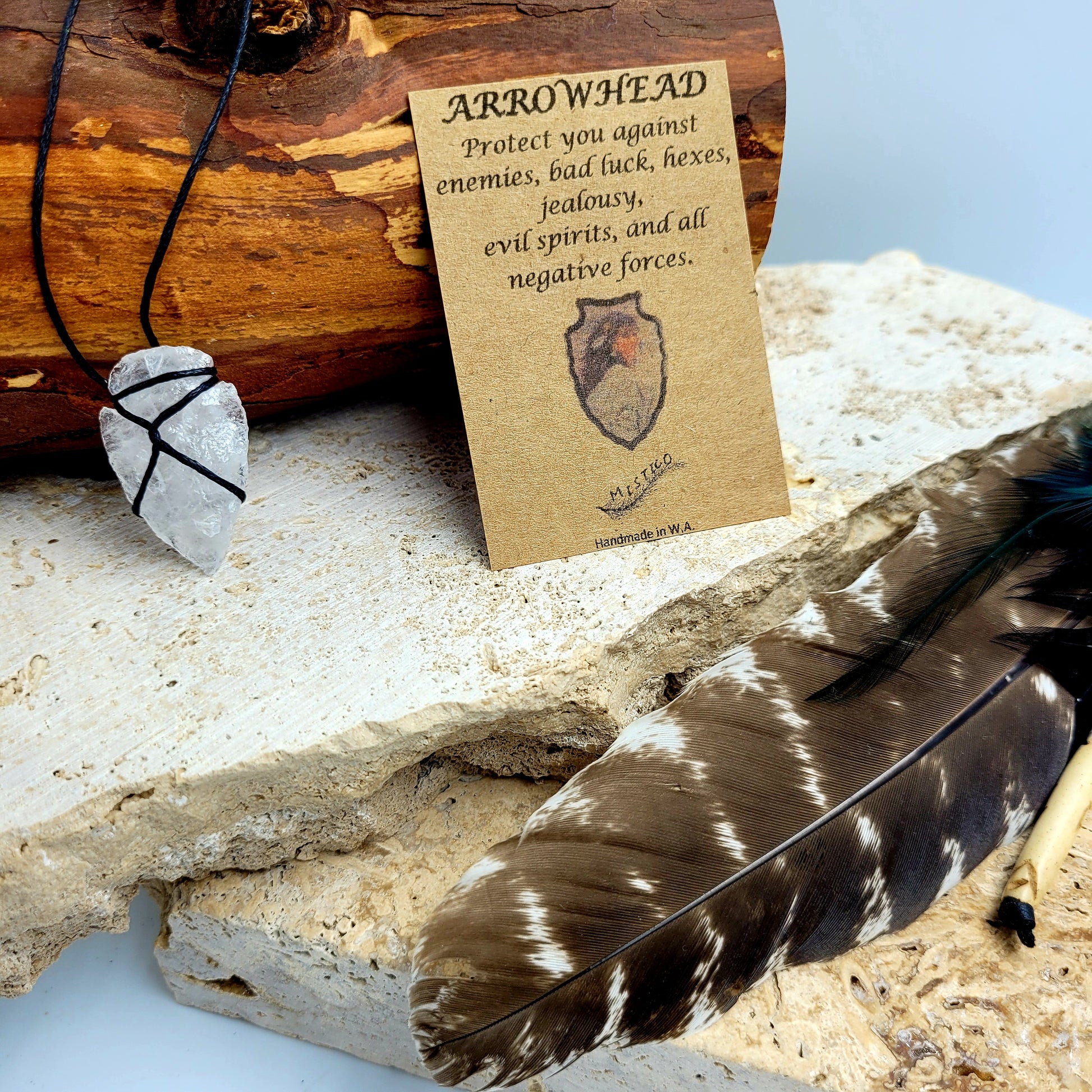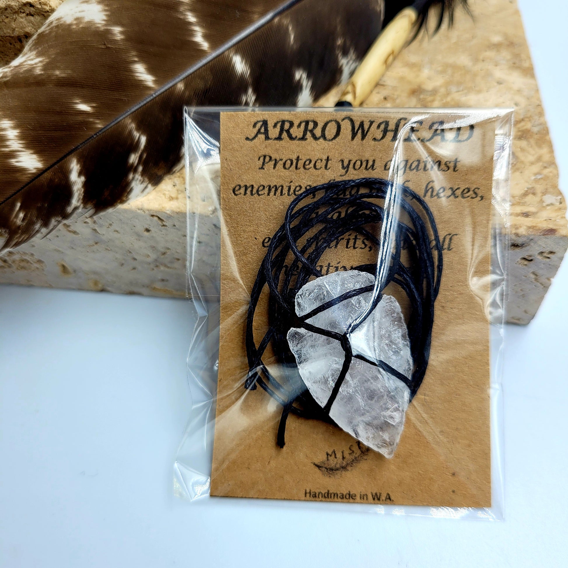 Crafted from clear quartz, this Arrowhead necklace is a powerful guardian, shielding you from all negative energies and offering spiritual balance and healing. An ideal talisman, it offers protection from enemies, bad luck, hexes, jealousy and evil spirits.