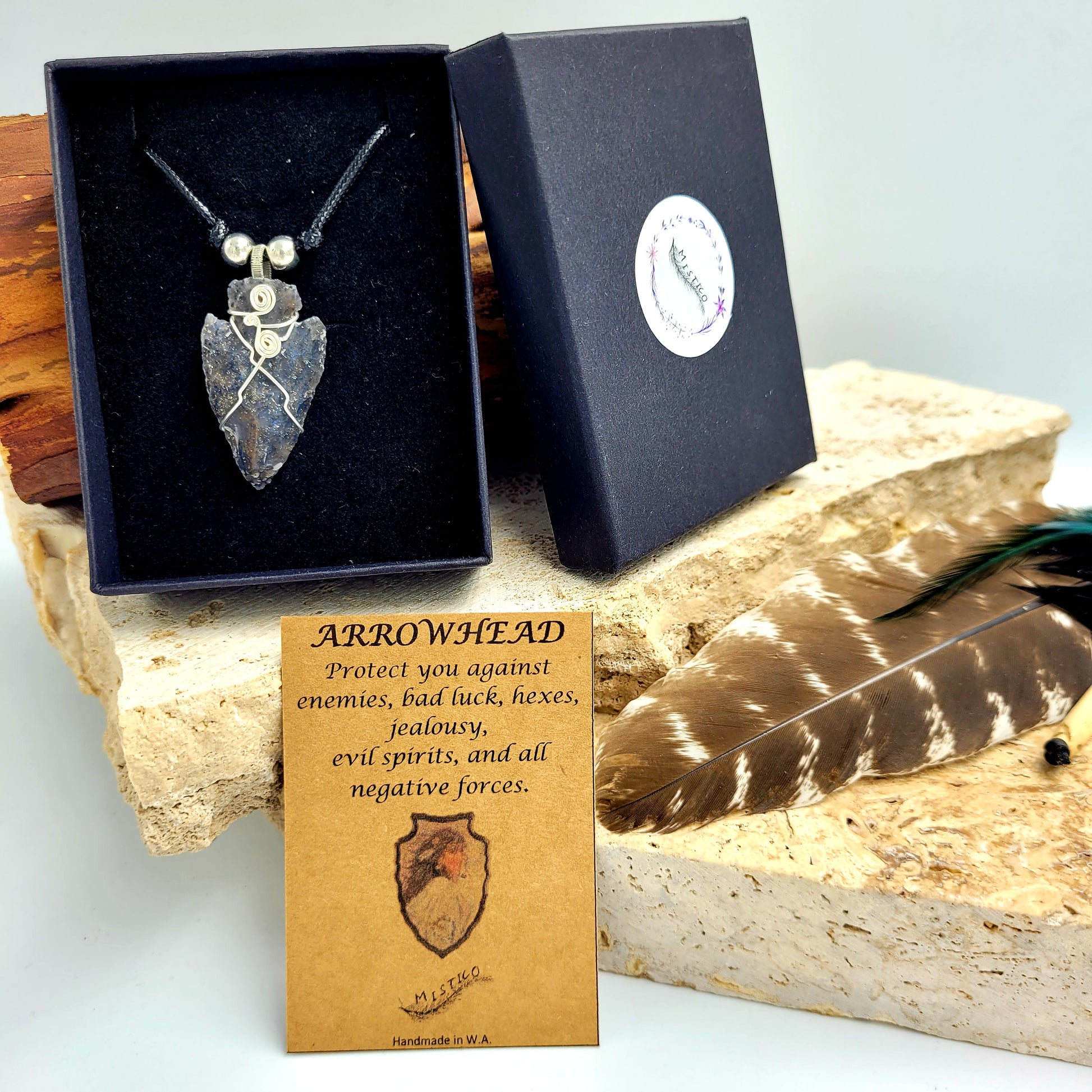 Wear the black jasper arrowhead necklace to protect yourself from negativity and align with higher vibrations. It is a powerful source of protection from enemies, bad luck, hexes, jealousy, and evil spirits. Additionally, jasper is known for its healing properties, providing relief from pain and ailments. Equip yourself with this powerful, grounding gem to stay safe and connected.