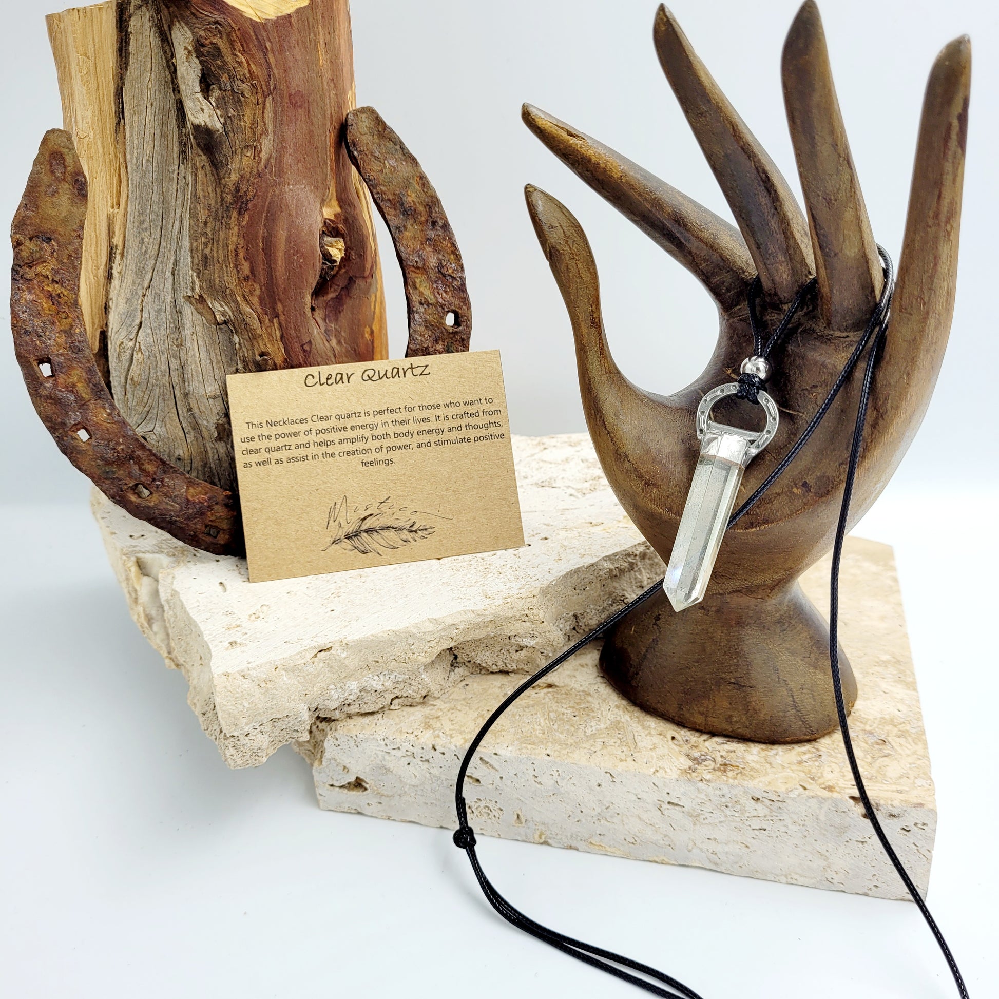 Adorn yourself with a Clear Quartz Necklace, crafted from natural clear quartz. This quartz helps amplify body energy and thoughts, stimulating positive feelings and creating power. Clear quartz is ideal for those looking to bring in the power of positive energy into their life.