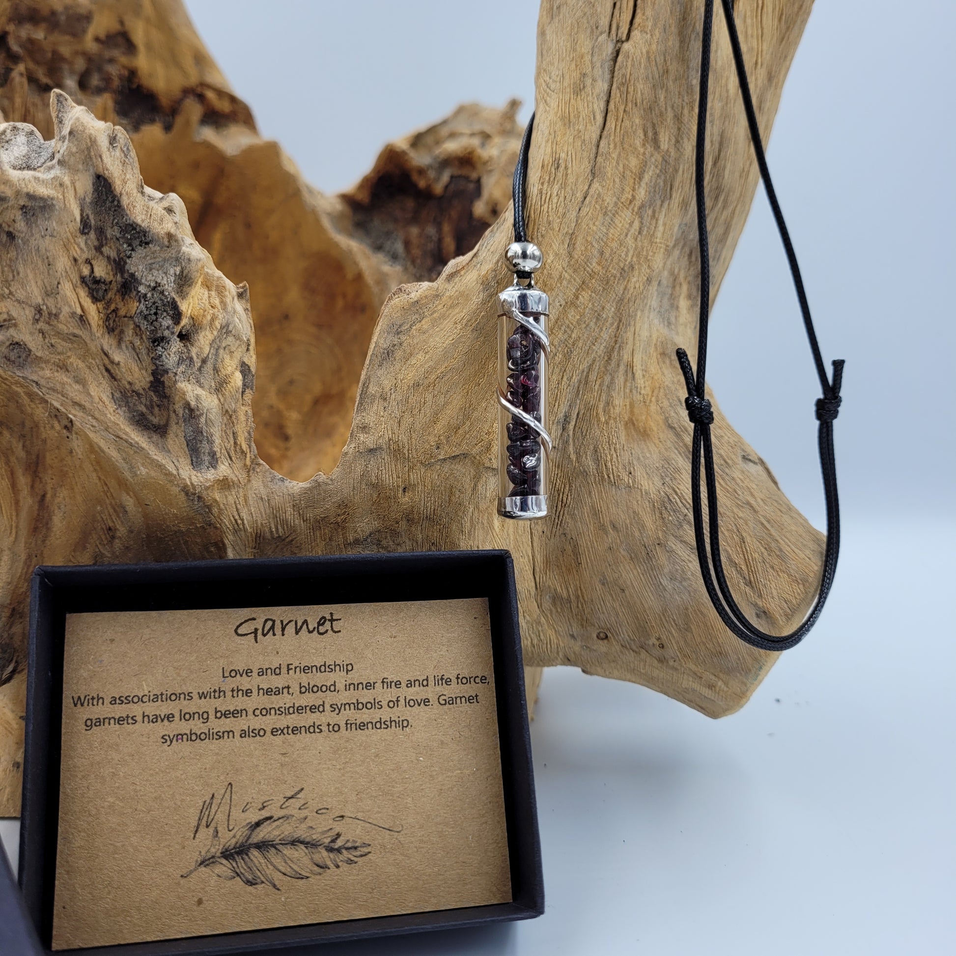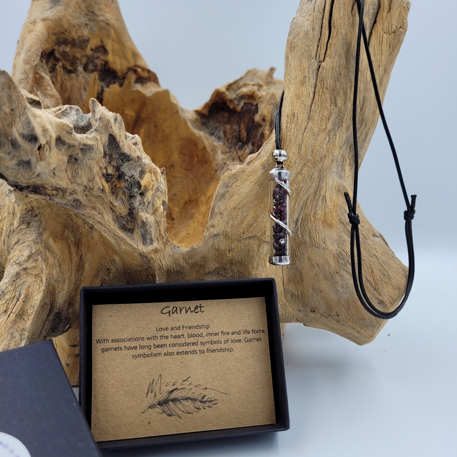 Our Crystal Filled Tube Necklaces are a beautiful piece that you can wear to promote healing and protection wherever you go. With its beautiful crystals encased in a tube necklace pendant, it is a powerful accessory for those looking for daily support from their chosen stone. Put on this necklace and feel surrounded by calming, protective energies.