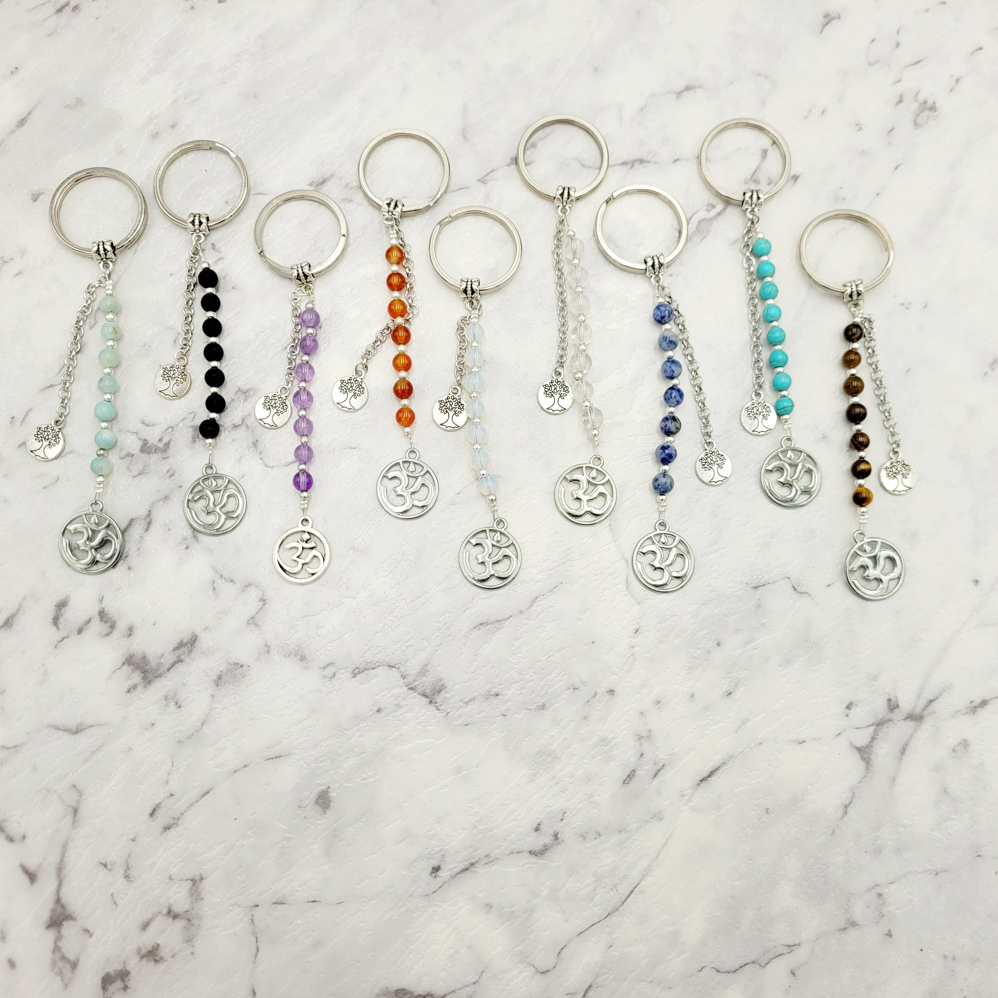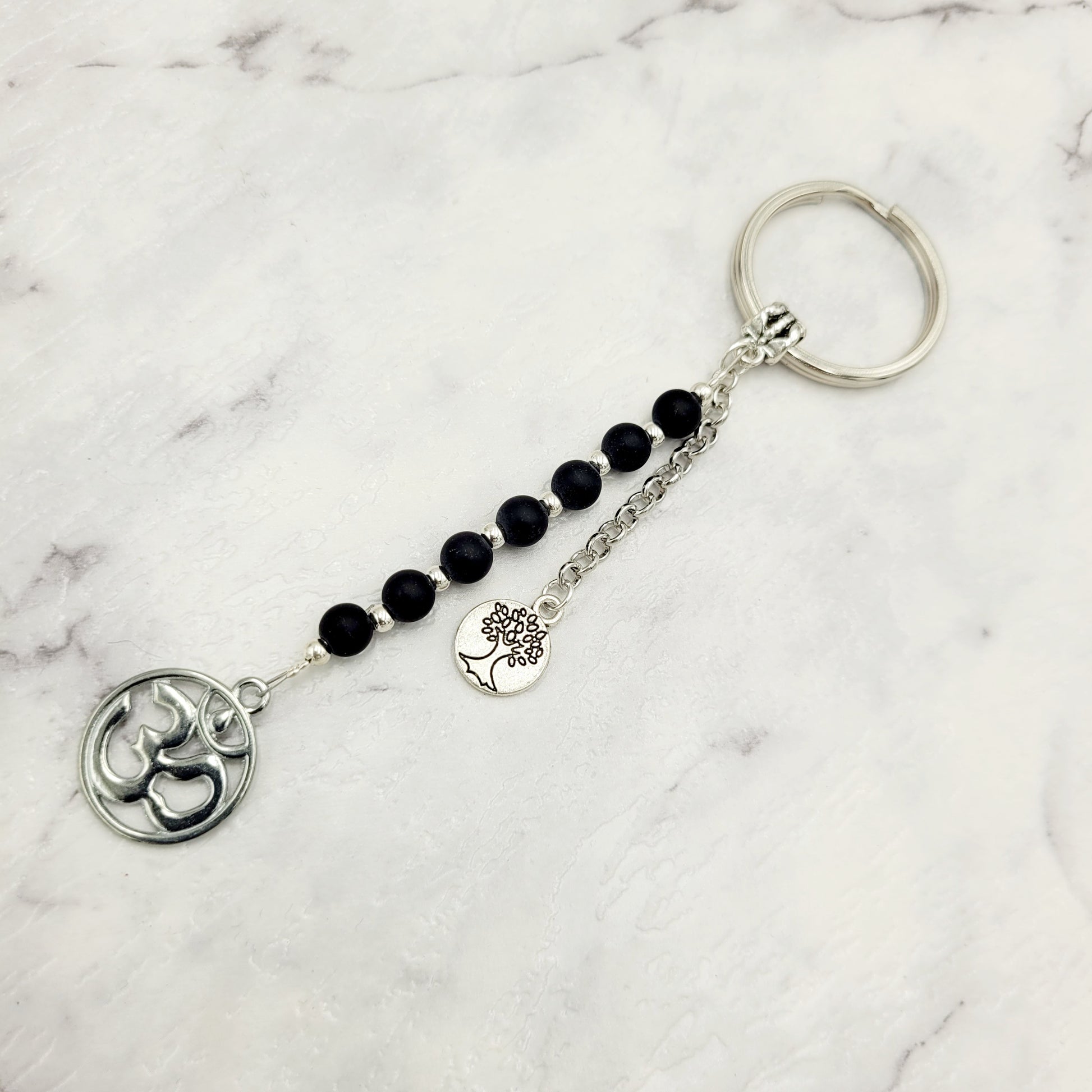 Carry a reminder of peace and protection wherever you go with this Obsidian Om Crystal Keyring. Crafted with a piece of obsidian-known for grounding, bringing truth-and an Om charm to evoke the sound of creation, it's a perfect way to stay connected to your heart, mind and soul.