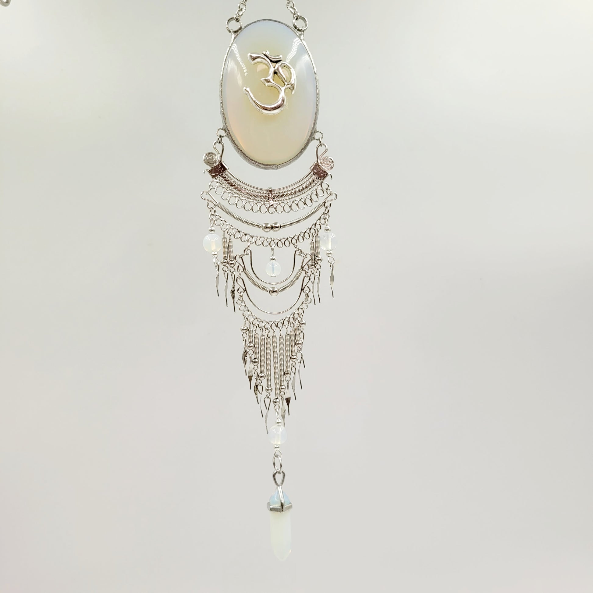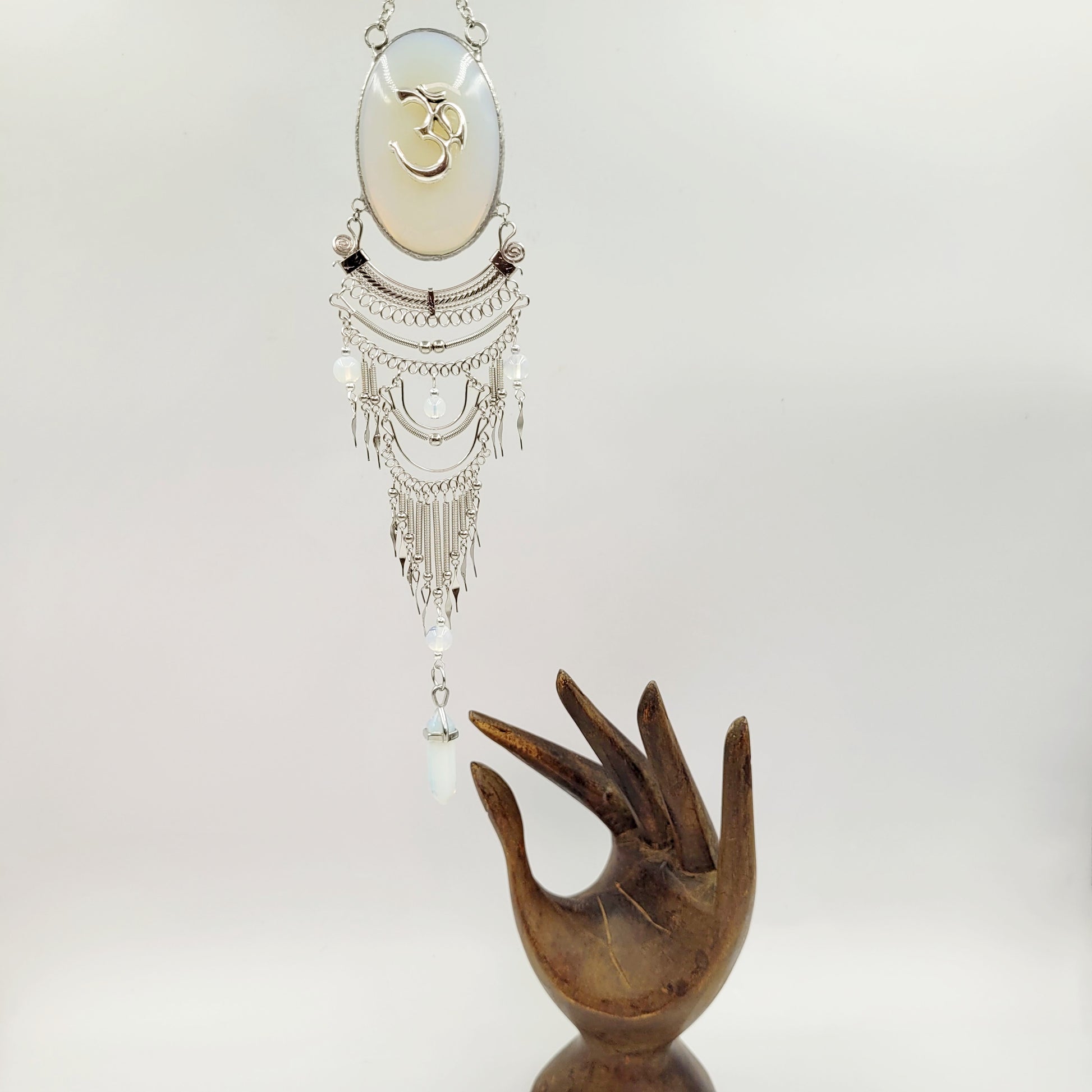 The Opalite Hanging Oval is a beautiful and unique piece of decor meant to enhance the energy of your home. Crafted from opalite, this piece is known to promote mental clarity and help to keep the energy in your home peaceful and calm. A special addition to any home.