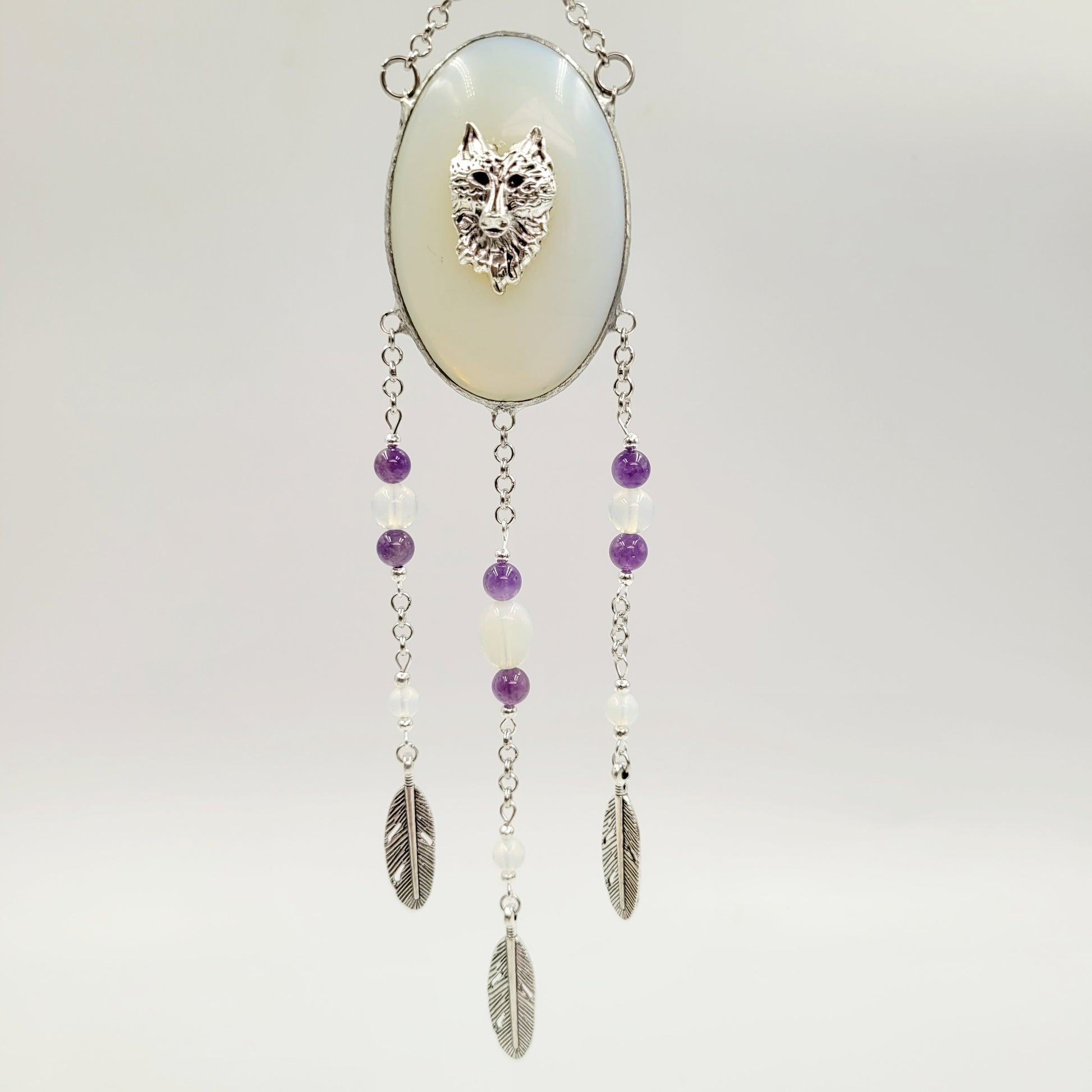 The Opalite Hanging Oval is a beautiful and unique piece of decor meant to enhance the energy of your home. Crafted from opalite, this piece is known to promote mental clarity and help to keep the energy in your home peaceful and calm. A special addition to any home.