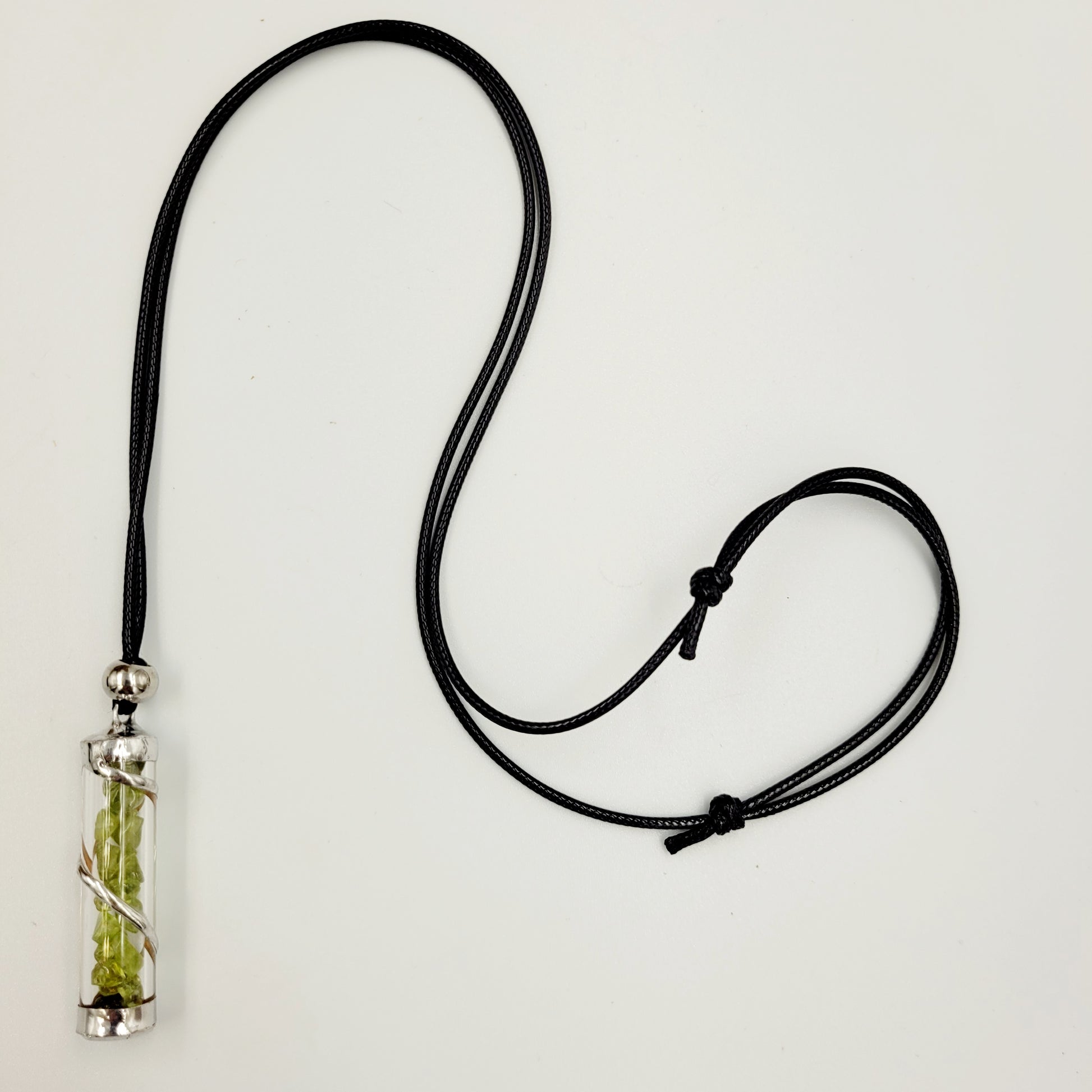 Peridot Crystal Filled Tube Necklace