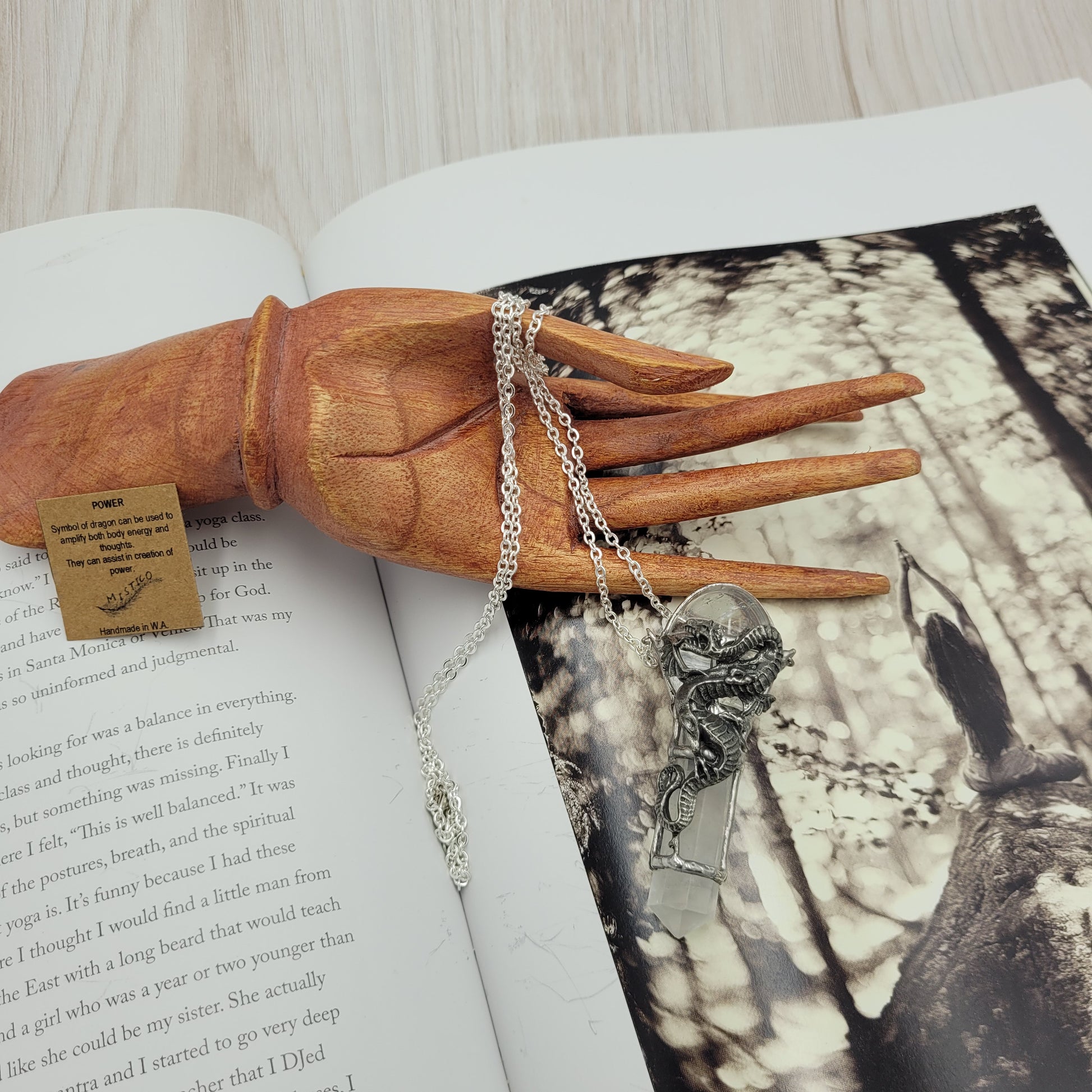 The Power Wand is a powerful tool crafted to amplify and protect. Made with Clear Quartz, it helps increase the energy in both your body and your thoughts. Plus, the Dragon totem symbolizes good luck and fertility - perfect for manifesting your dreams.