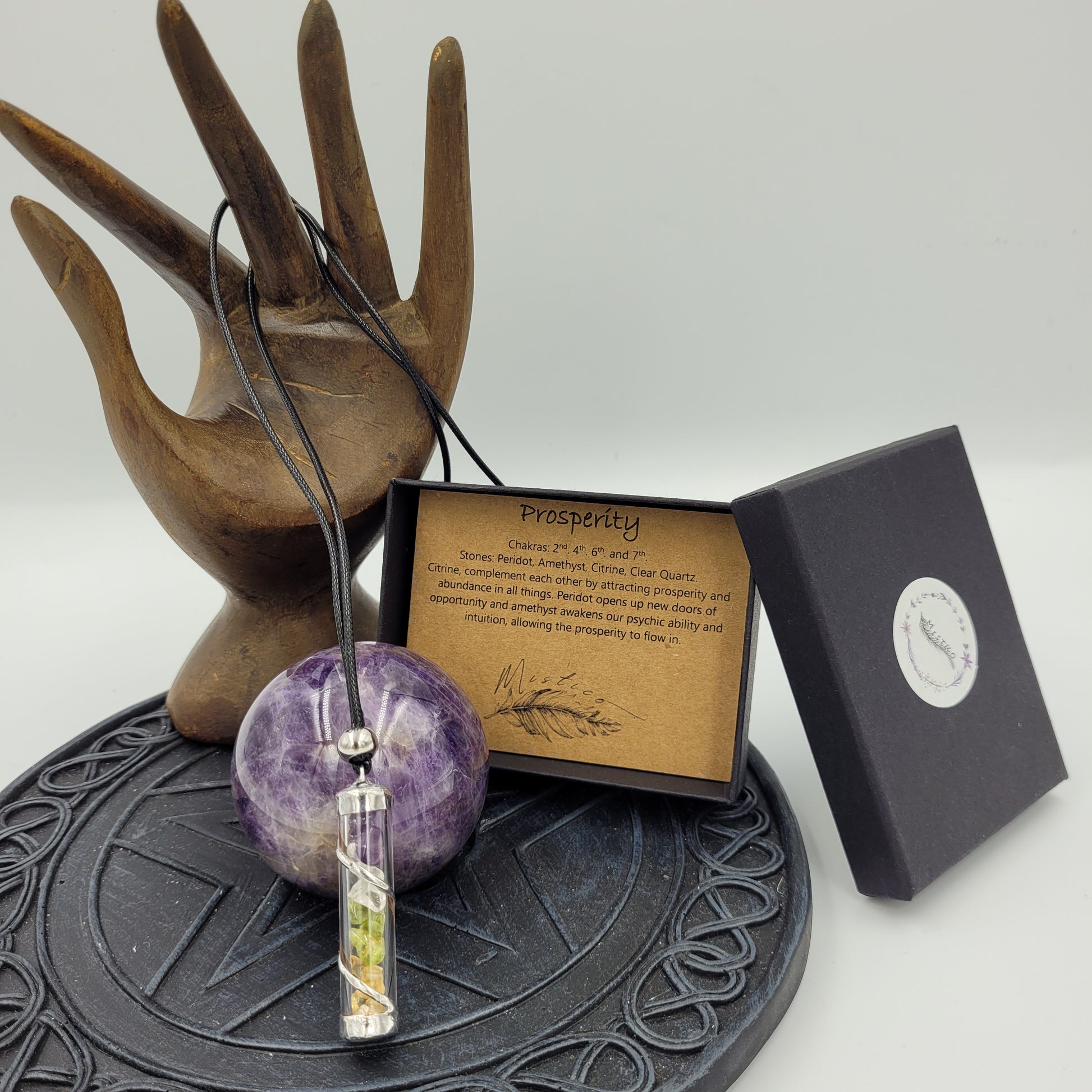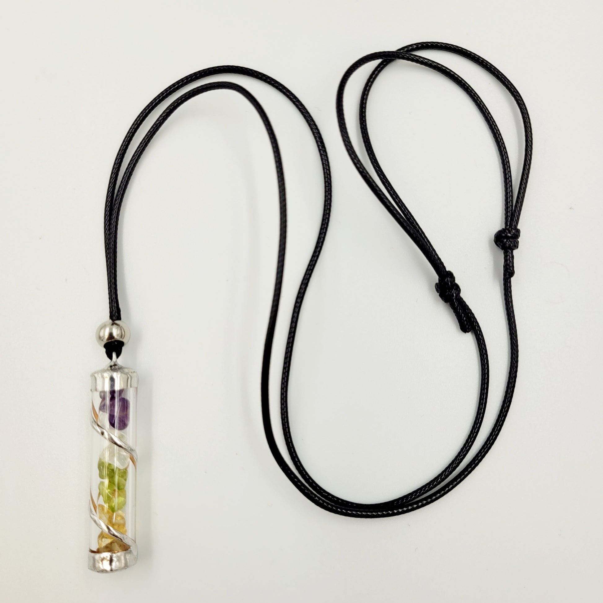 Our Crystal Filled Tube Necklaces are a beautiful piece that you can wear to promote healing and protection wherever you go. With its beautiful crystals encased in a tube necklace pendant, it is a powerful accessory for those looking for daily support from their chosen stone. Put on this necklace and feel surrounded by calming, protective energies.