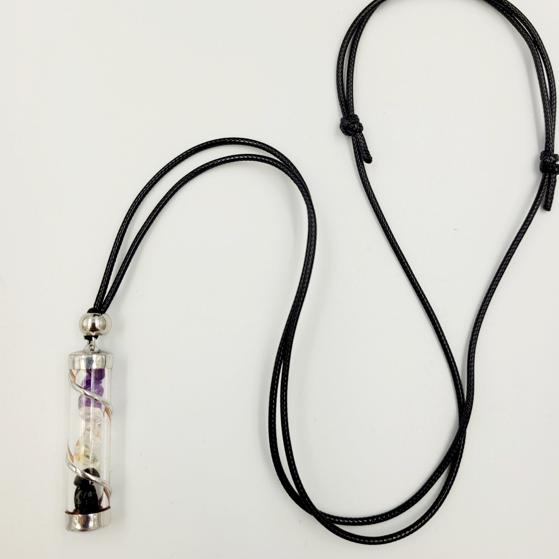 Our Crystal Filled Tube Necklaces are a beautiful piece that you can wear to promote healing and protection wherever you go. With its beautiful crystals encased in a tube necklace pendant, it is a powerful accessory for those looking for daily support from their chosen stone. Put on this necklace and feel surrounded by calming, protective energies.