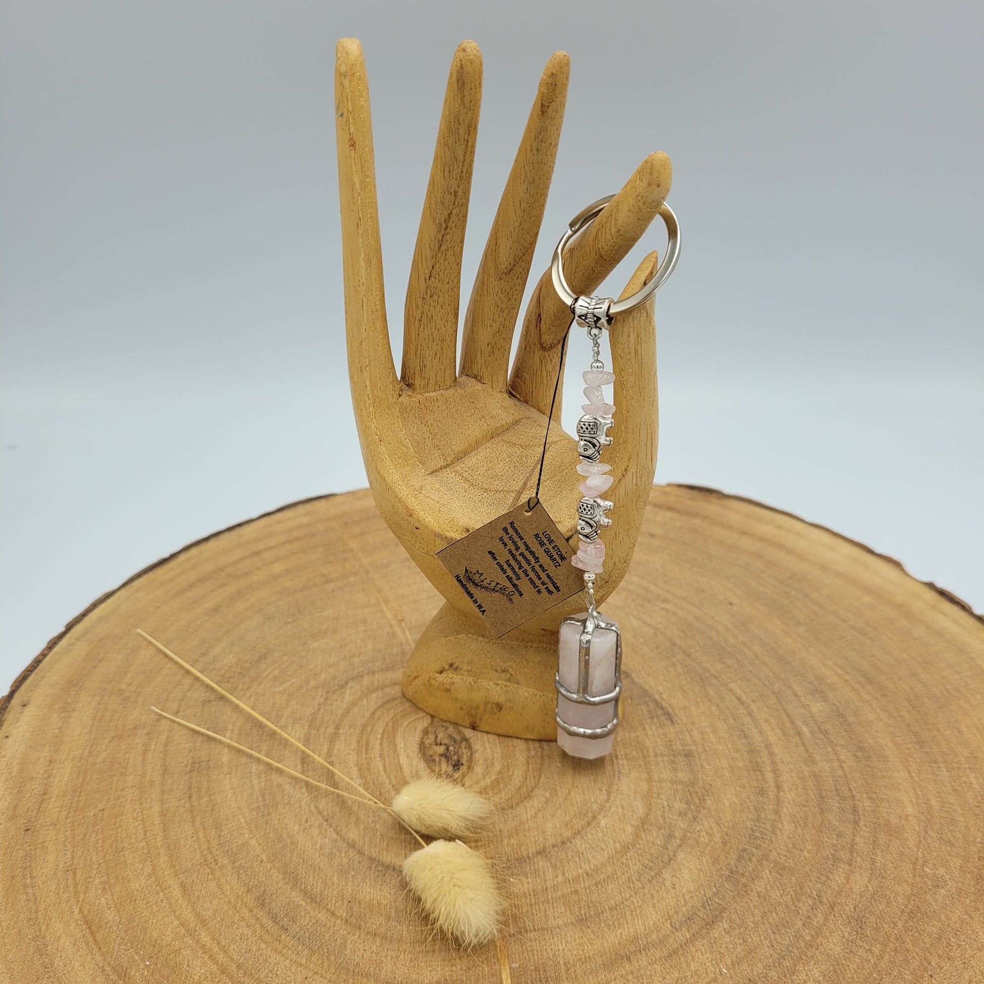 Rose Quartz Crystal Point Keyring
