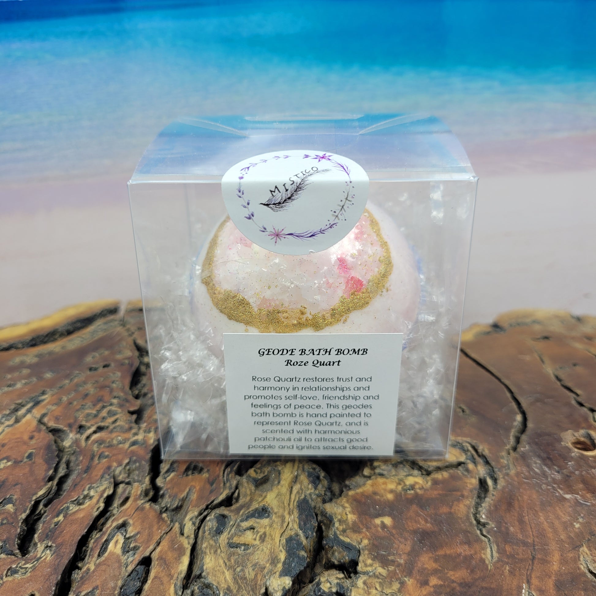 Rose Quartz restores trust and harmony in relationships and promotes self-love, friendship and feelings of peace. This geodes bath bomb is hand painted to represent Rose Quartz, and is scented with harmonious patchouli oil to attracts good people and ignites sexual desire.