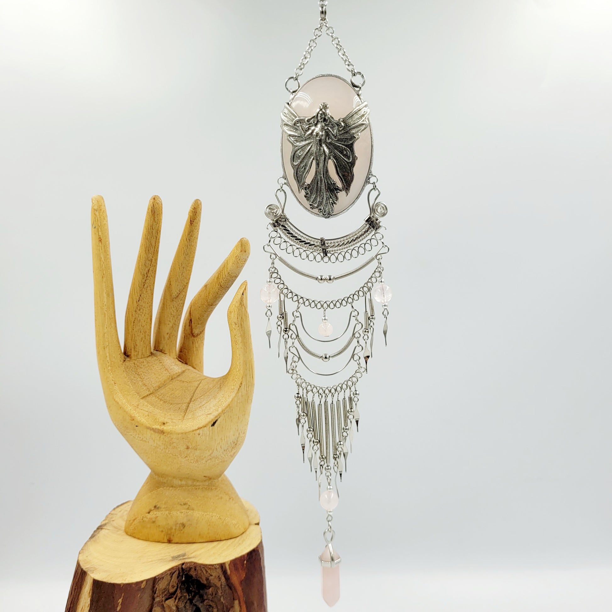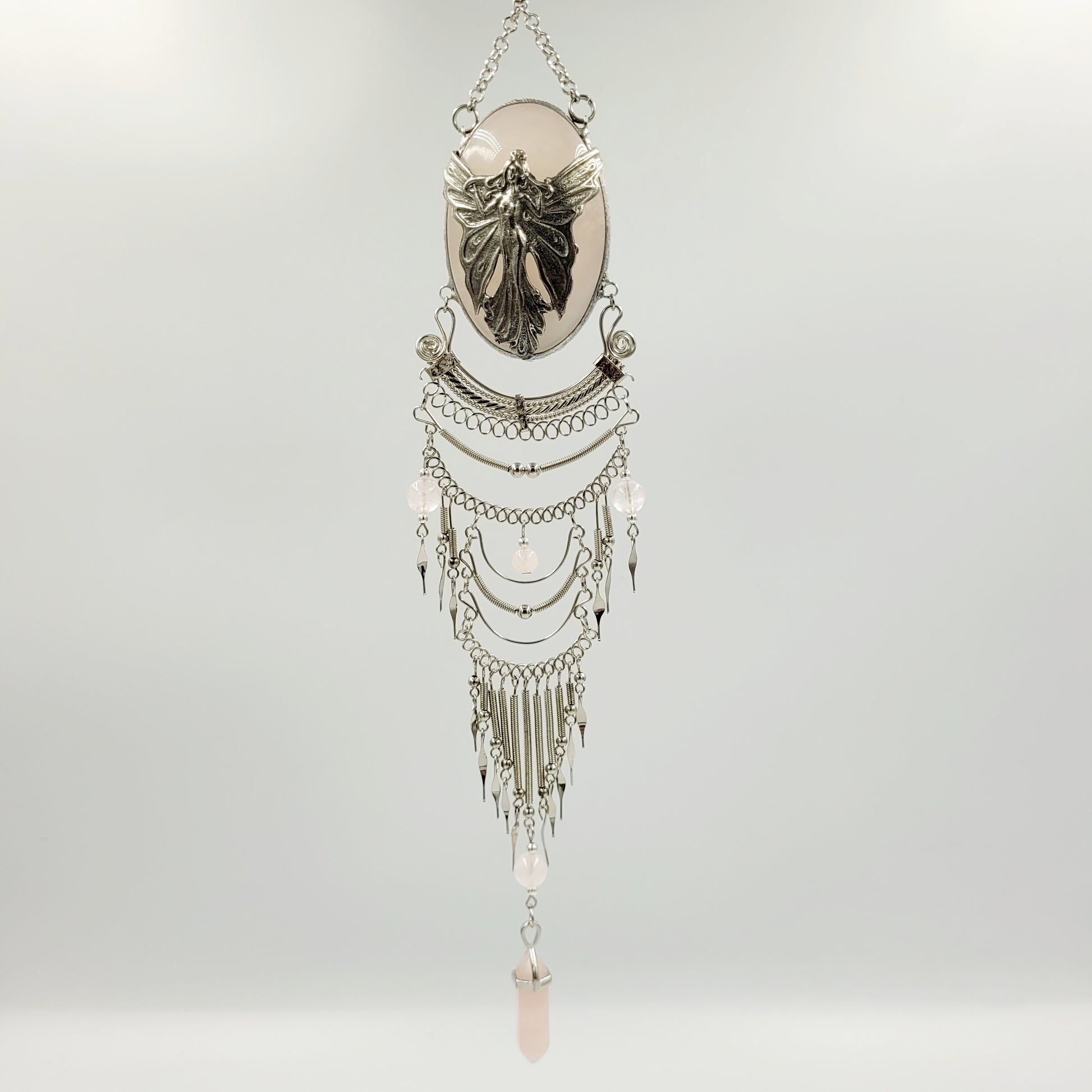 Rose Quartz Hanging Oval / Fairy Wing