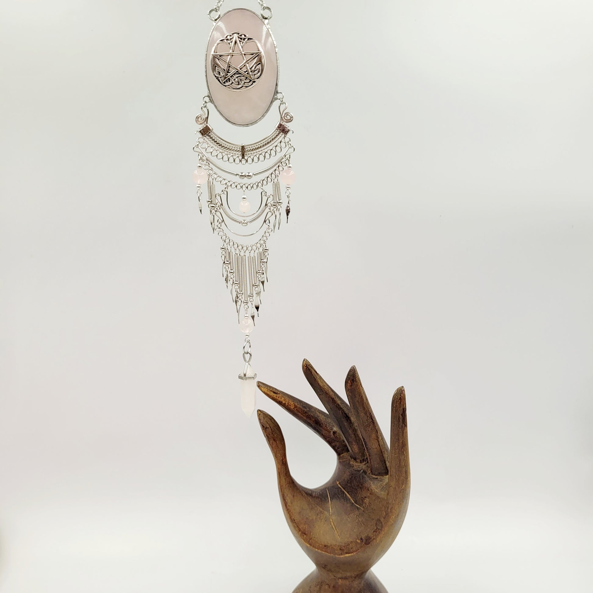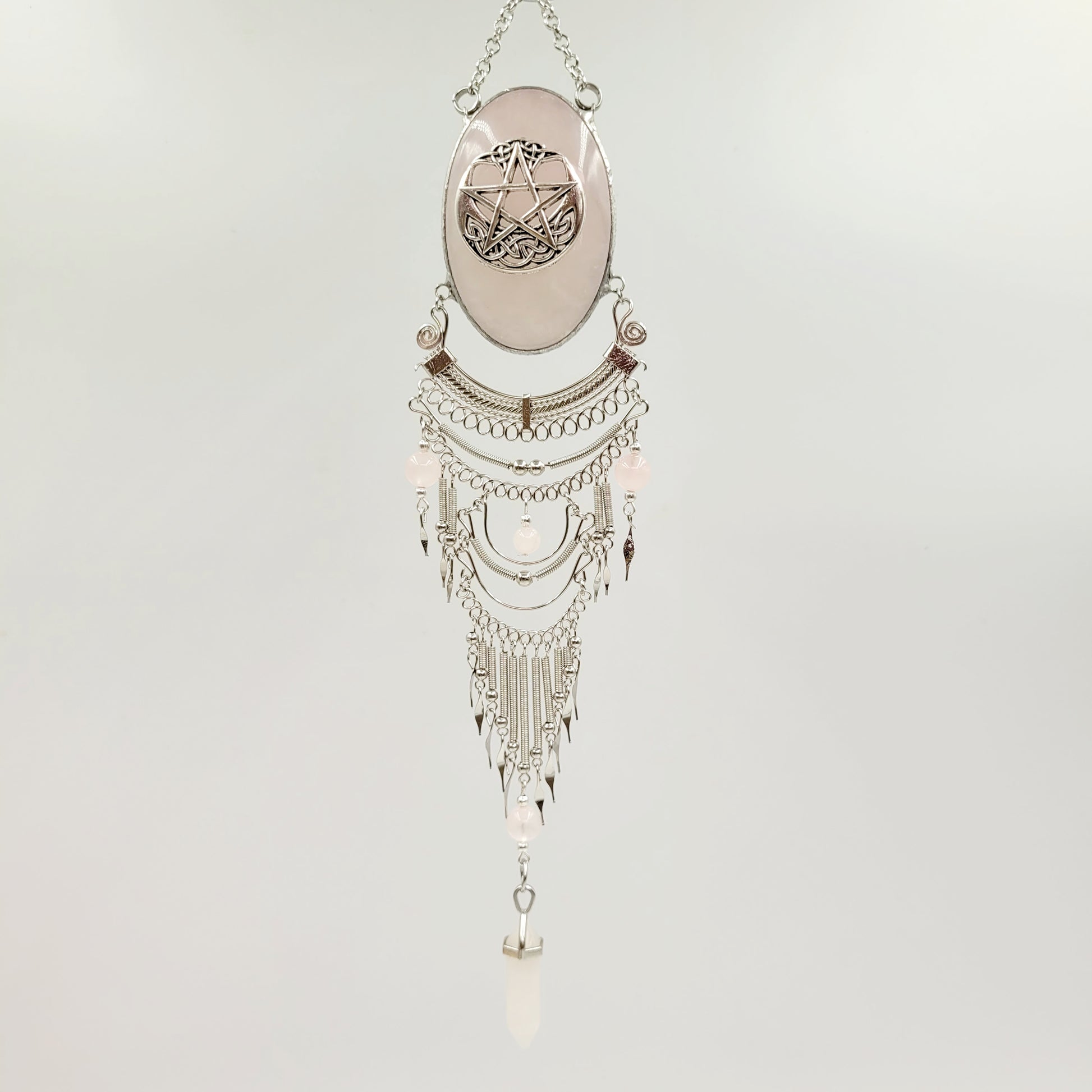 Rose Quartz Hanging Oval/ Pentagram