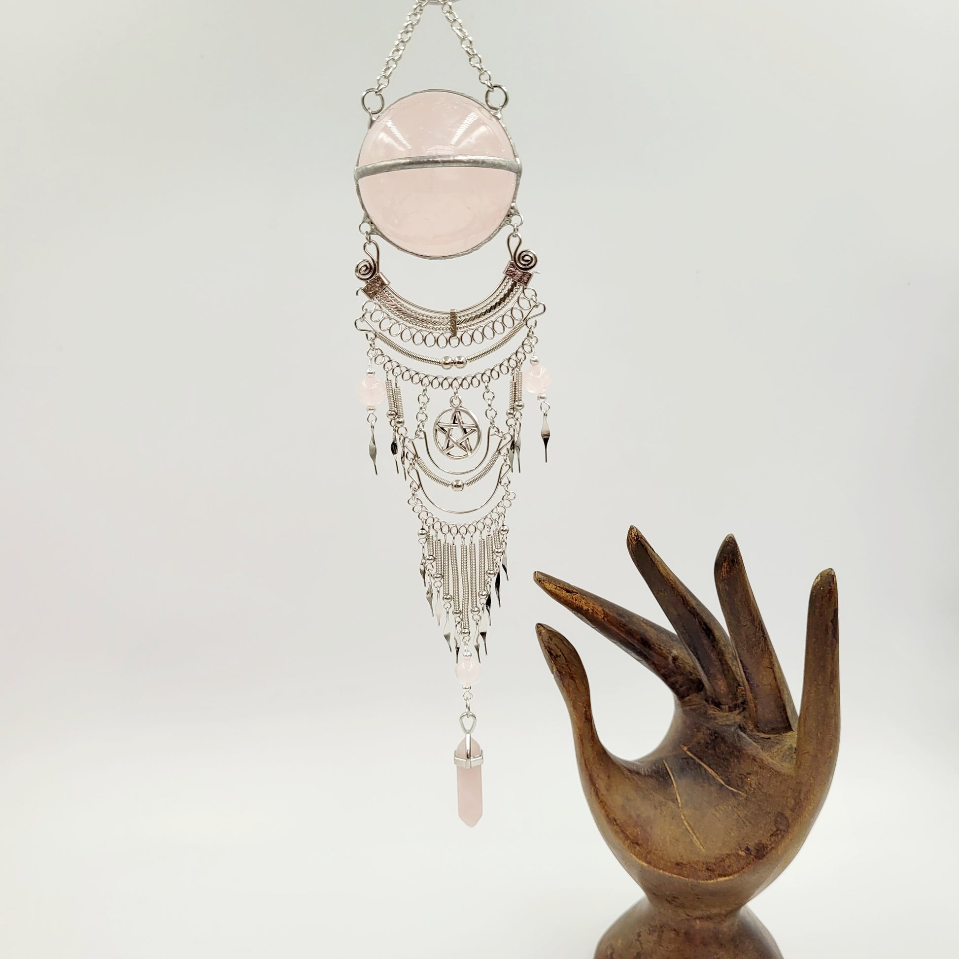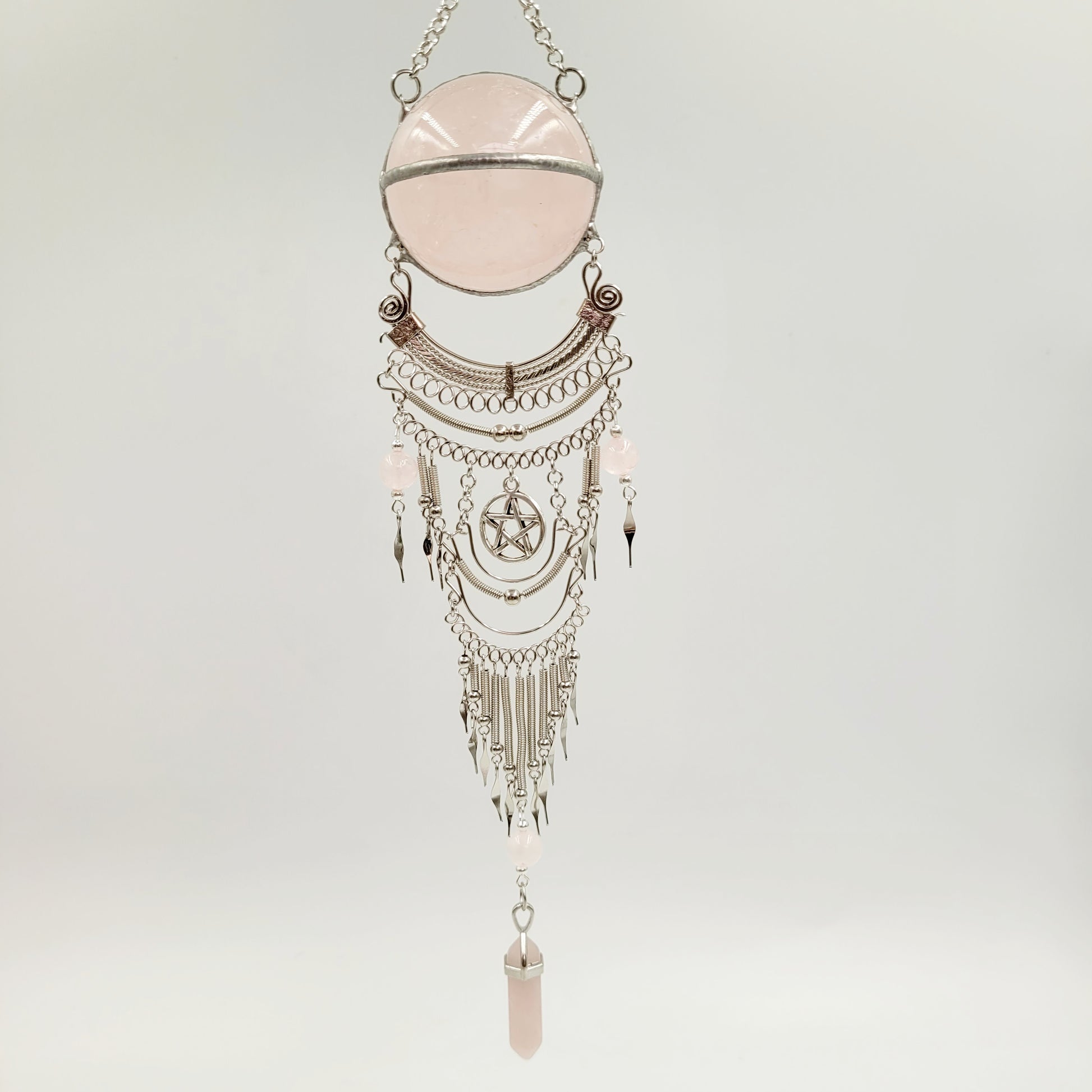 Rose Quartz Hanging Sphere / Pentagram