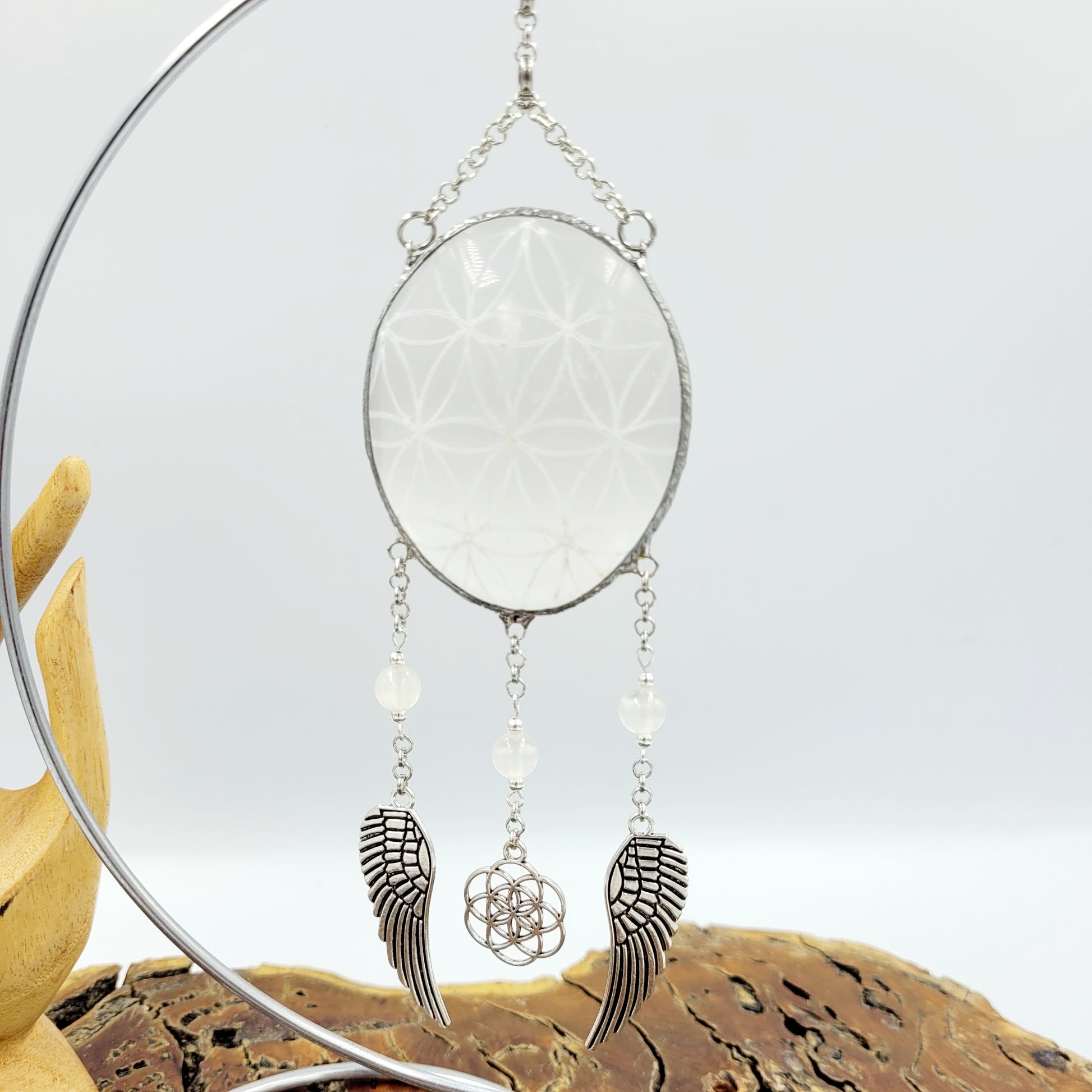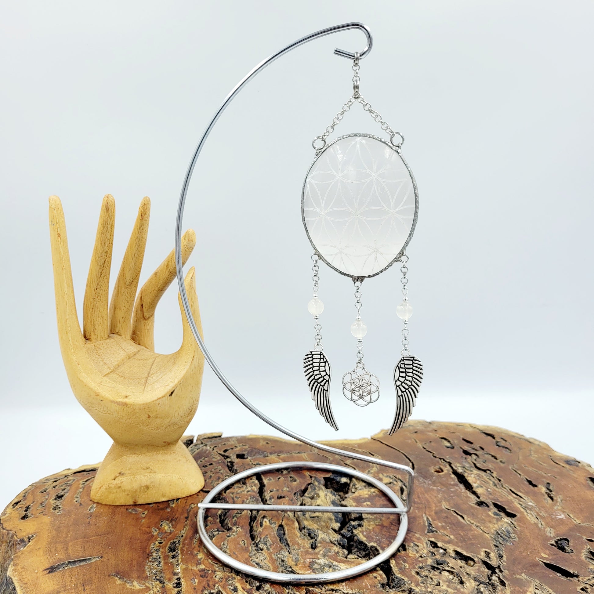 Selenite Hanging Oval with Stand