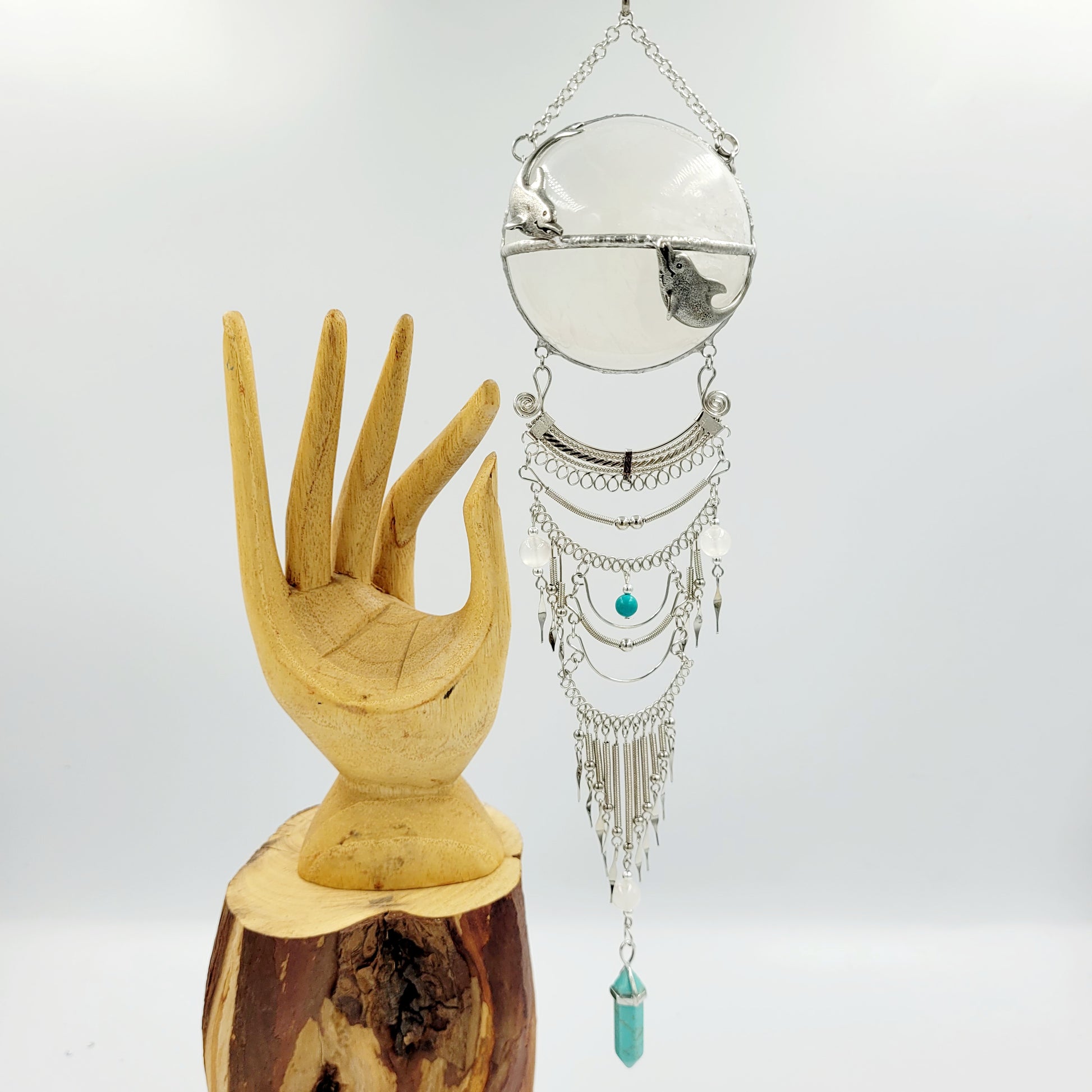 Selenite Hanging Sphere/ Dolphin