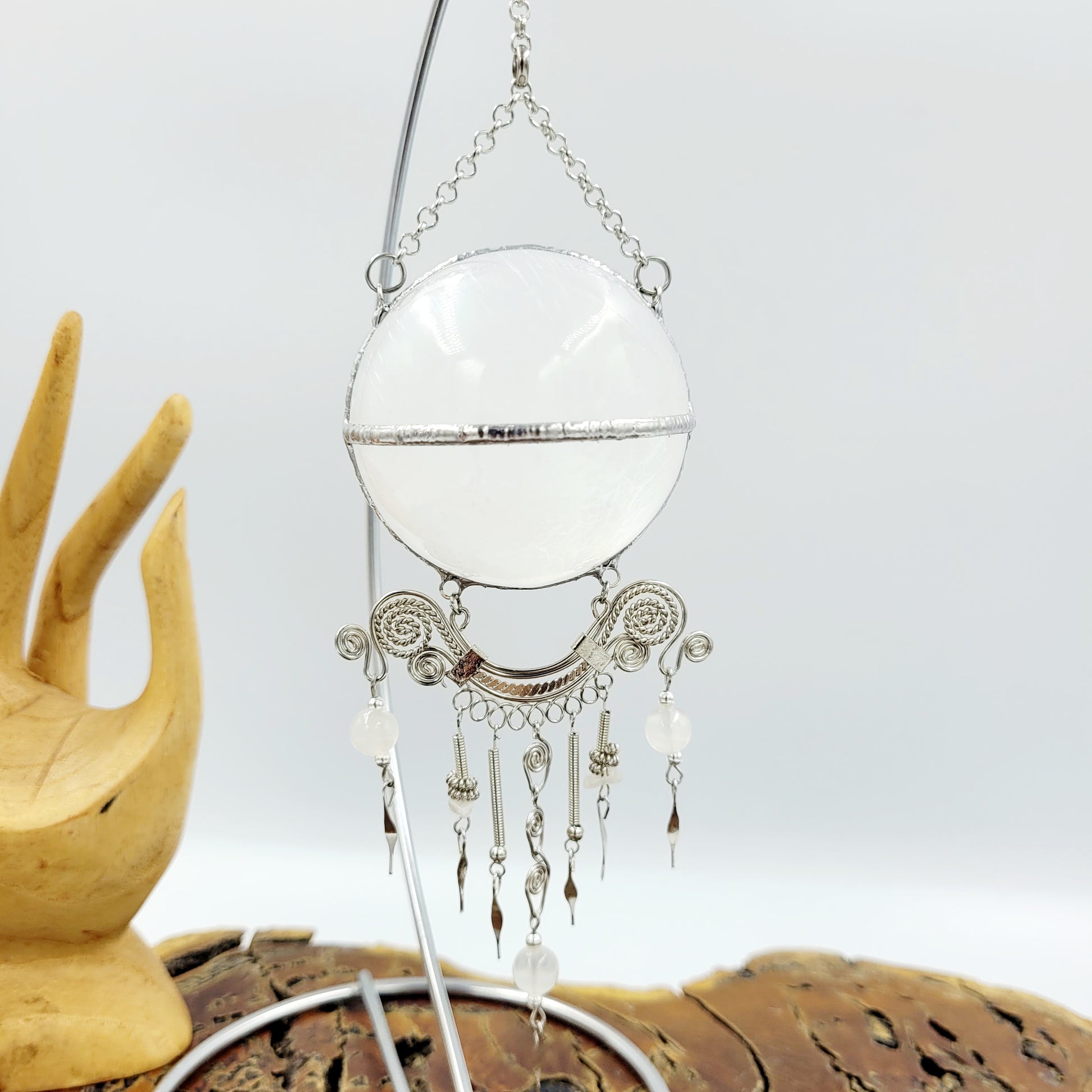 Selenite Hanging Sphere with Stand