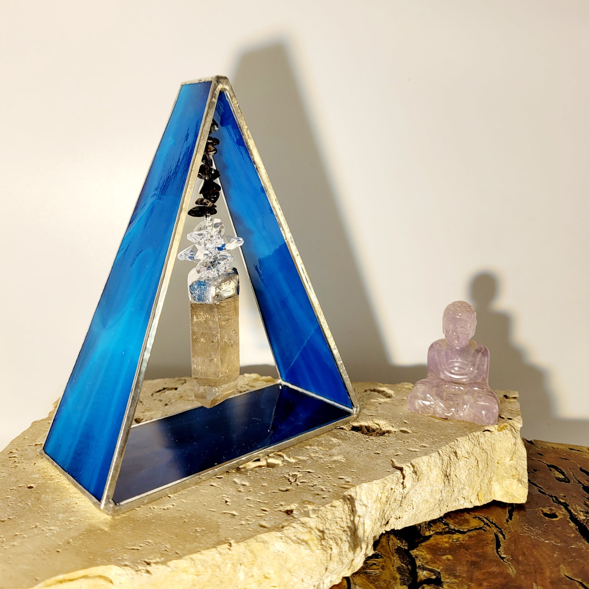 This Smoky Quartz Stained Glass Triangle is the perfect addition to any home. Made with genuine smoky quartz, it disperses fear and lifts depression and negativity. Providing emotional calmness, it can be placed in any room to bring an air of serenity and tranquility.
