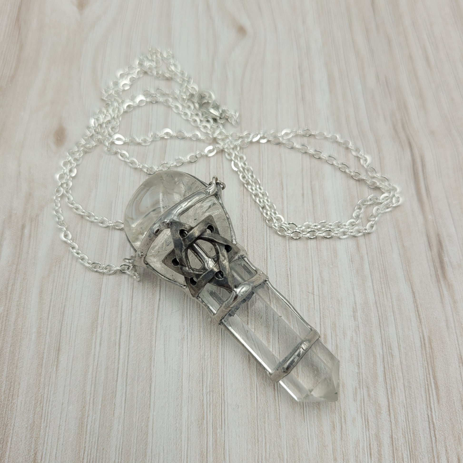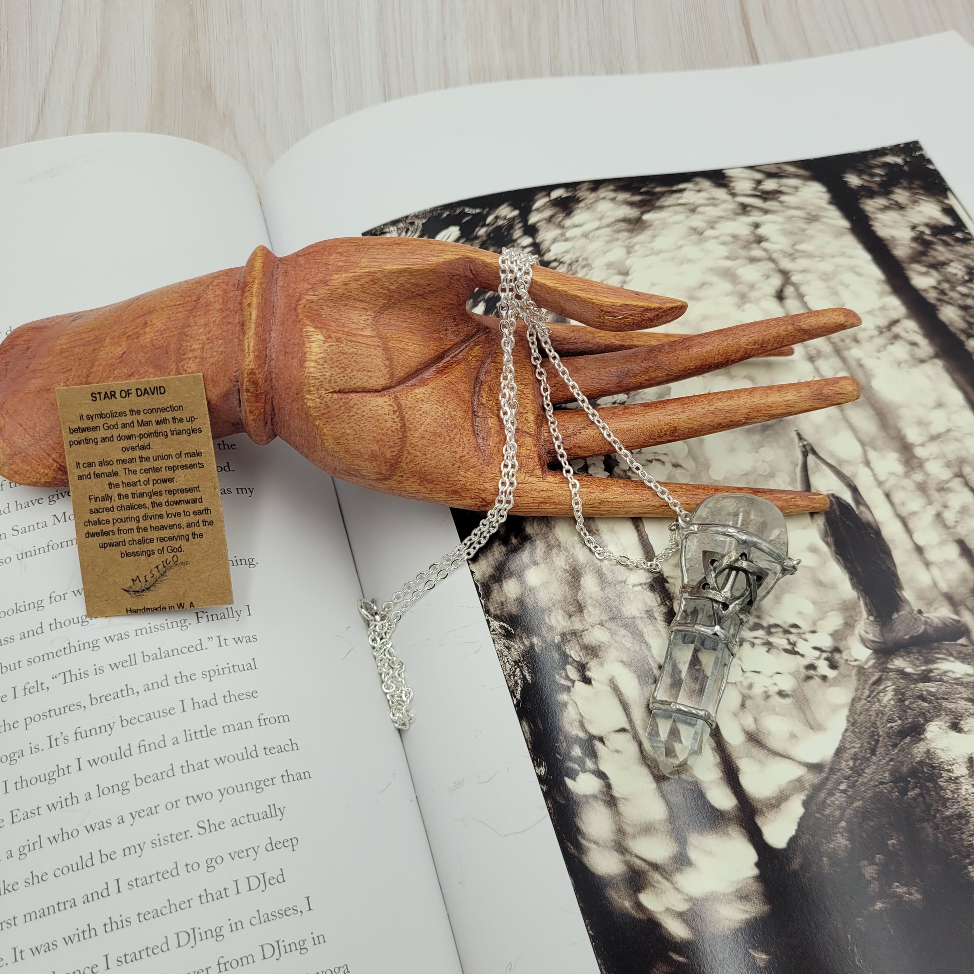 Unlock your inner power and wisdom with this beautiful Star of David Crystal Wand Necklace, crafted from Clear Quartz. The radiant energy of the quartz amplifies both your body and thoughts, helping you connect with the interconnected universe and uncover its mysteries. Find strength and clarity with this powerful symbol.