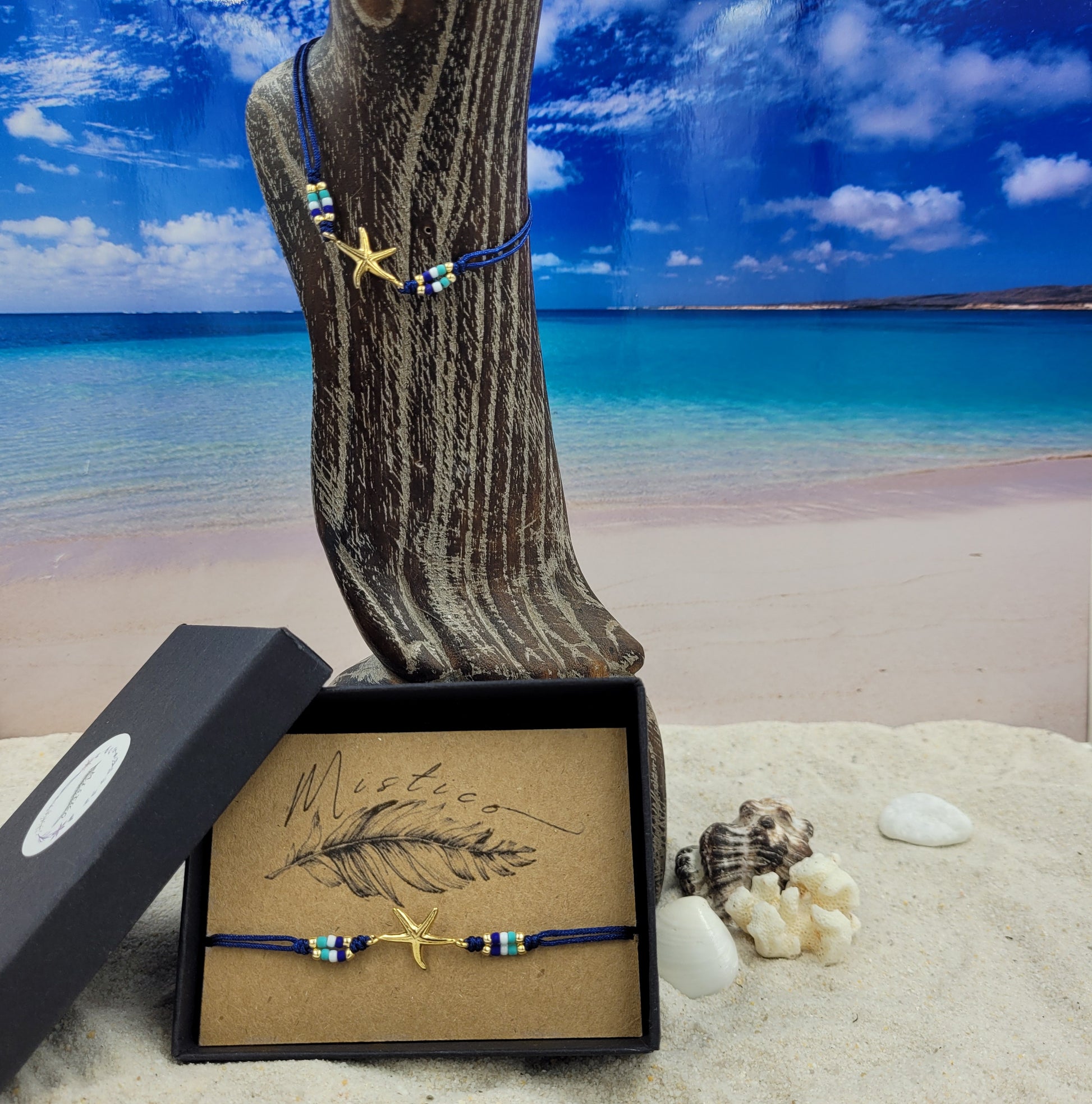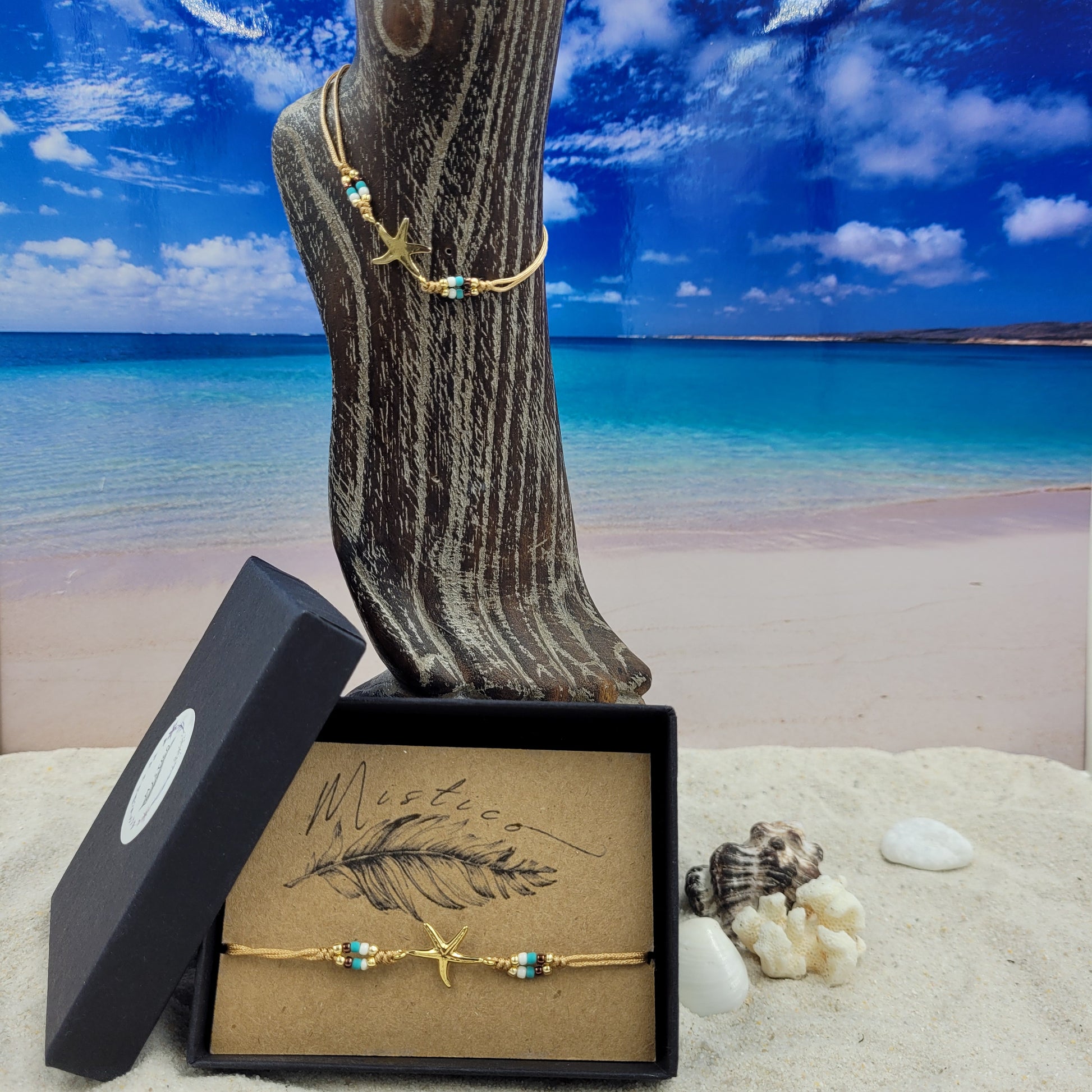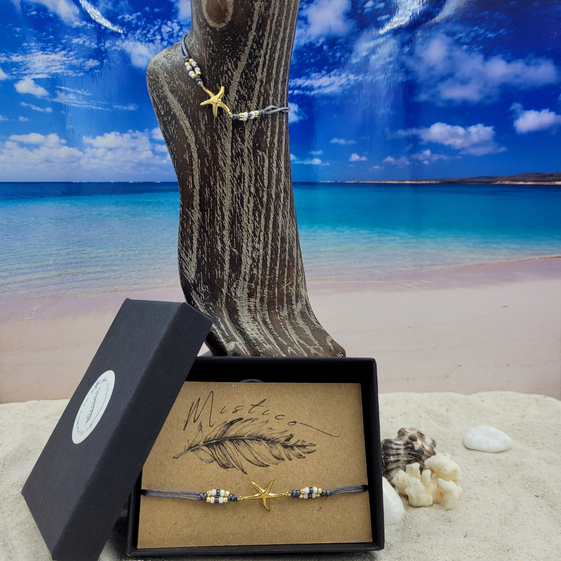 This beautiful starfish bracelet or anklet is a perfect reminder of the infinite love and wisdom that you carry with you. Representing guidance, vigilance, inspiration, brilliance, and intuition, this piece of jewelry is sure to be a unique reminder of your inner light.