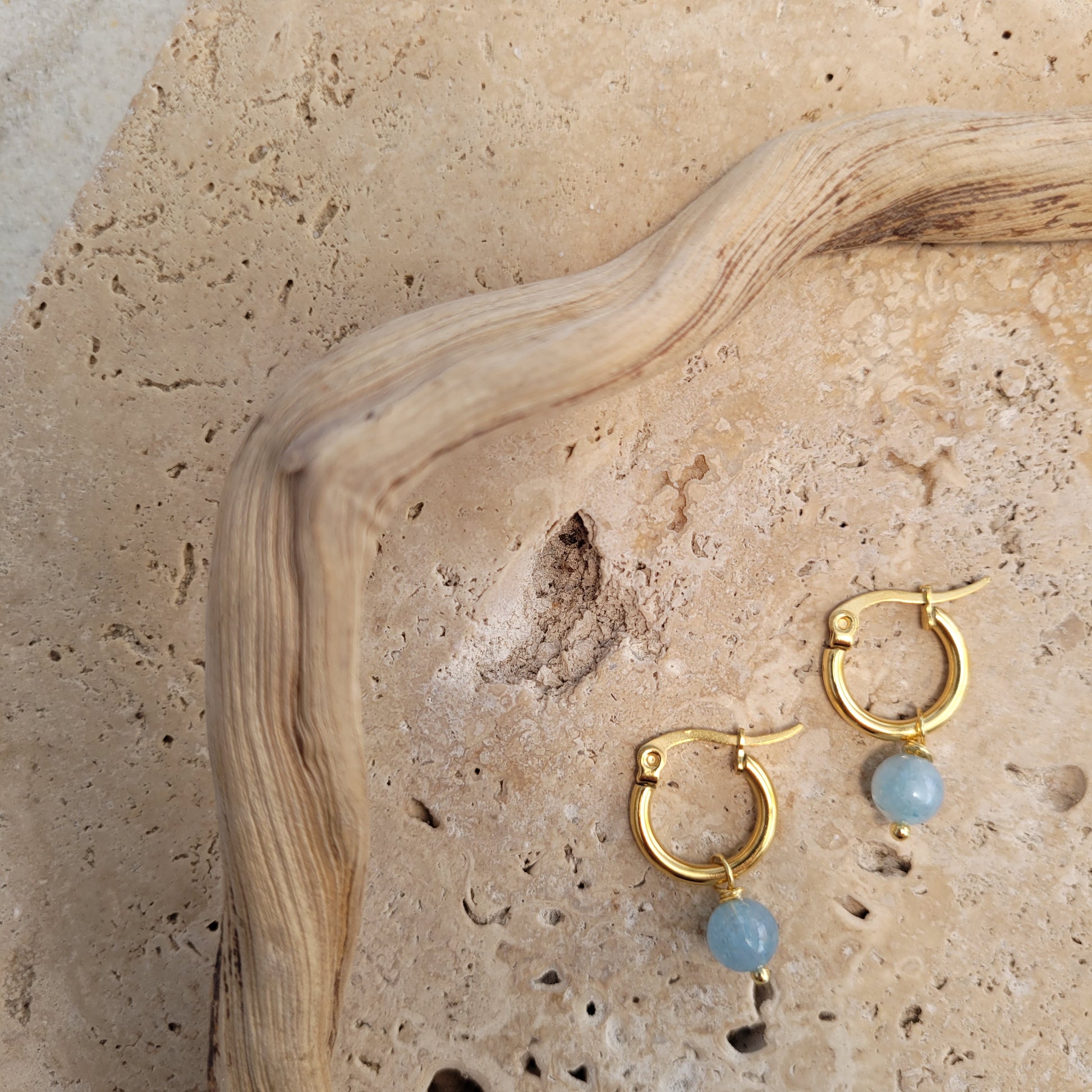 304 Stainless Steel Hoop Earrings, Hypoallergenic, Real 18K Gold Plated, with Aquamaine Stone . Show off your unique style with these beautiful earrings. They're built to last with hypoallergenic stainless steel and real, 18K Gold Plating.
