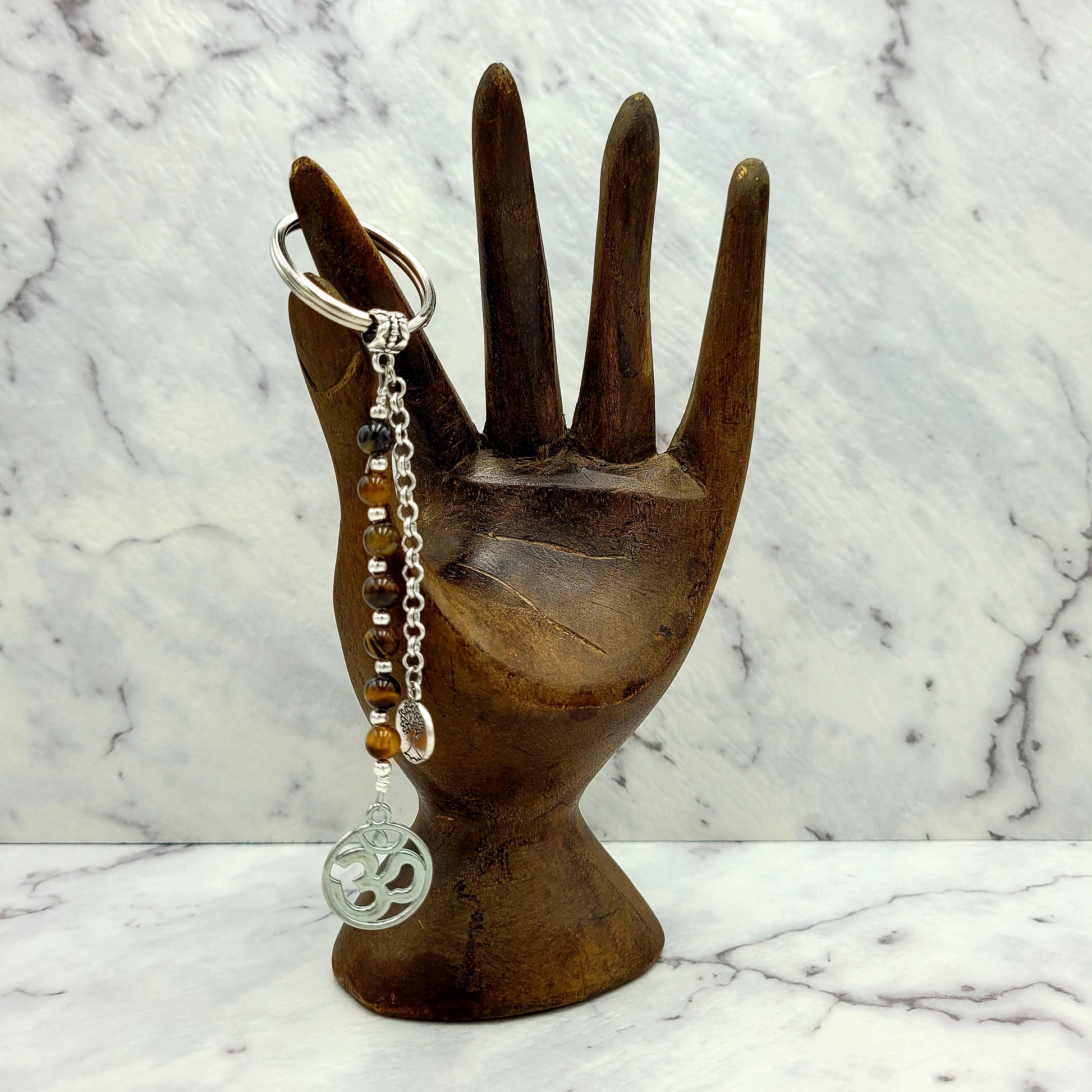 This Tiger Eye Om Crystal Charm Keyring is more than an accessory, it is an essential tool for unlocking your deepest desires and attracting positive energy. Crafted with the protective powers of Tiger Eye, this beautiful charm evokes a sense of majesty, guarding your self-confidence, integrity and personal power.